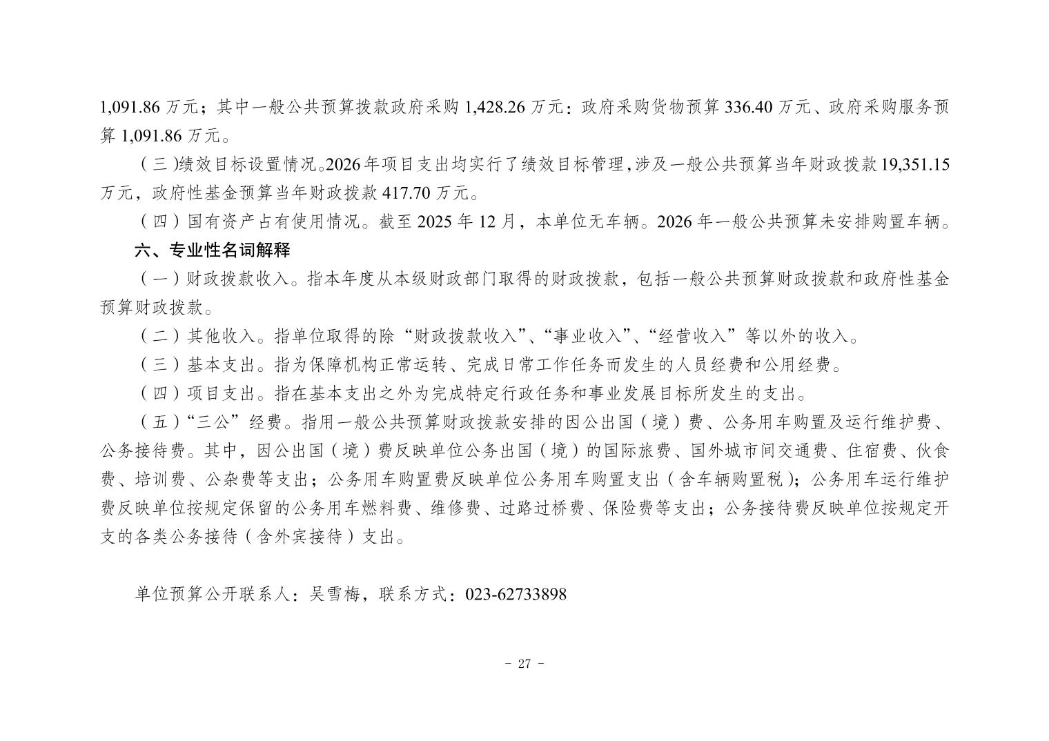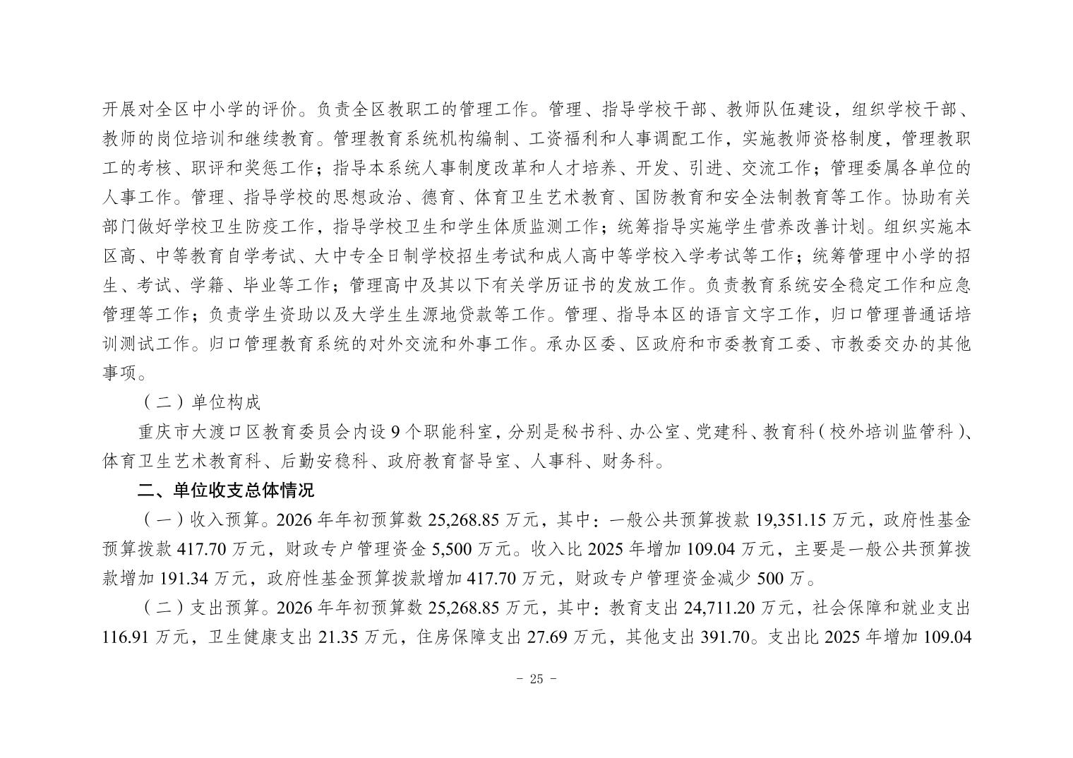 142001重庆市大渡口区教育委员会(本级)2026年单位预算情况说明