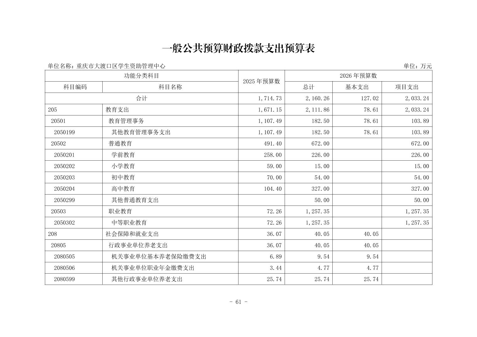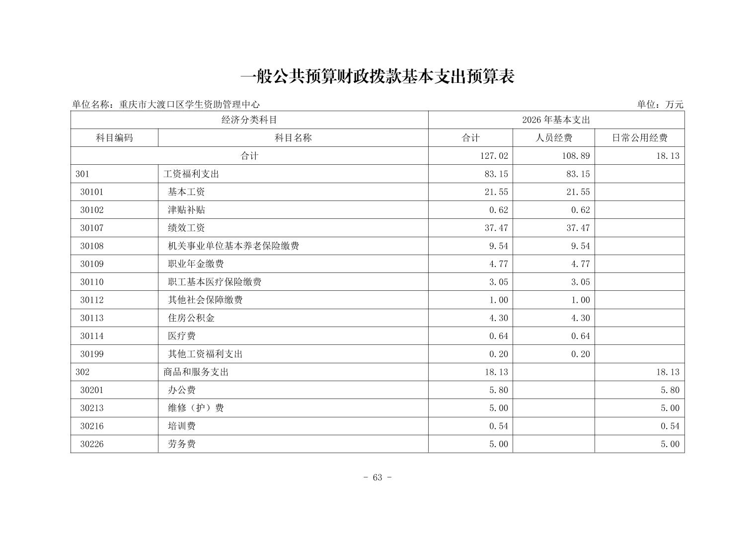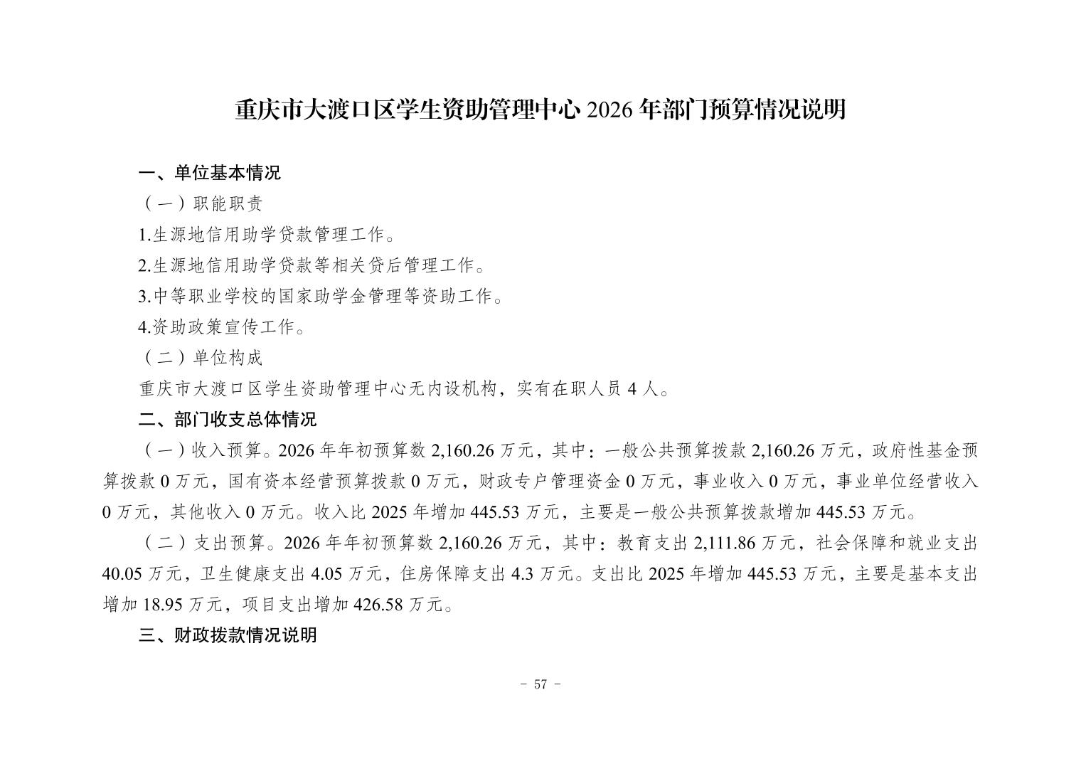 142003重庆市大渡口区学生资助管理中心2026年部门预算情况说明
