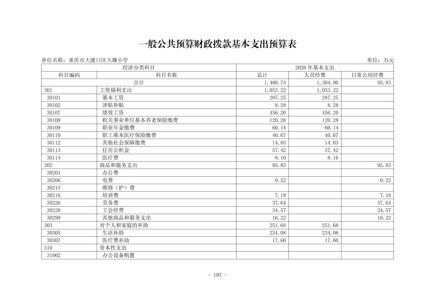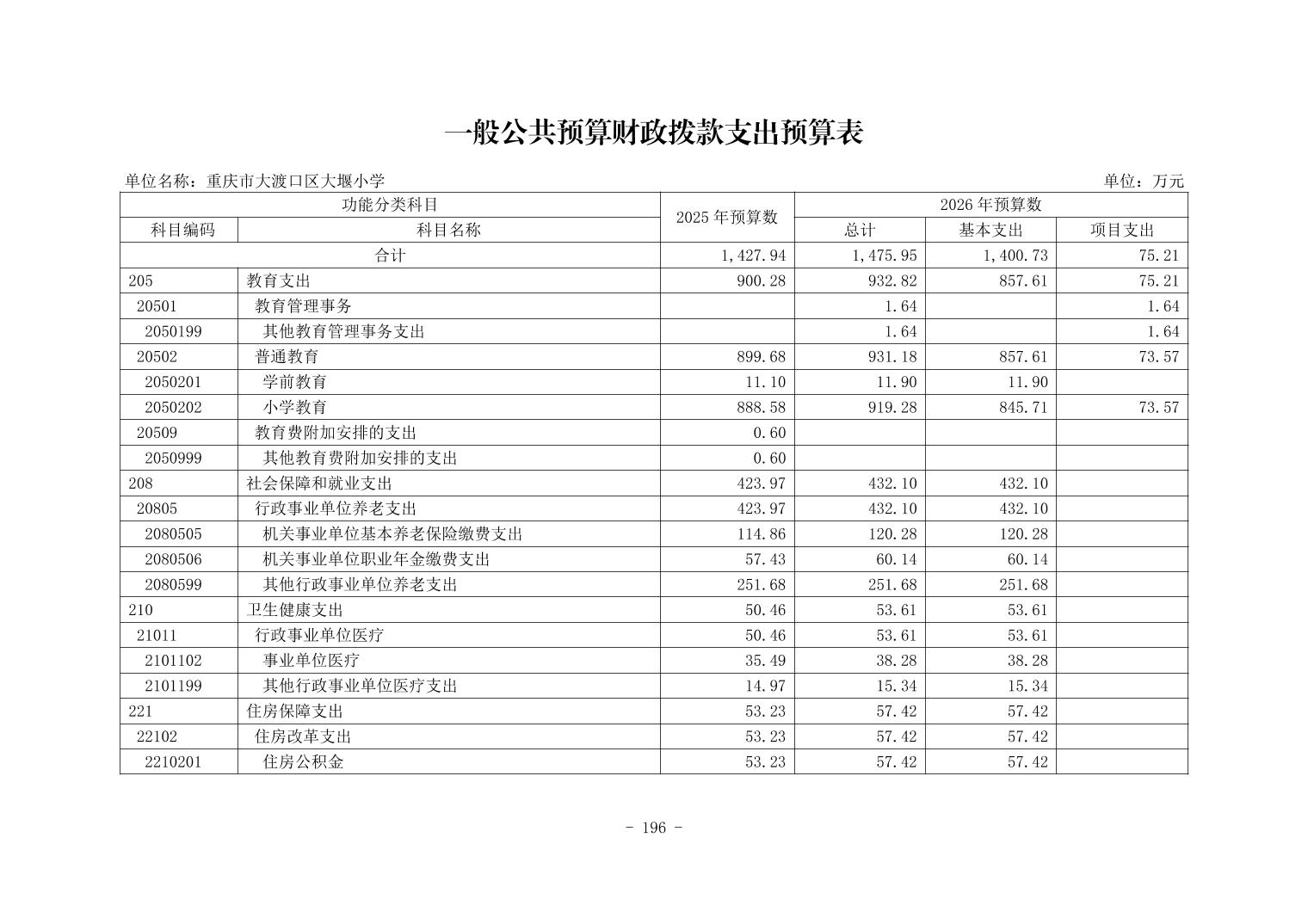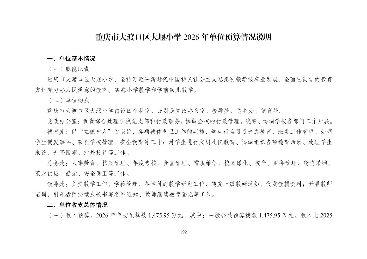 142012重庆市大渡口区大堰小学2026年单位预算情况说明
