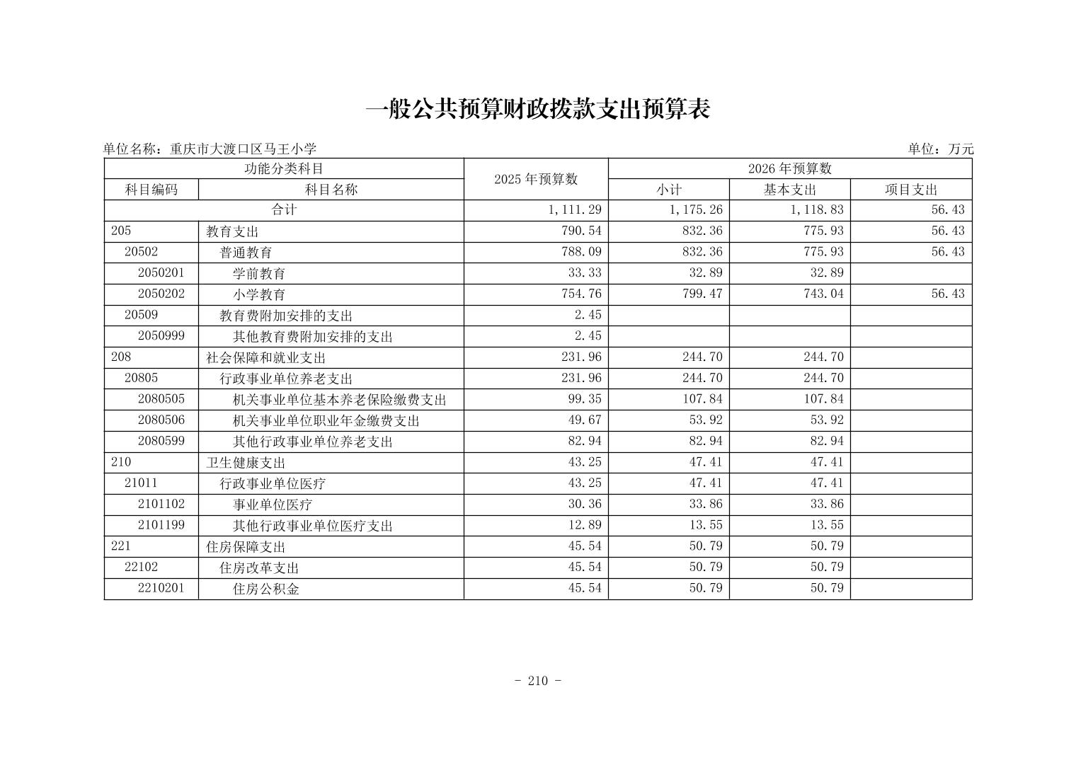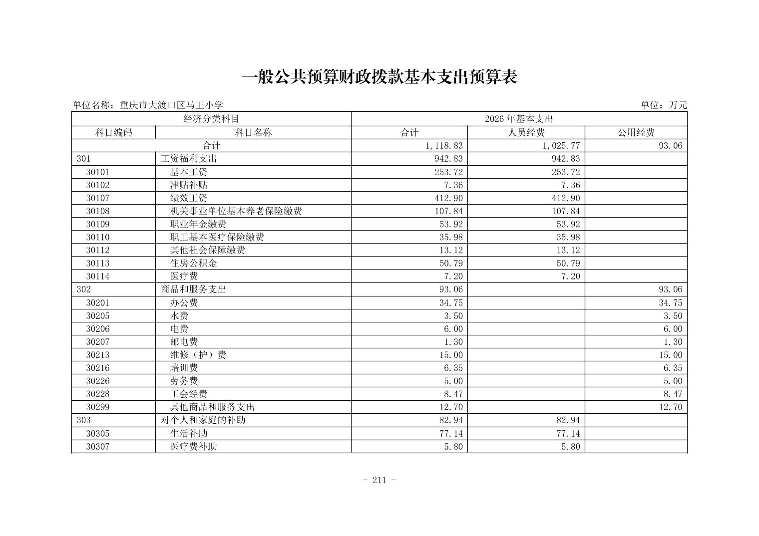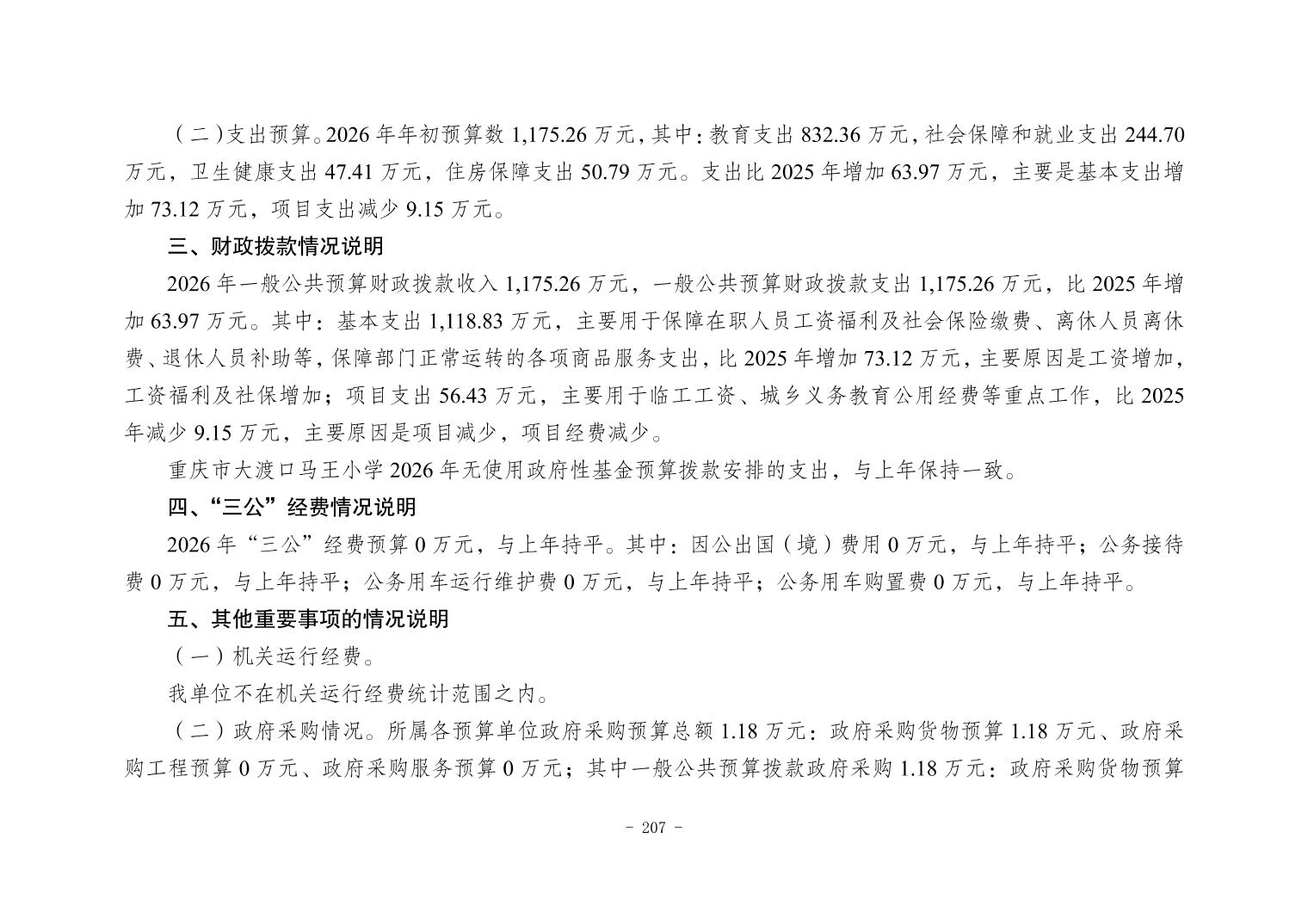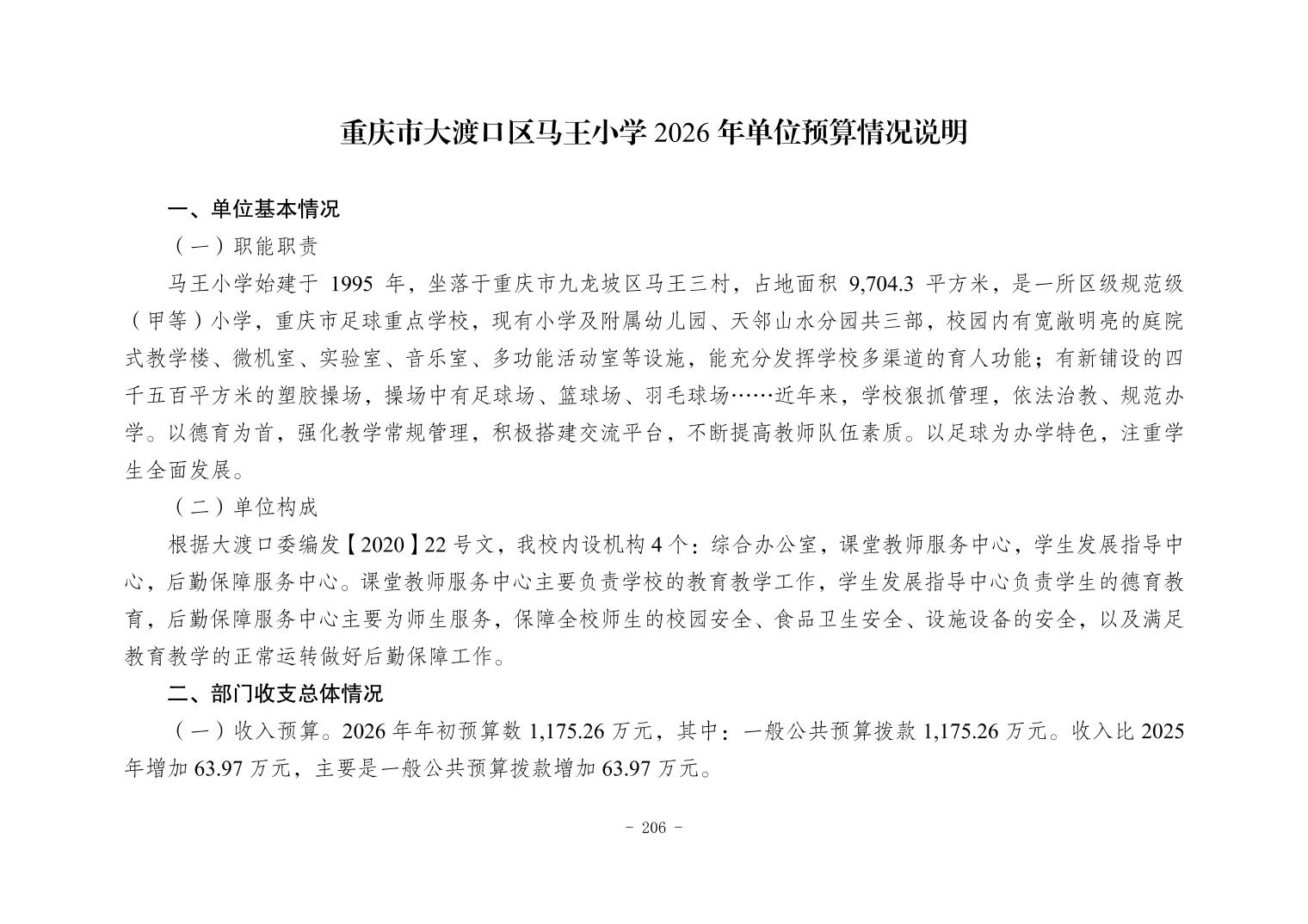 142014重庆市大渡口区马王小学2026年单位预算情况说明