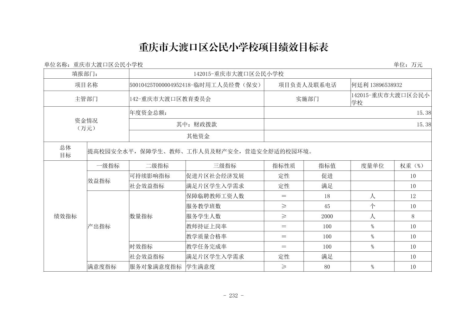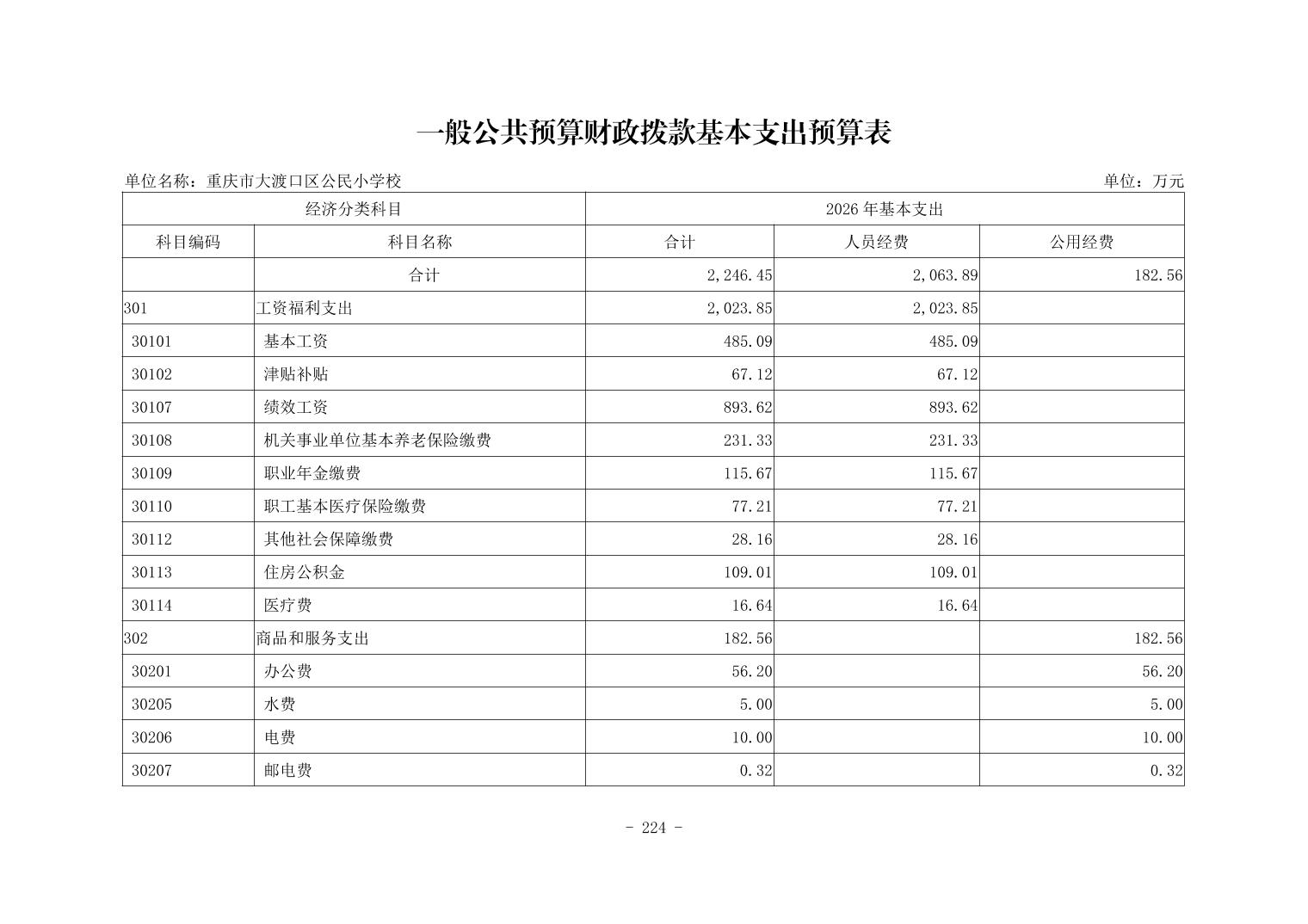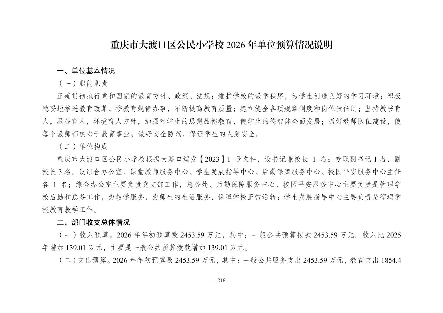 142015重庆市大渡口区公民小学校2026年单位预算情况说明