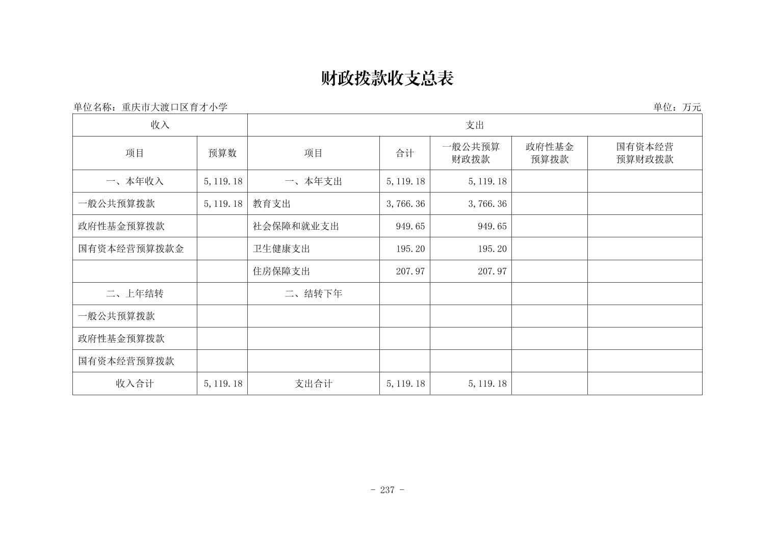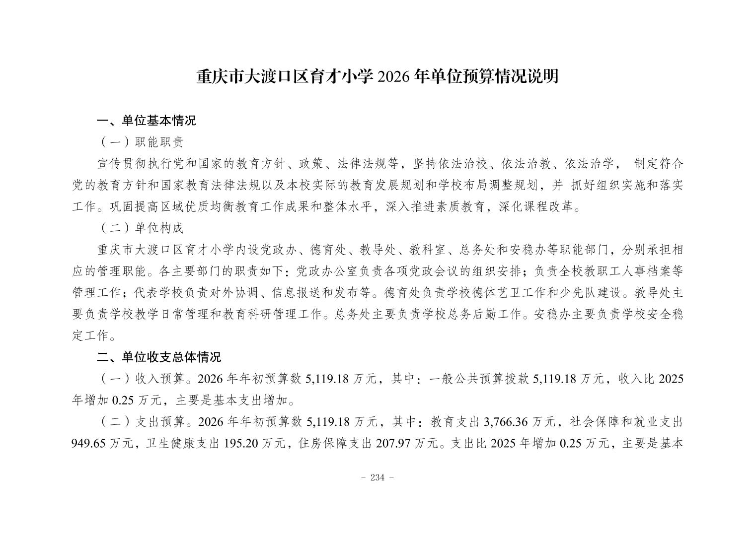 142016重庆市大渡口区育才小学2026年单位预算情况说明