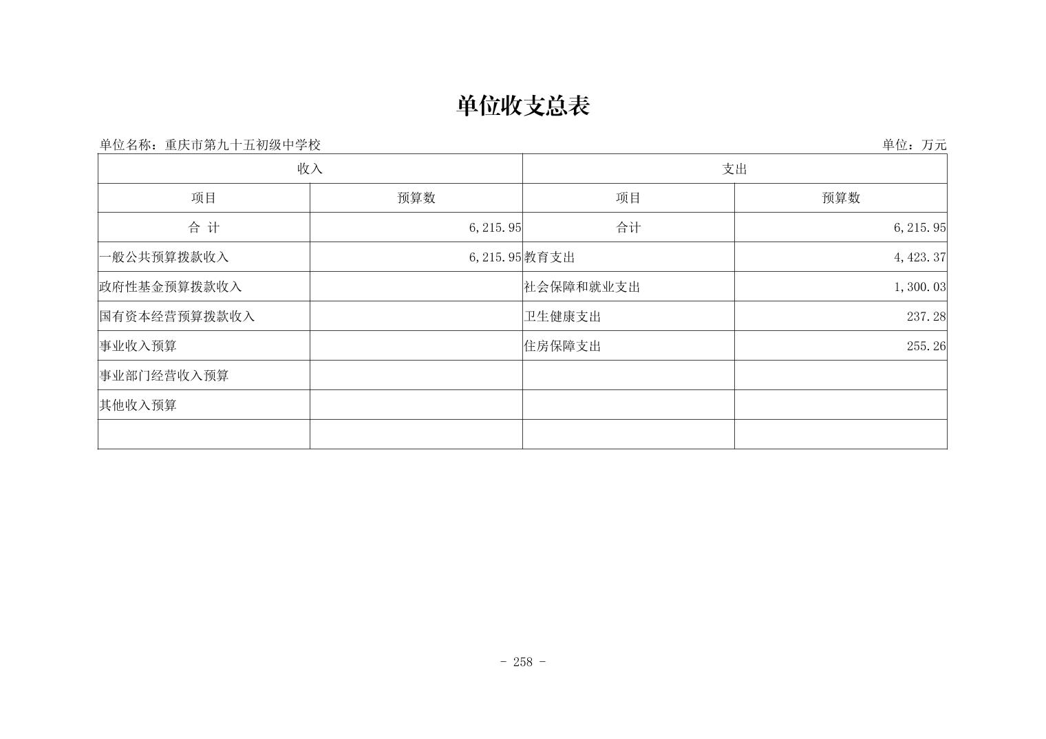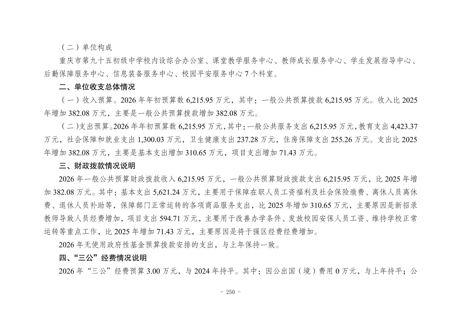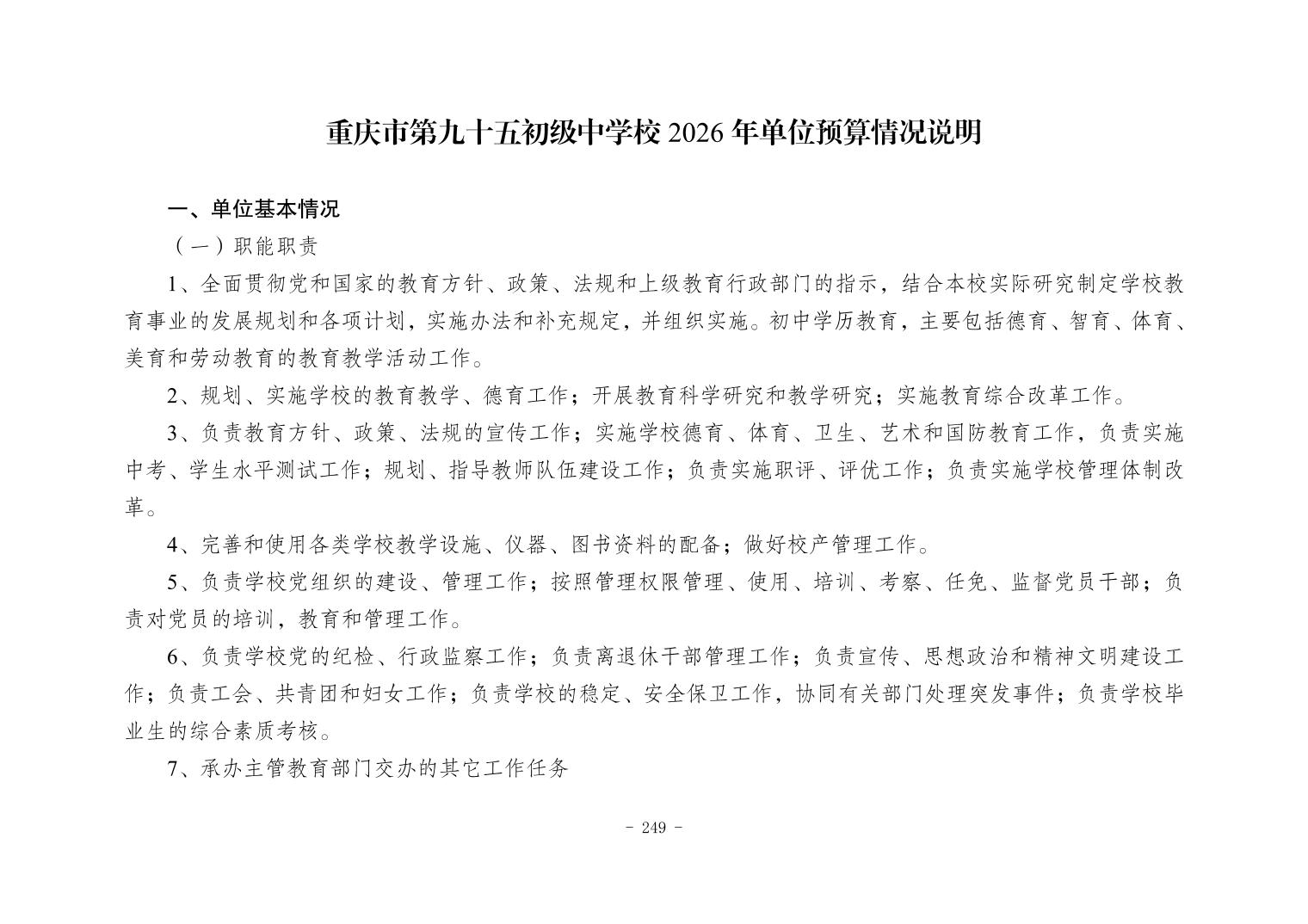142020重庆市第九十五初级中学校2026年单位预算情况说明
