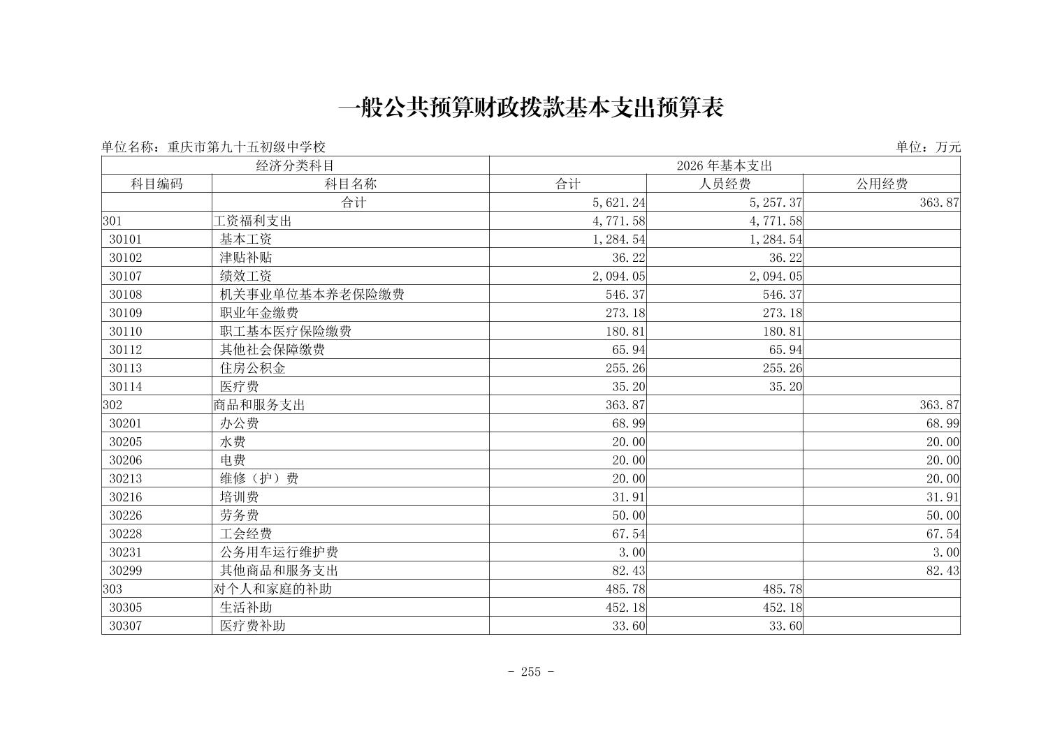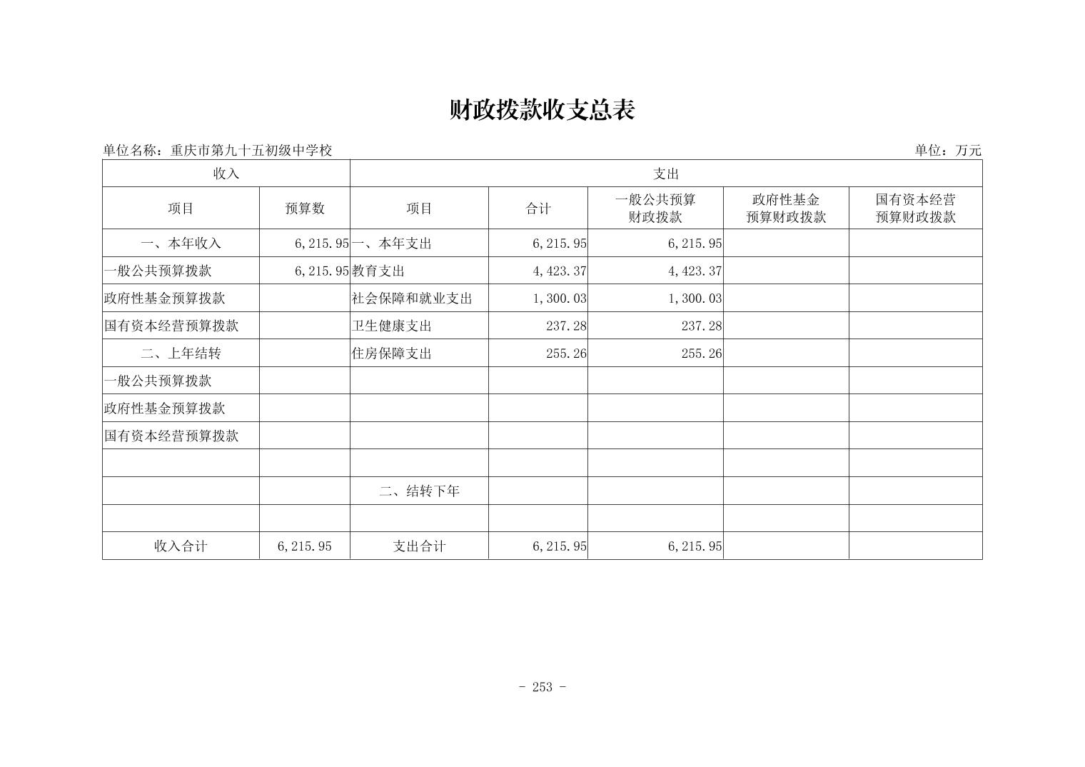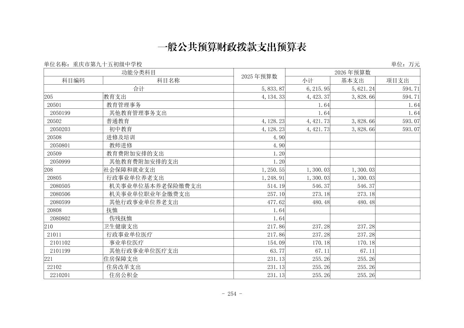 142020重庆市第九十五初级中学校2026年单位预算情况说明