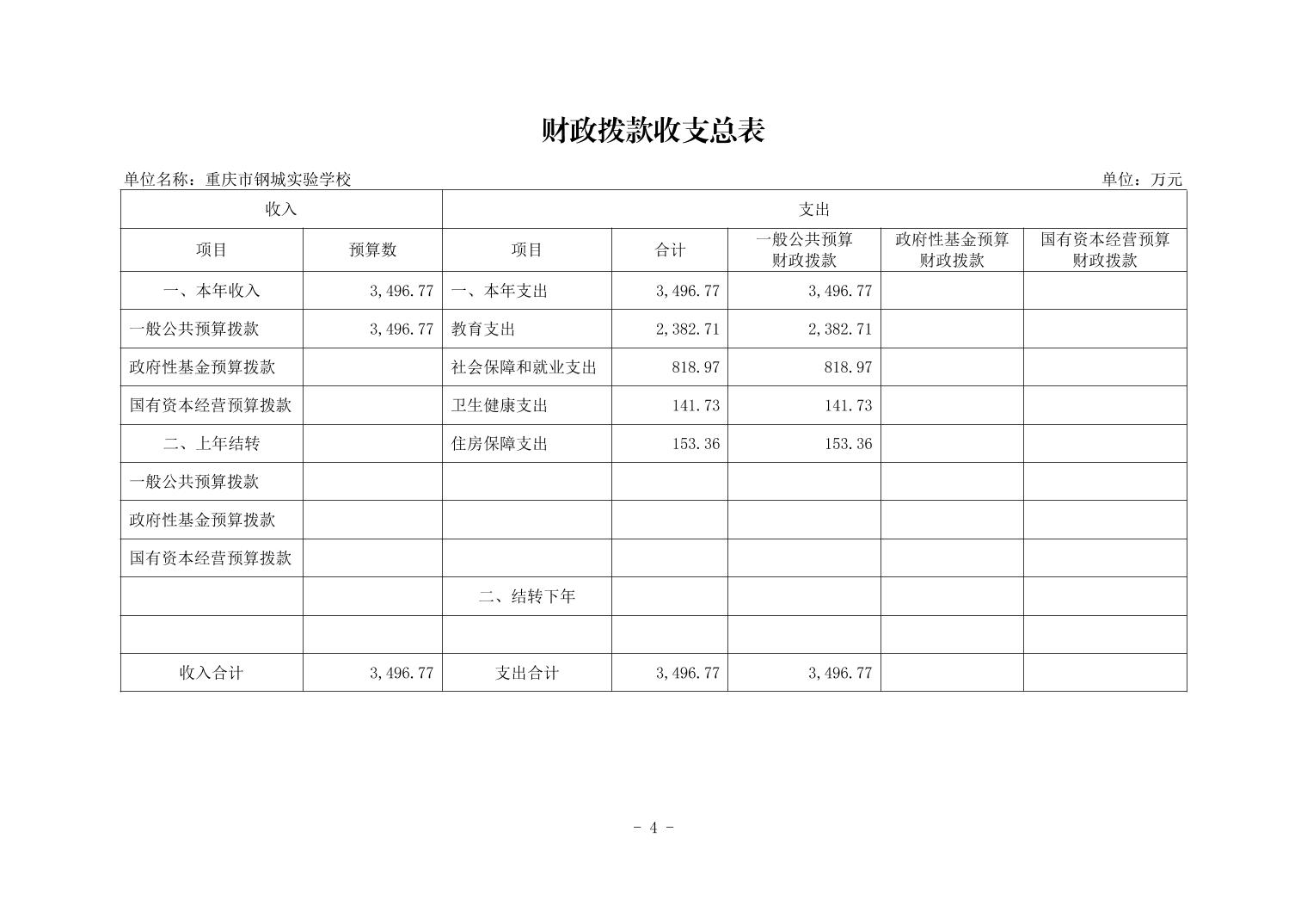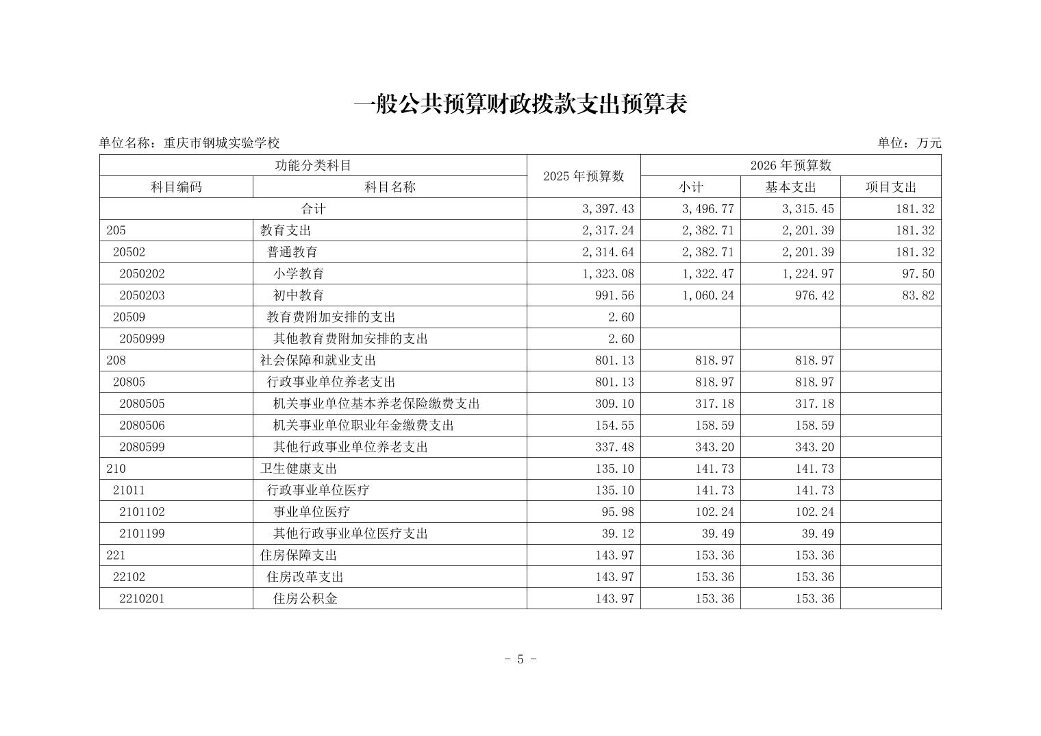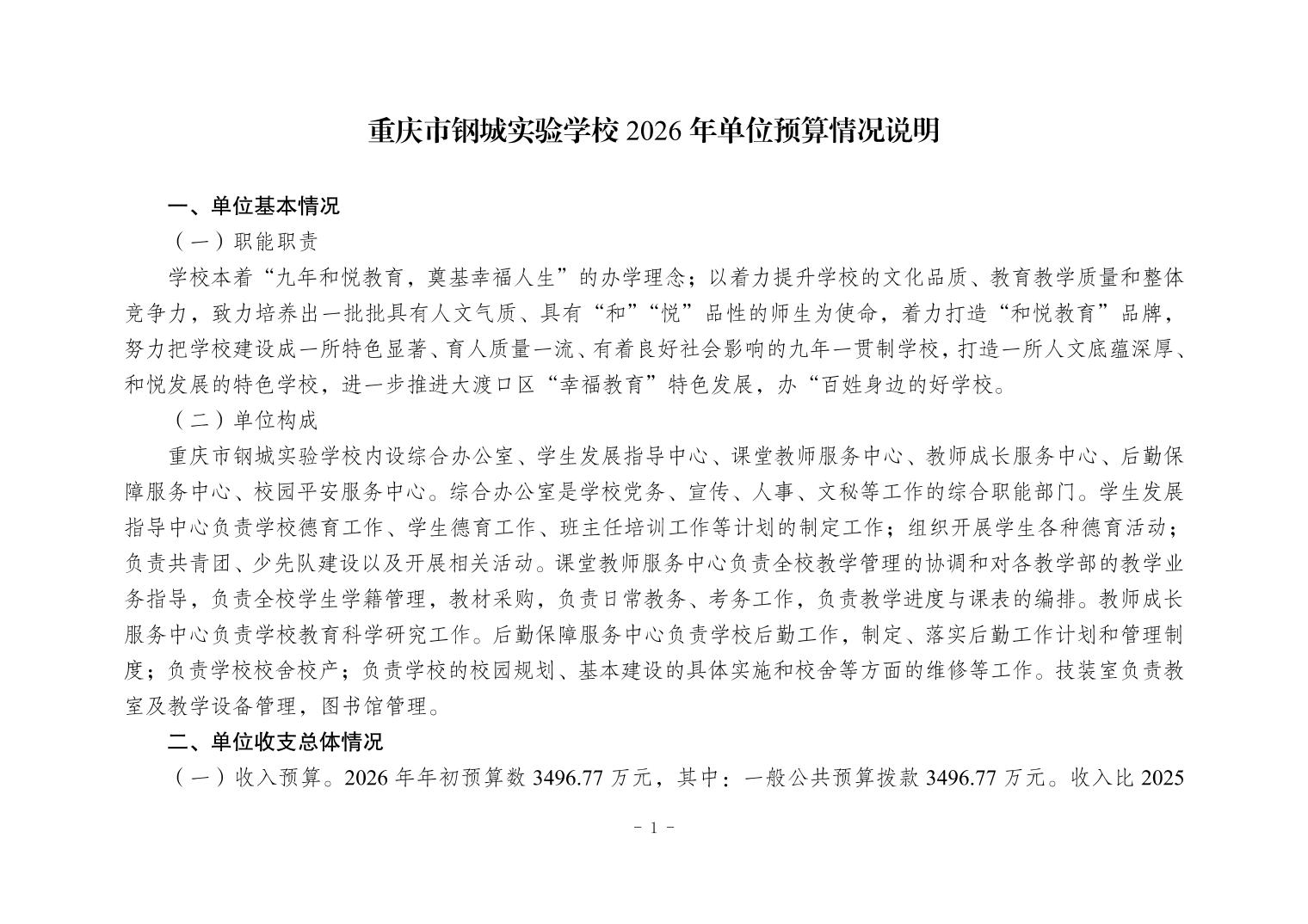 142026重庆市钢城实验学校2026年单位预算情况说明