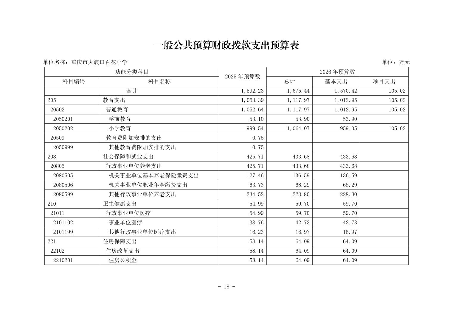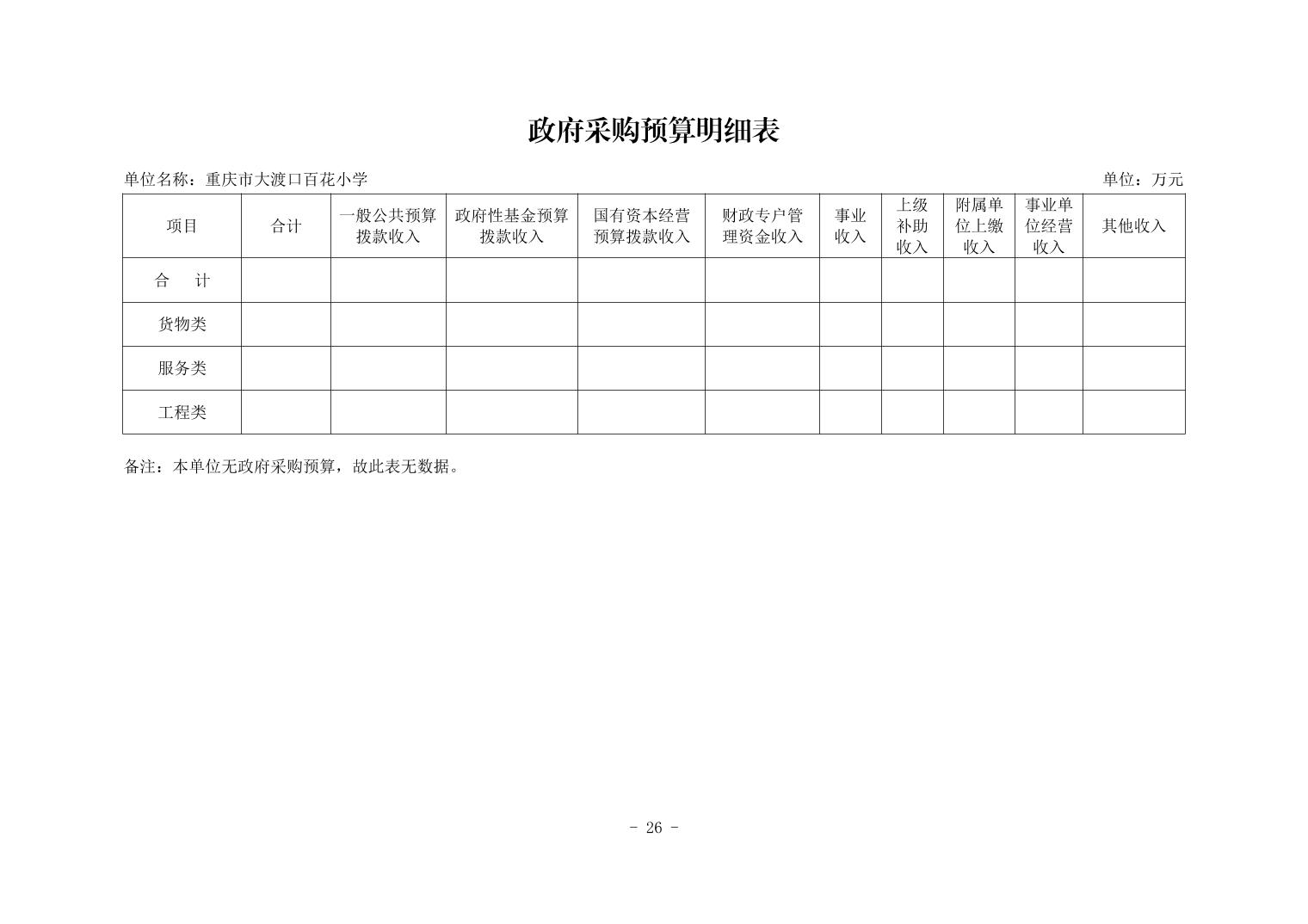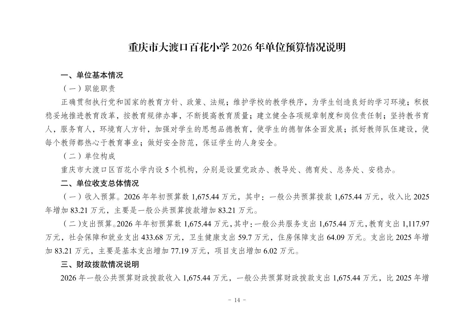 142027重庆市大渡口区百花小学2026年单位预算情况说明