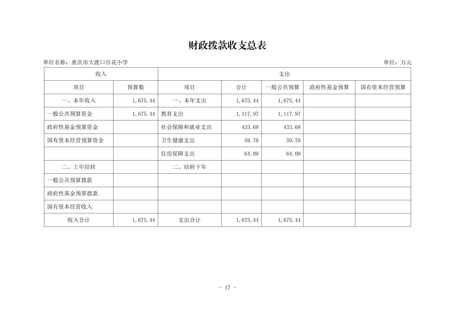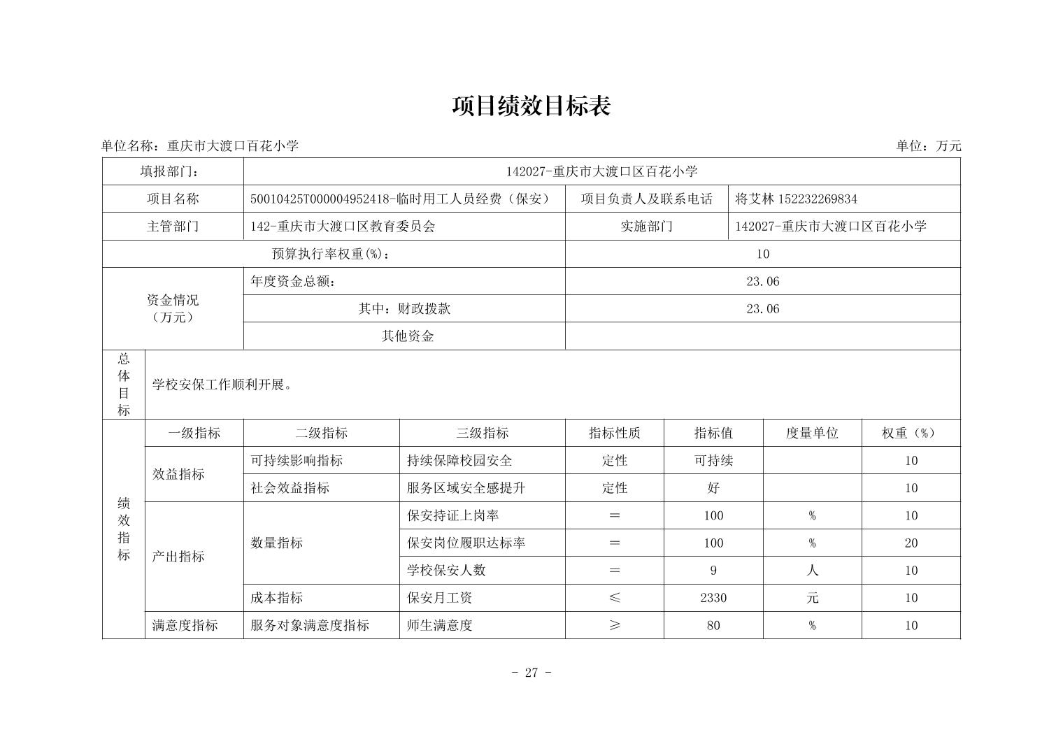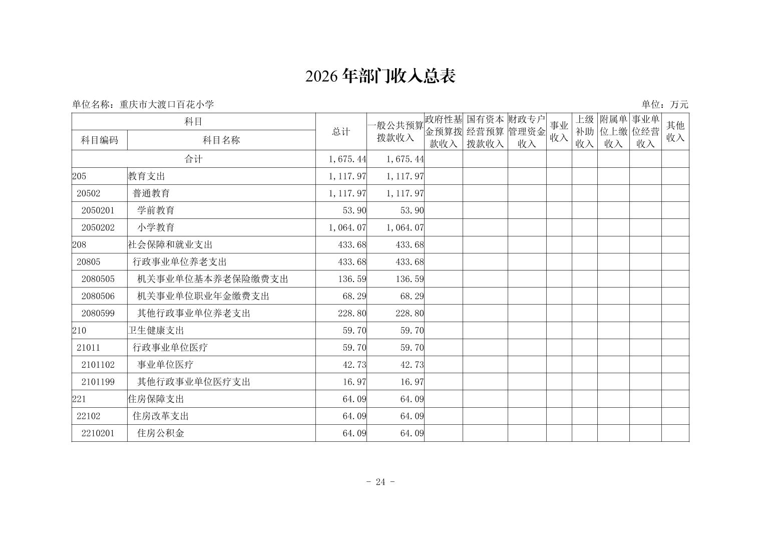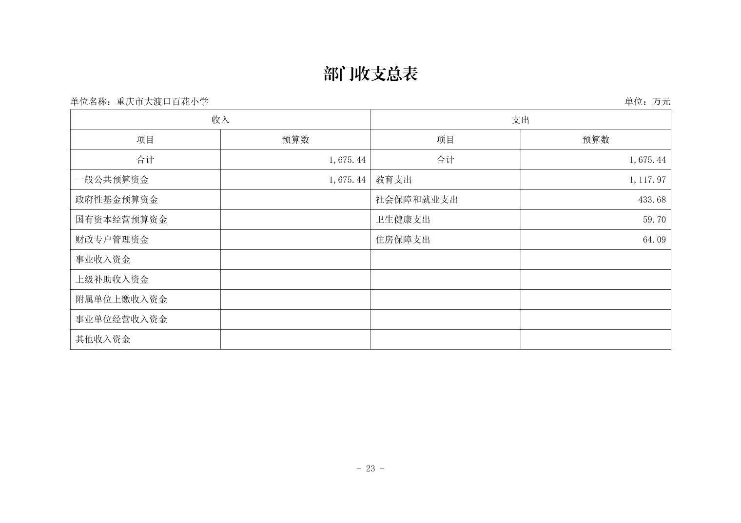 142027重庆市大渡口区百花小学2026年单位预算情况说明