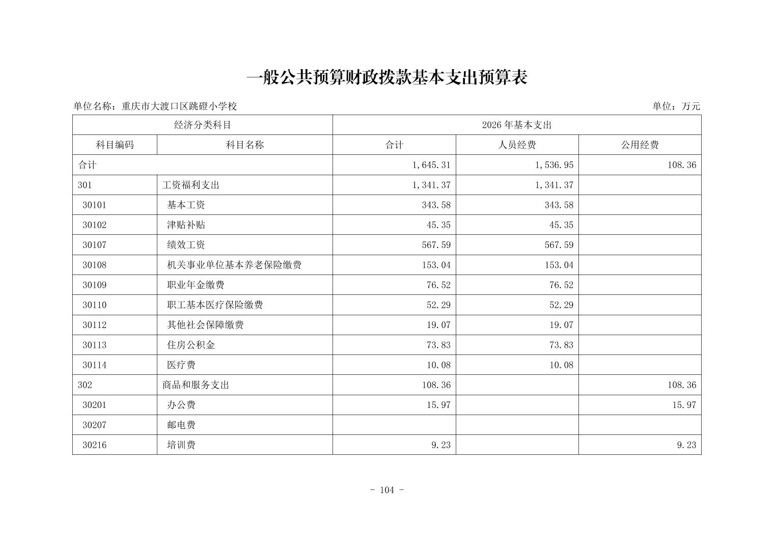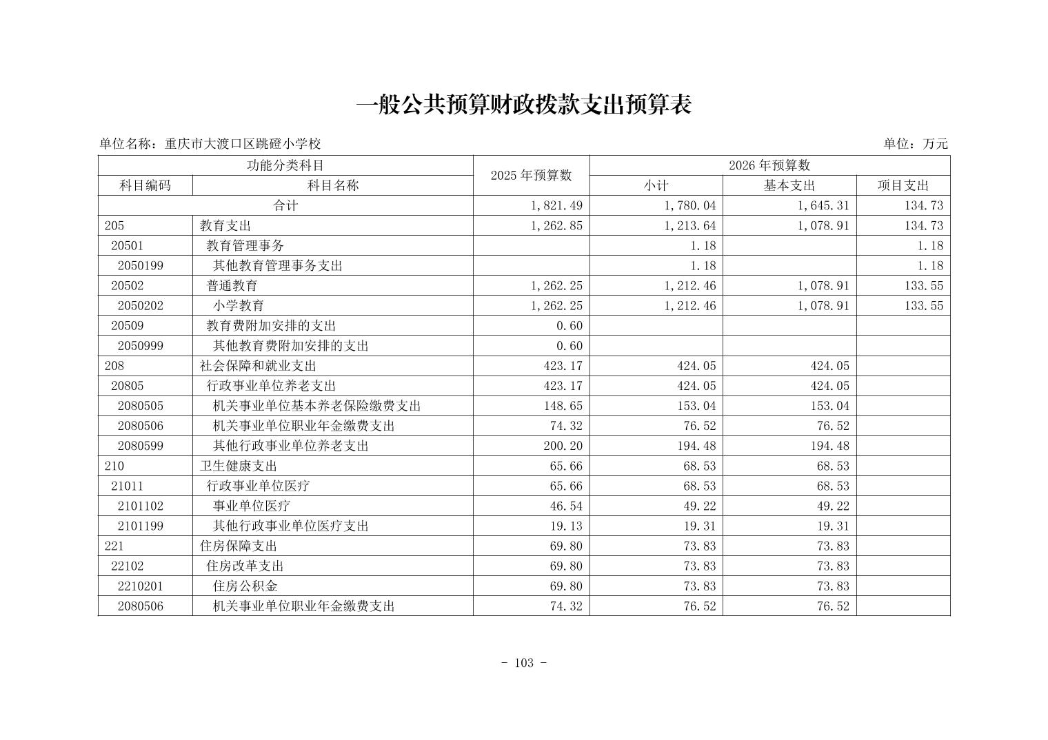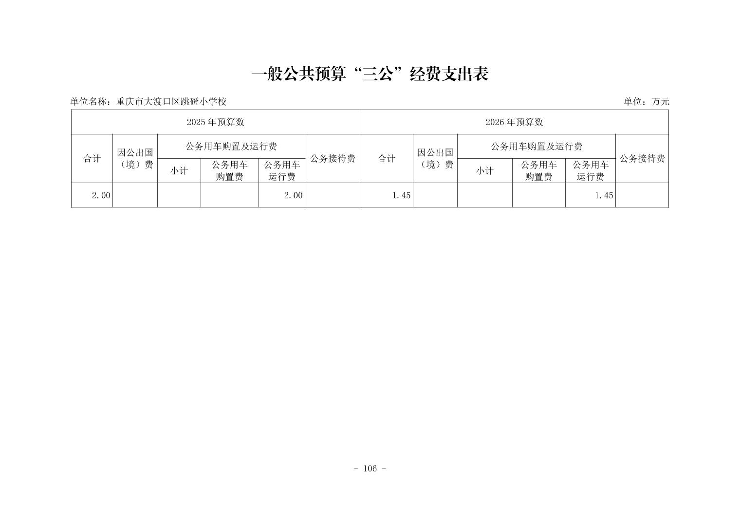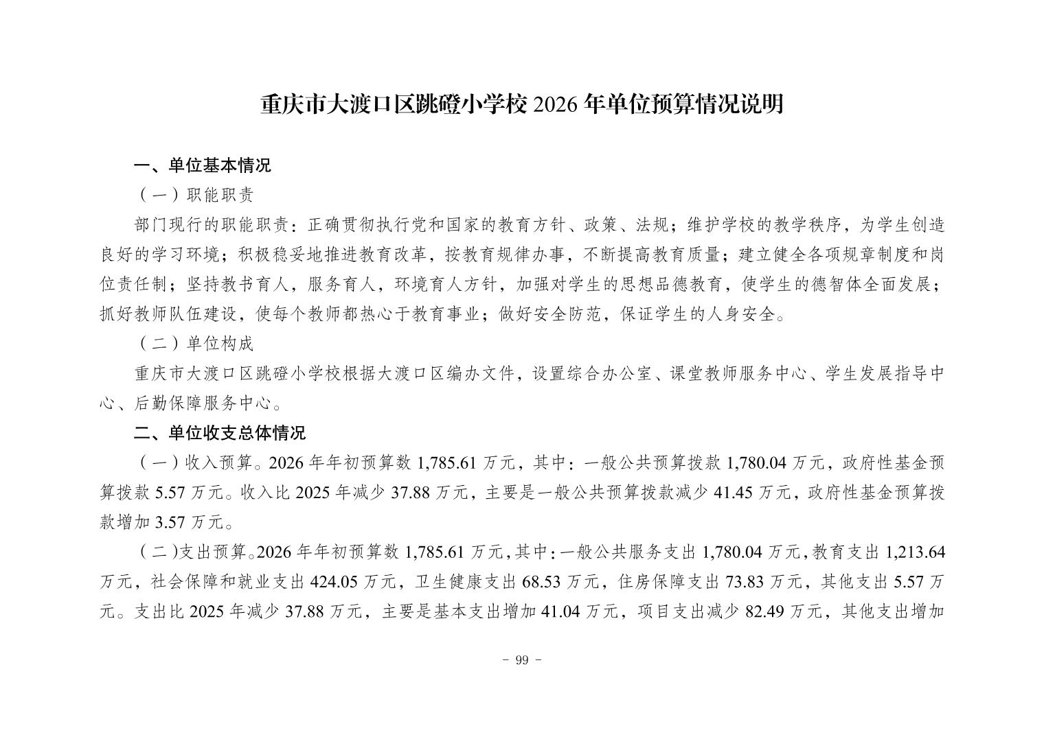 142036重庆市大渡口区跳磴小学校2026年单位预算情况说明
