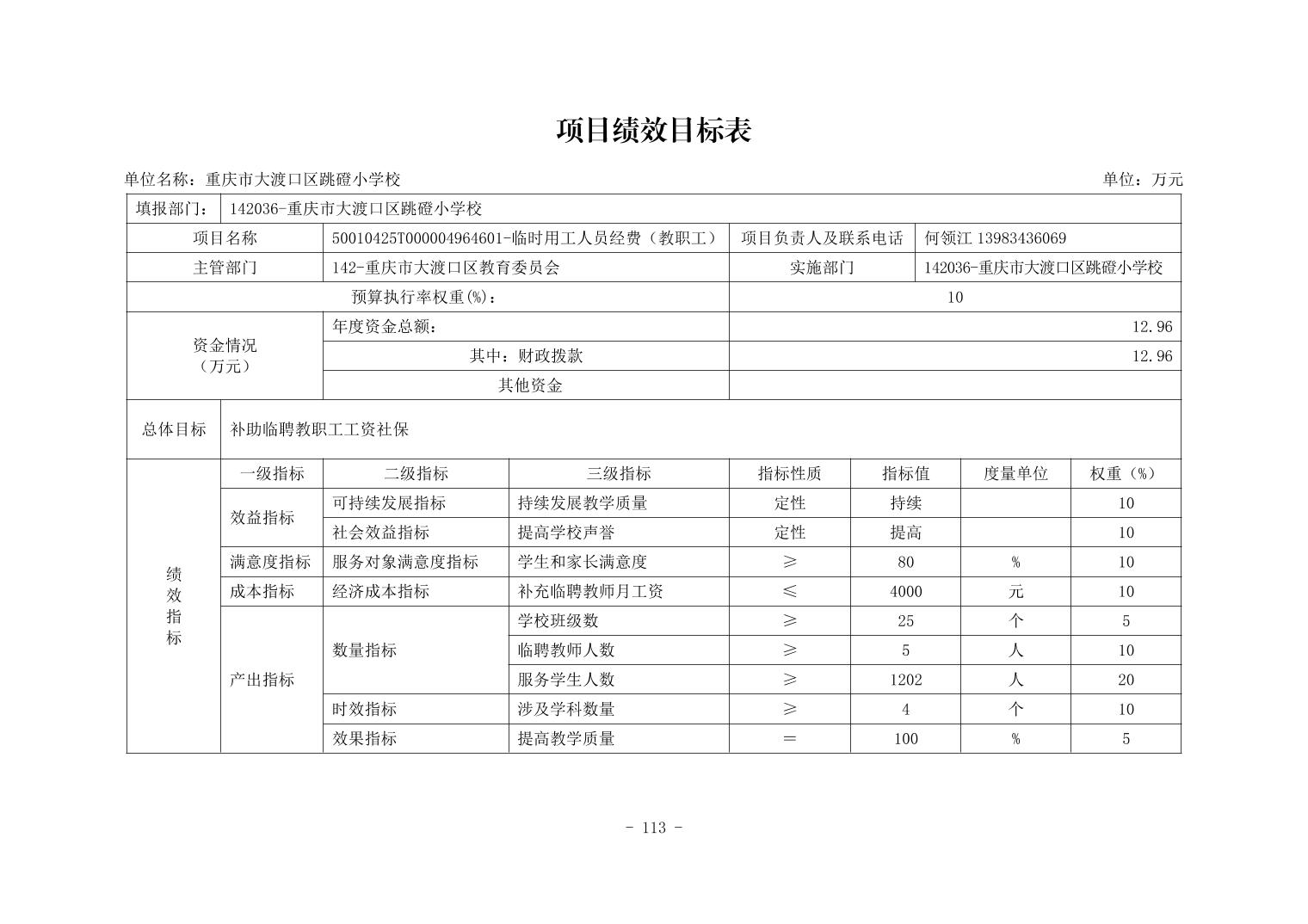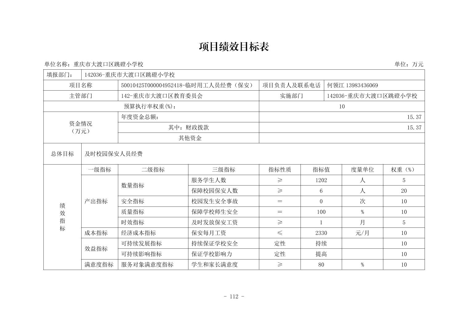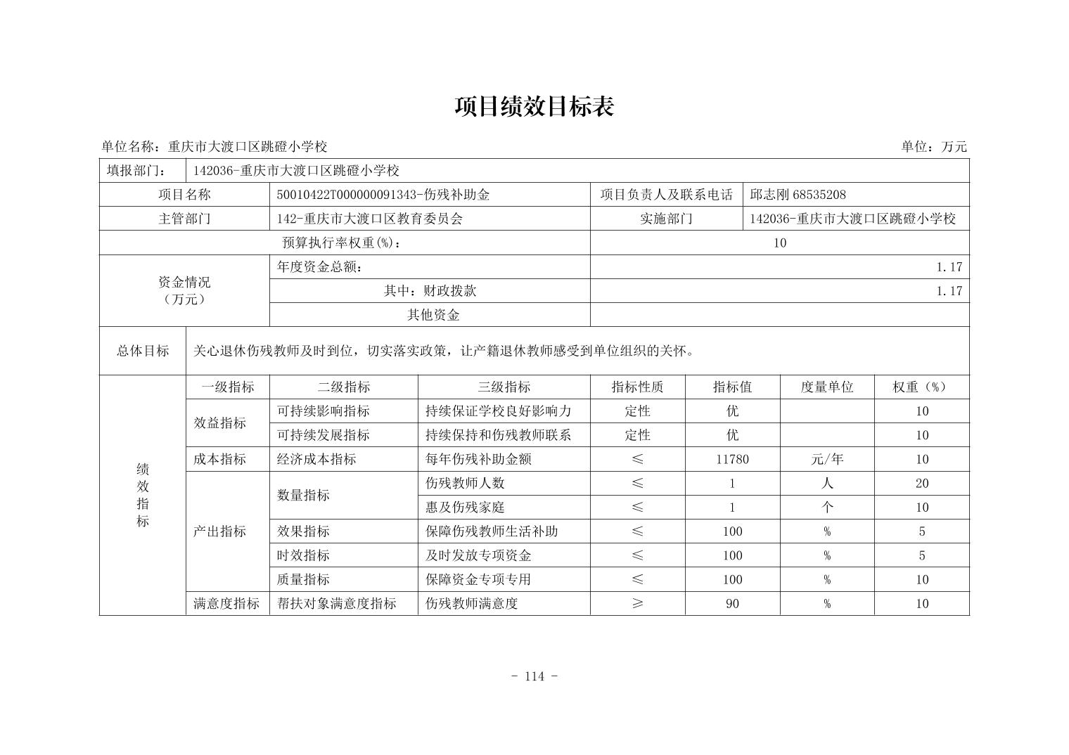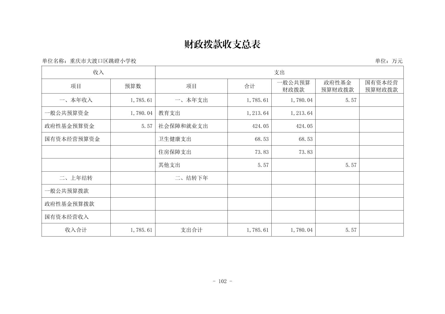 142036重庆市大渡口区跳磴小学校2026年单位预算情况说明