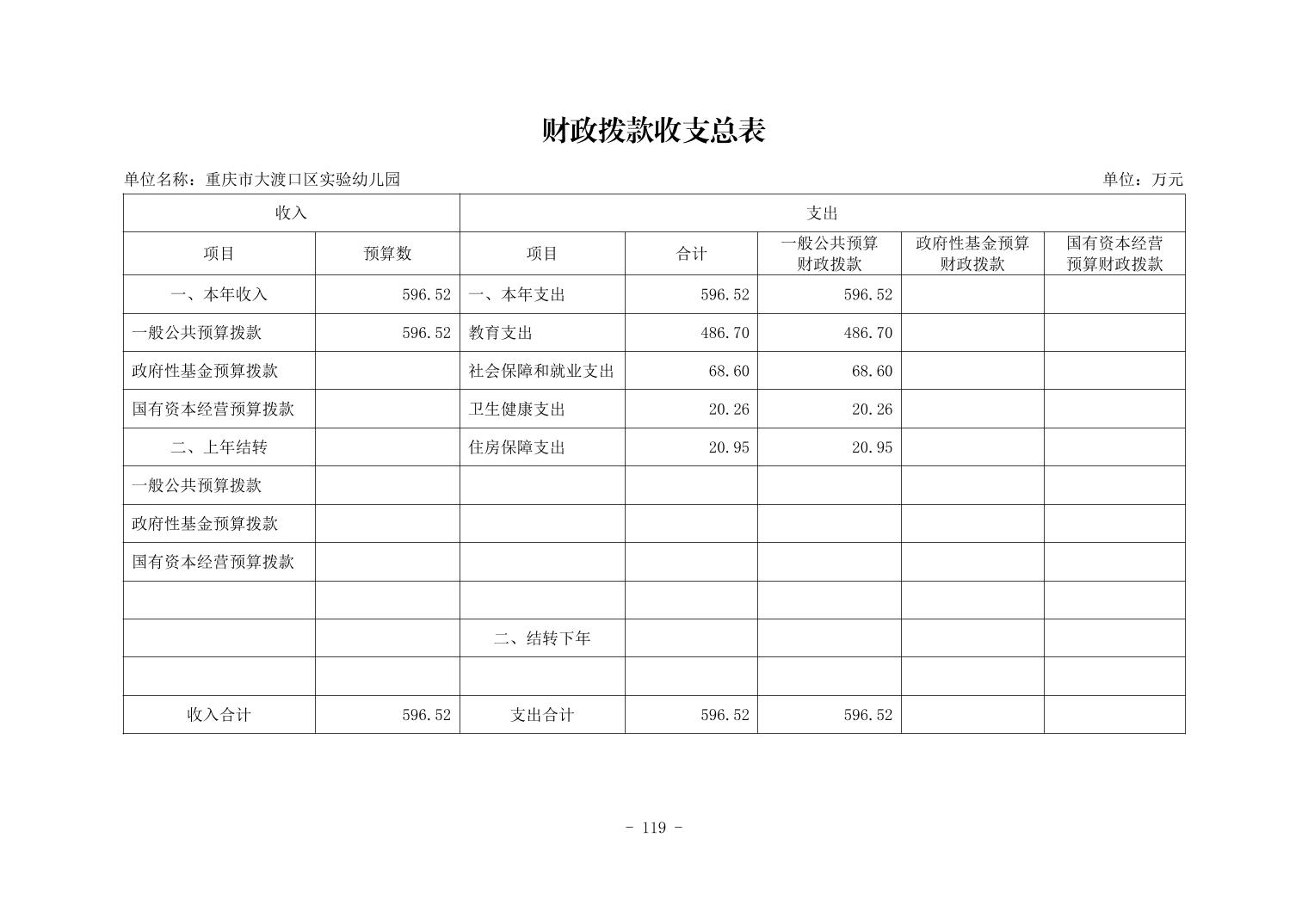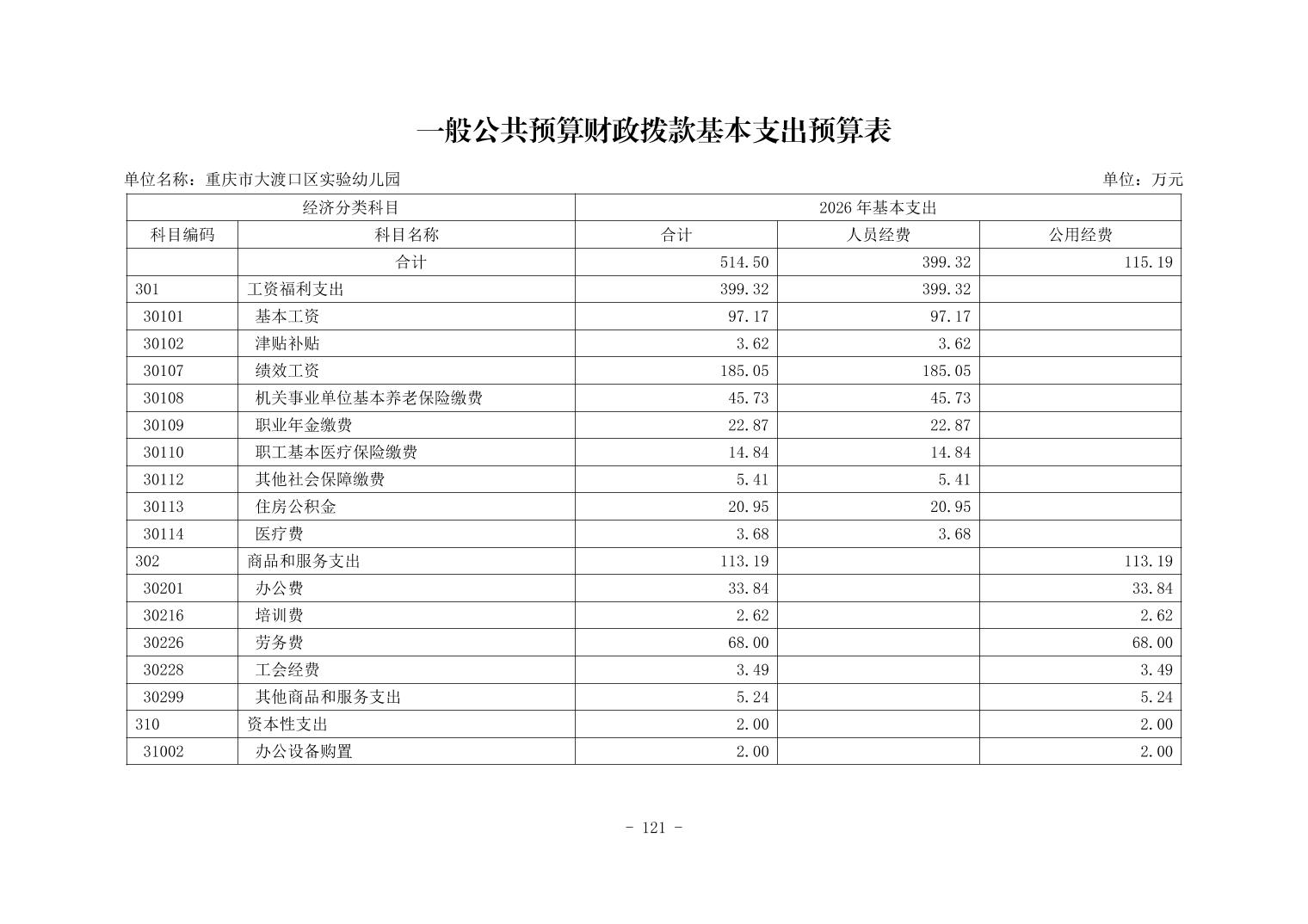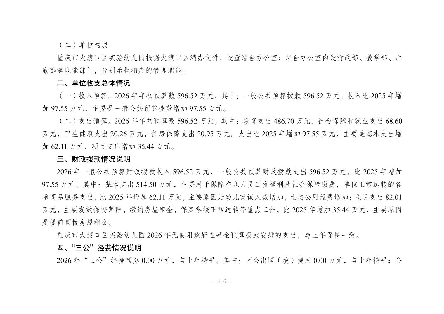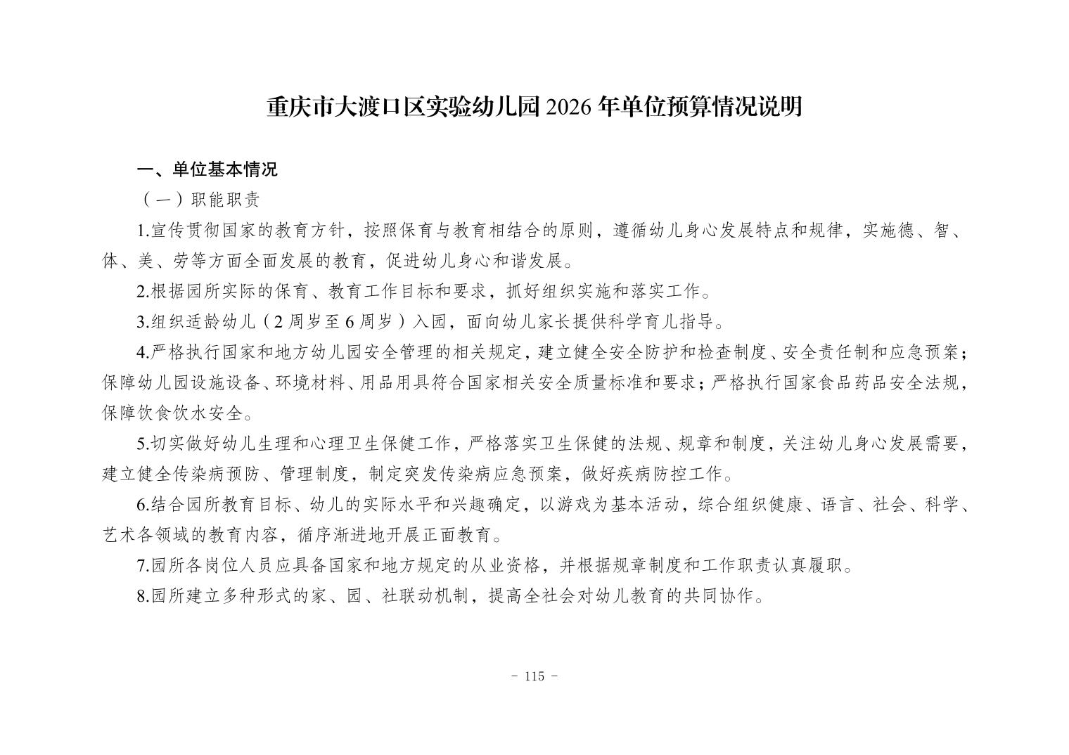 142037重庆市大渡口区实验幼儿园2026年单位预算情况说明