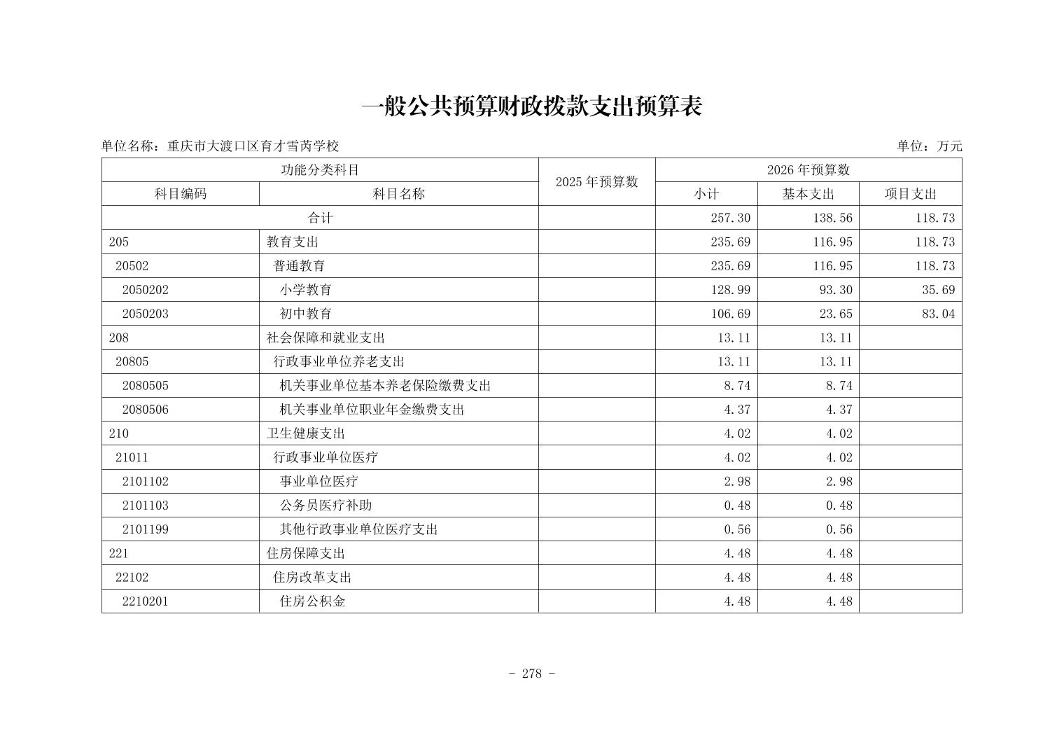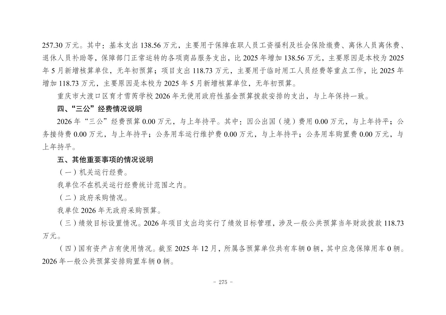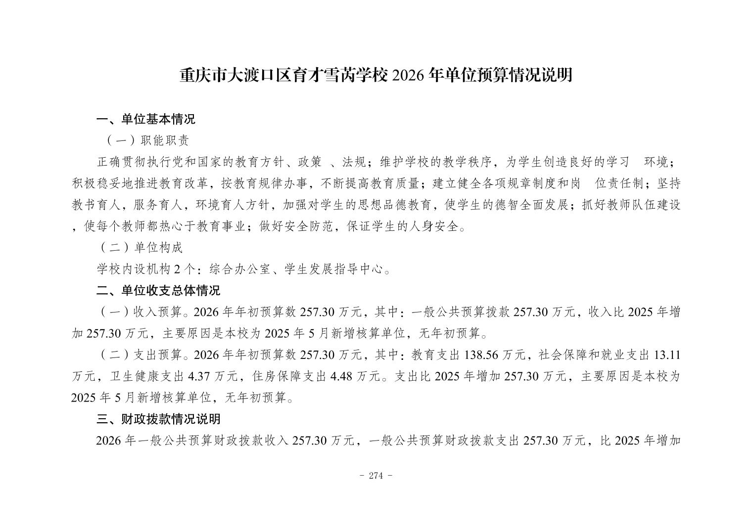 142048重庆市大渡口区育才雪芮学校2026年单位预算情况说明