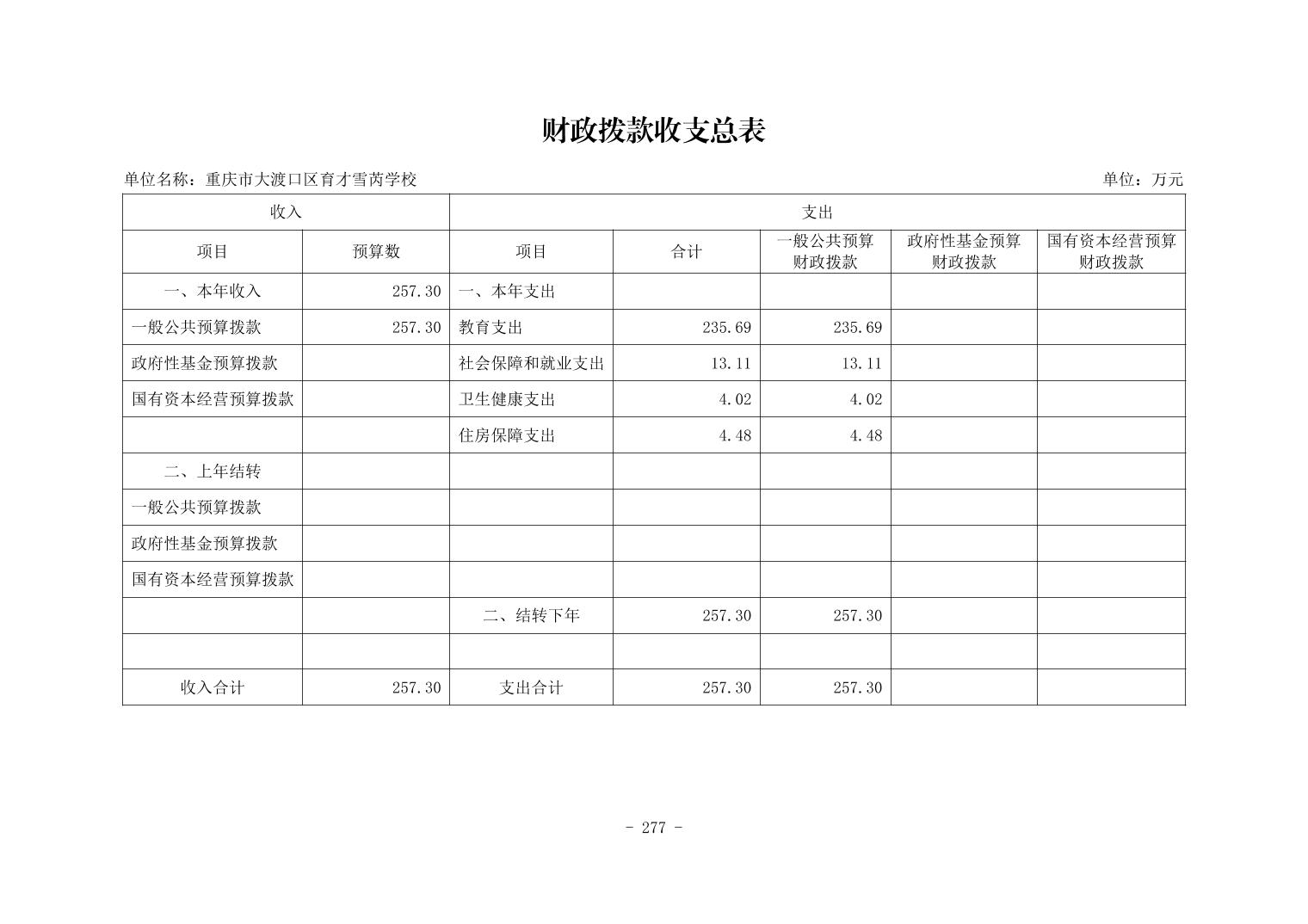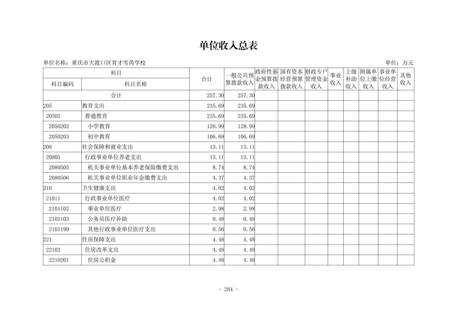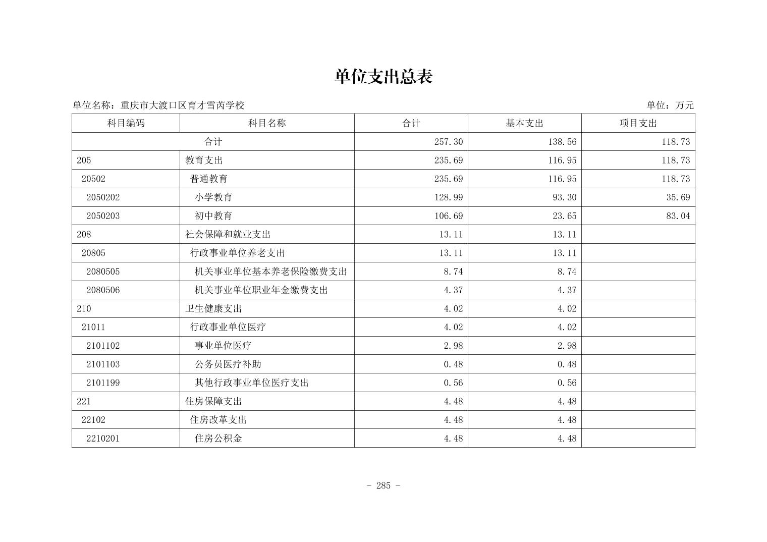 142048重庆市大渡口区育才雪芮学校2026年单位预算情况说明