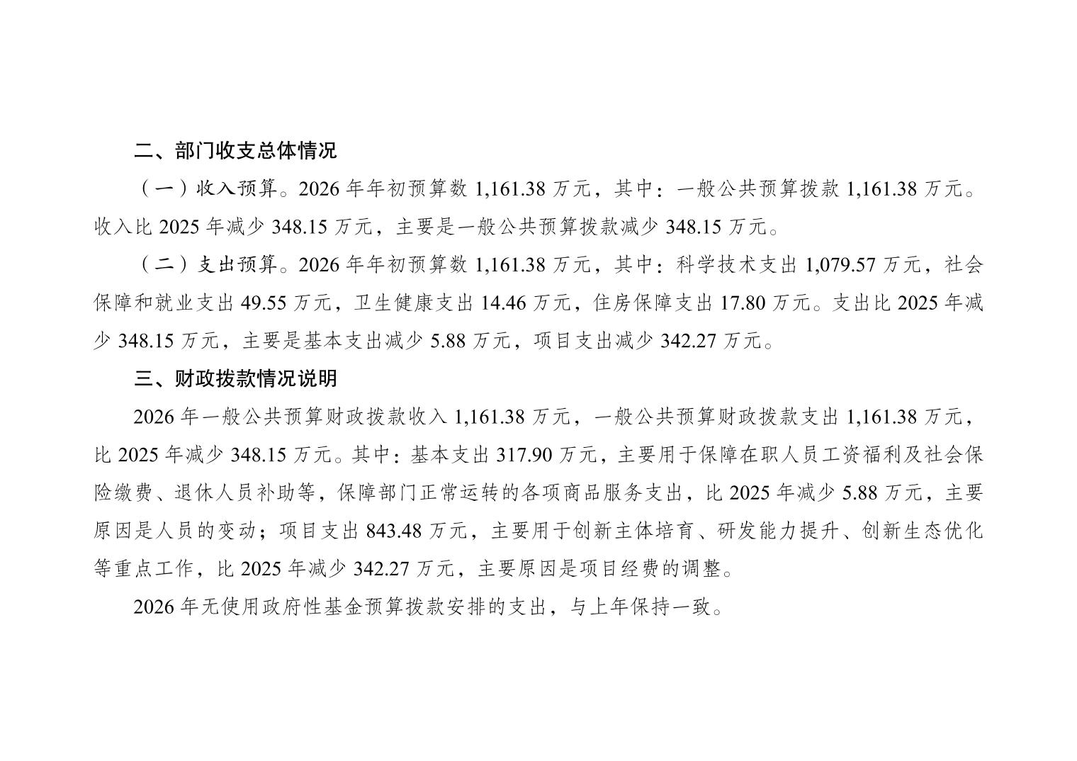 重庆市大渡口区科学技术局2026年部门预算情况说明