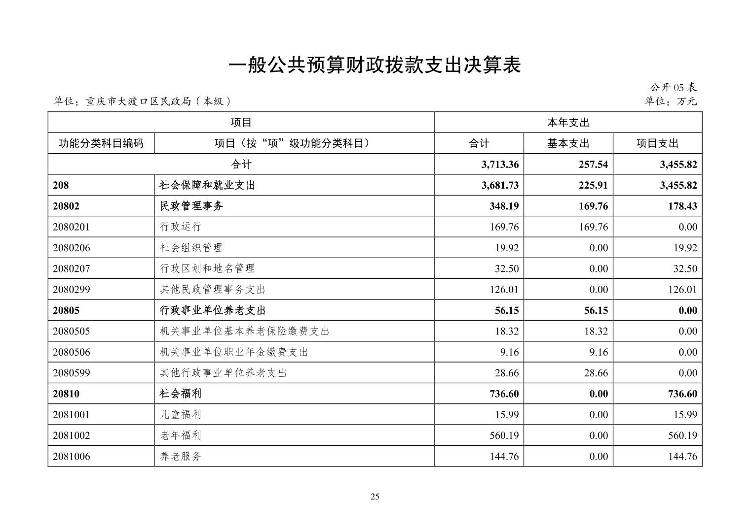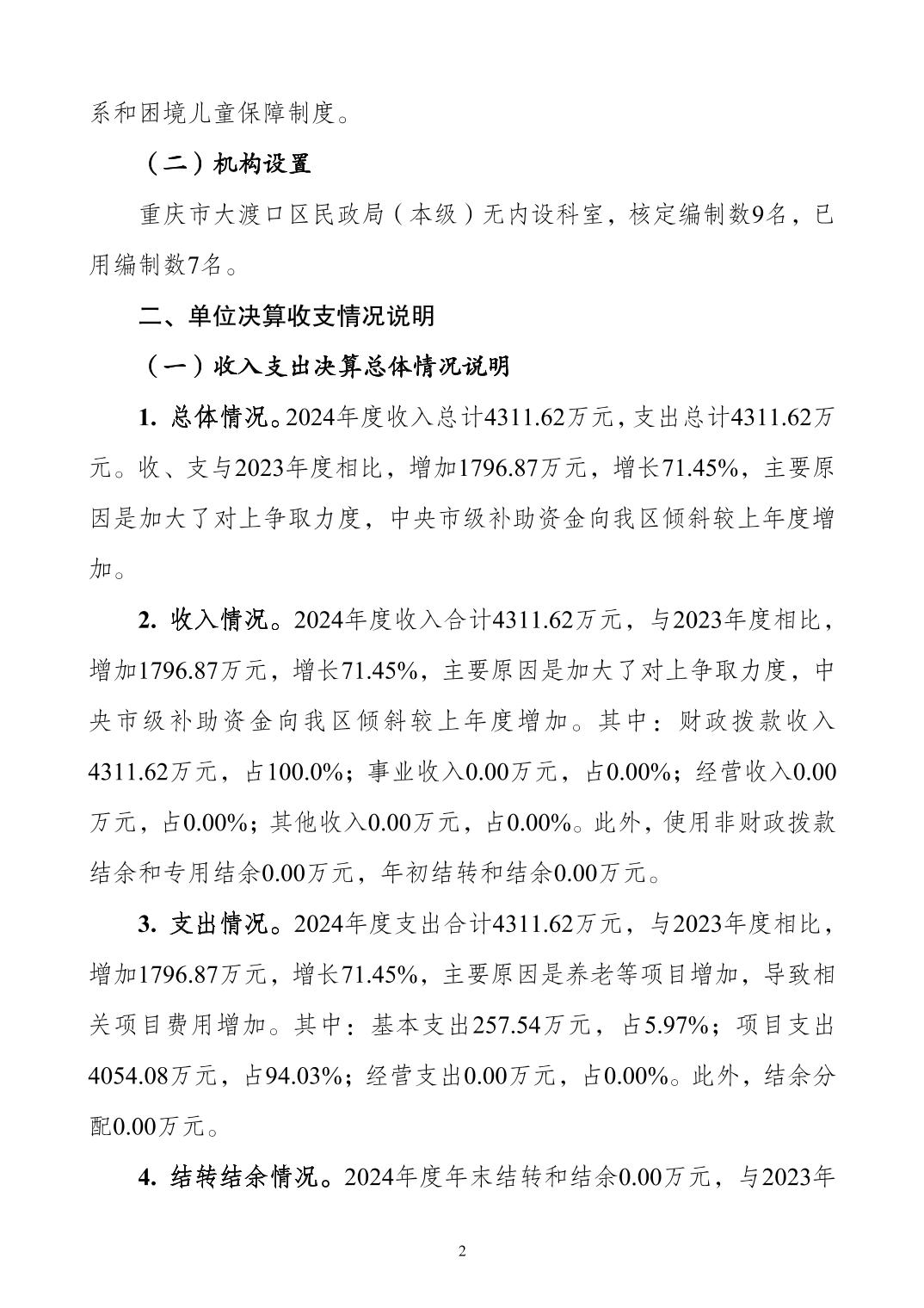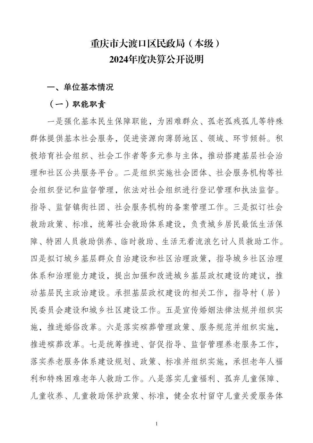 重庆市大渡口区民政局(本级)2024年度决算公开说明