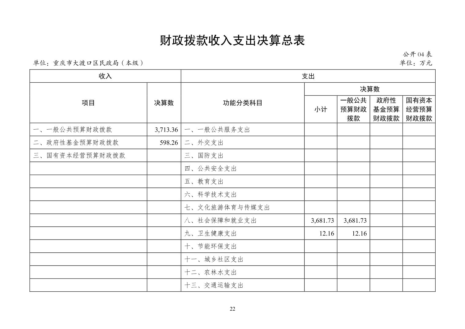 | [ 主题分类 ] | 民政、乡村振兴、救灾 | [ 体裁分类 ] | 财政预算、决算 |