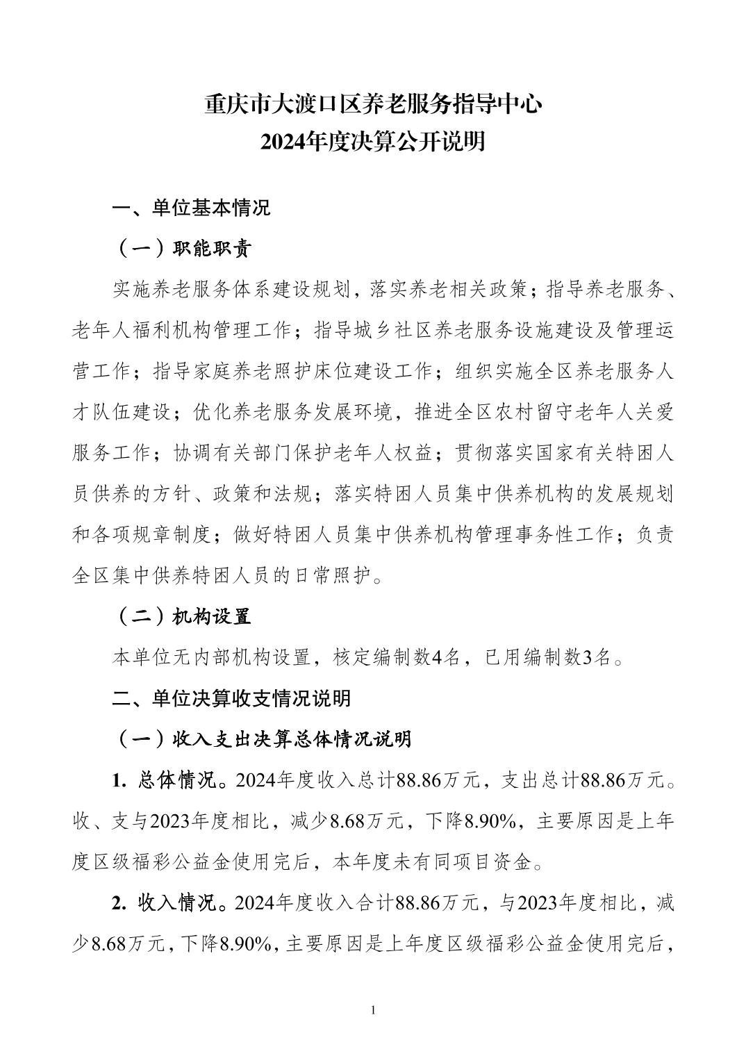 重庆市大渡口区养老服务指导中心2024年度决算公开说明