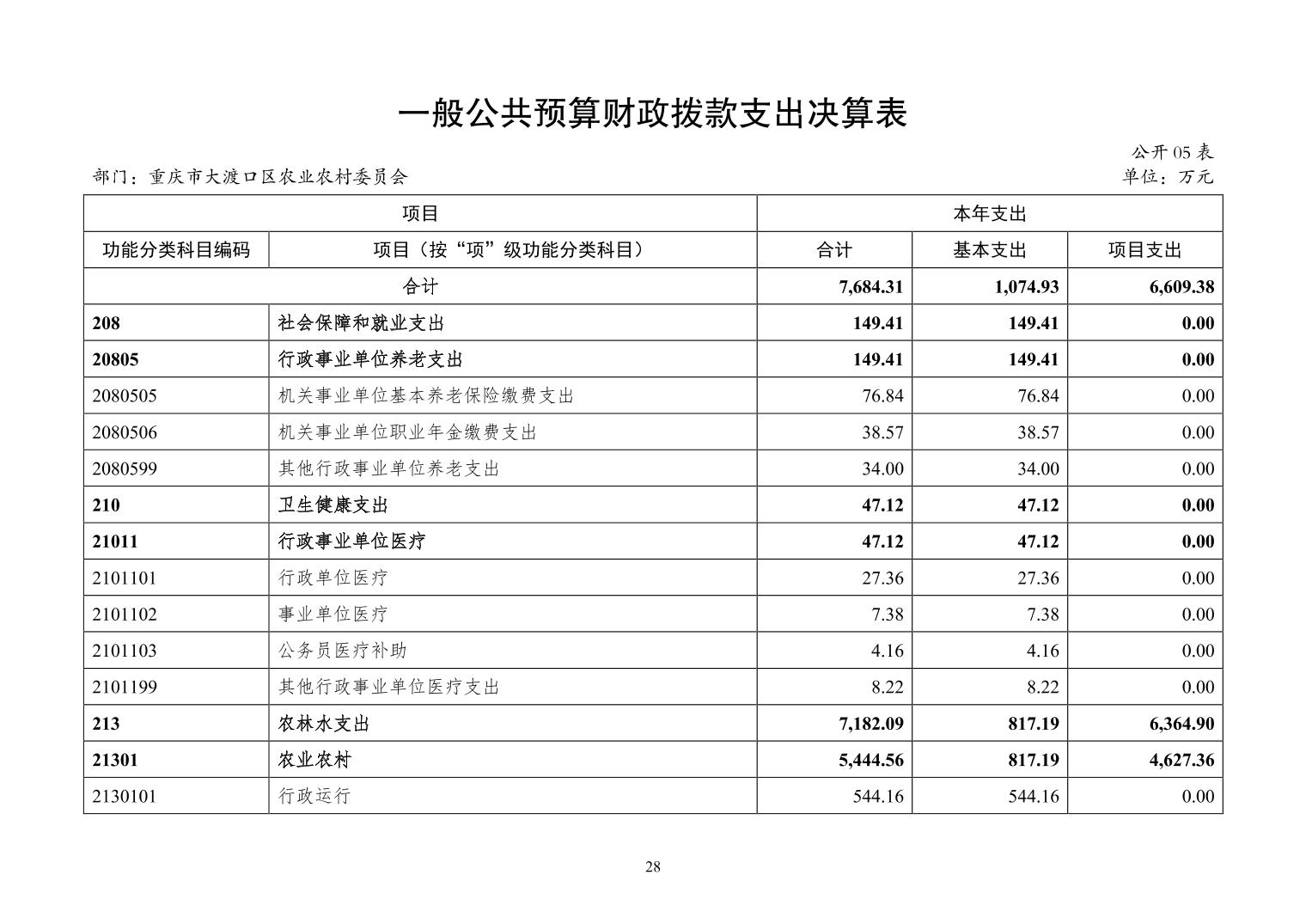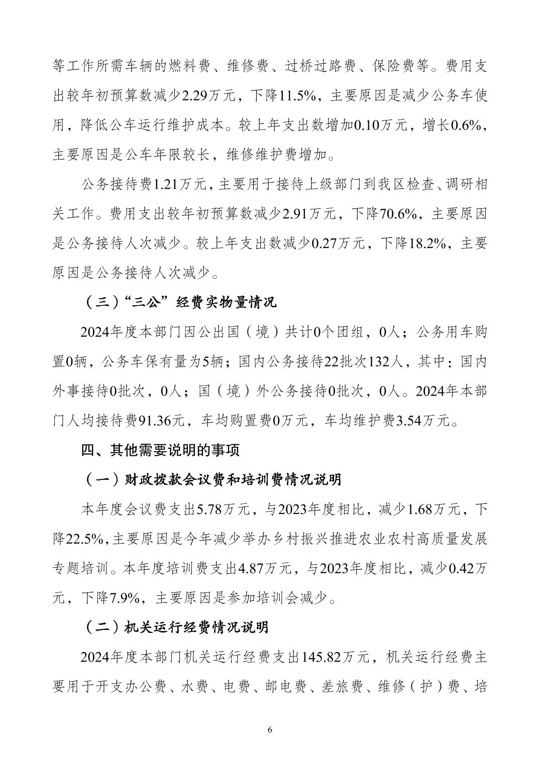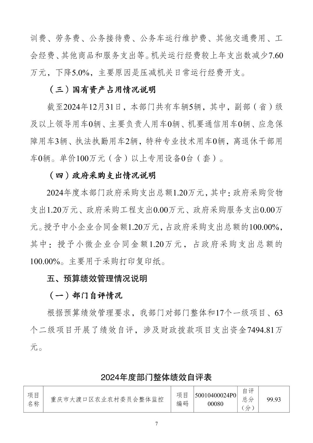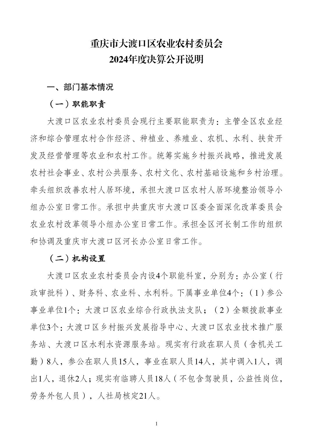 重庆市大渡口区农业农村委员会2024年度决算公开说明