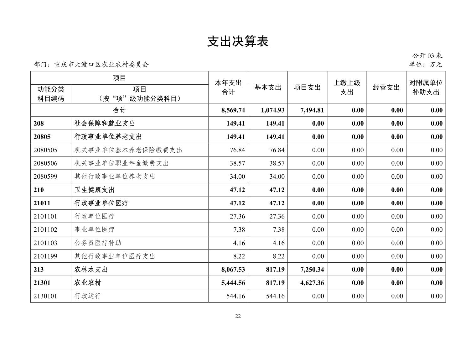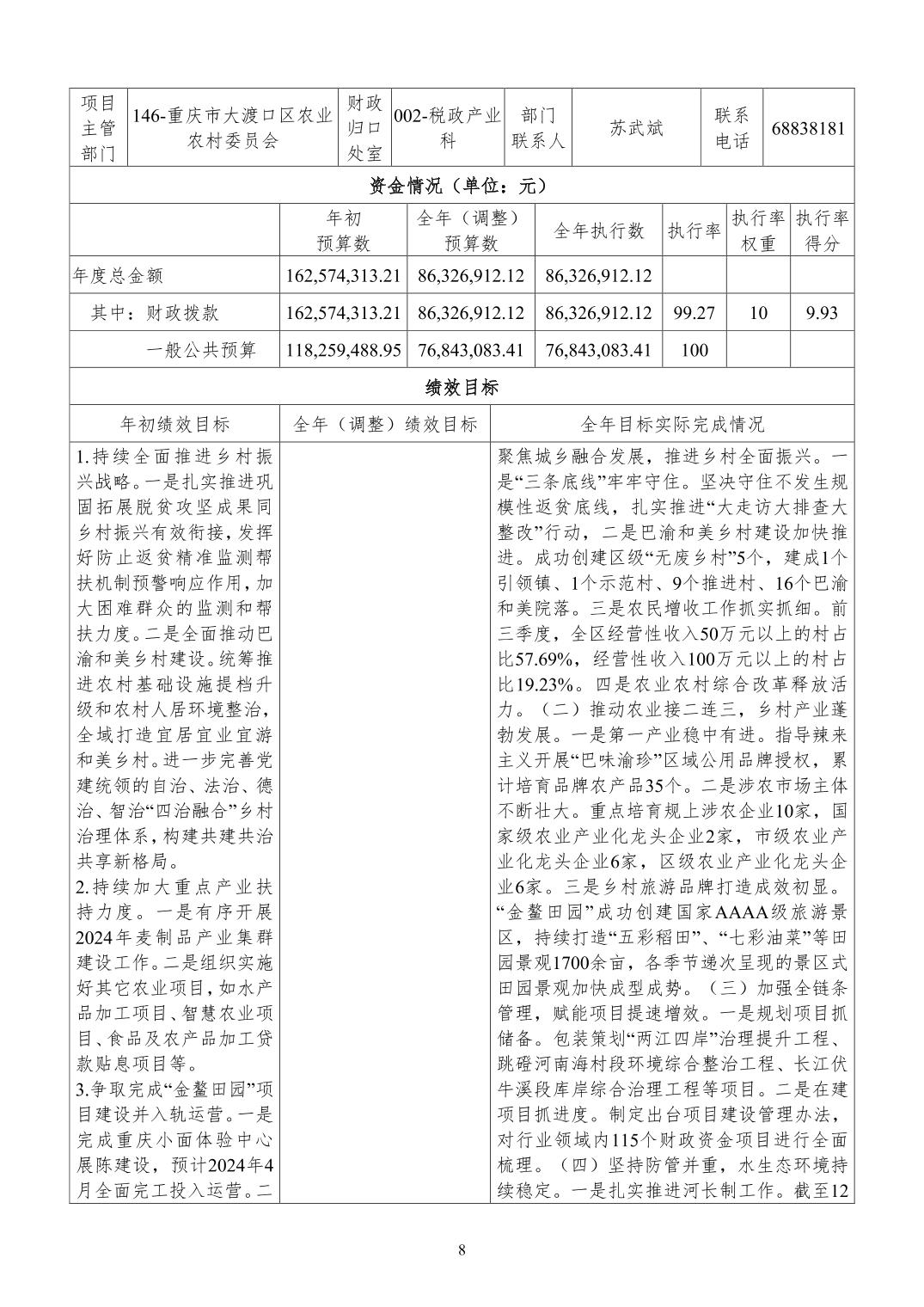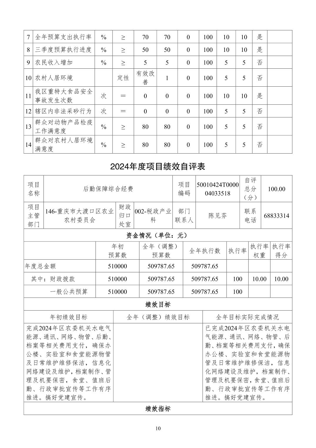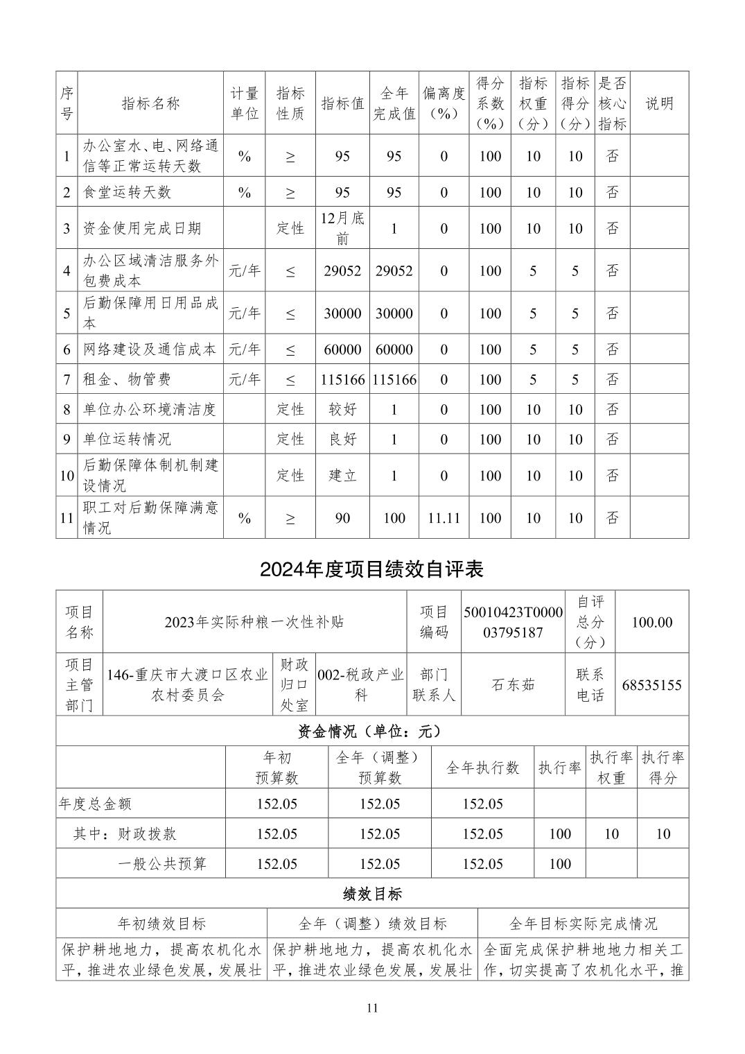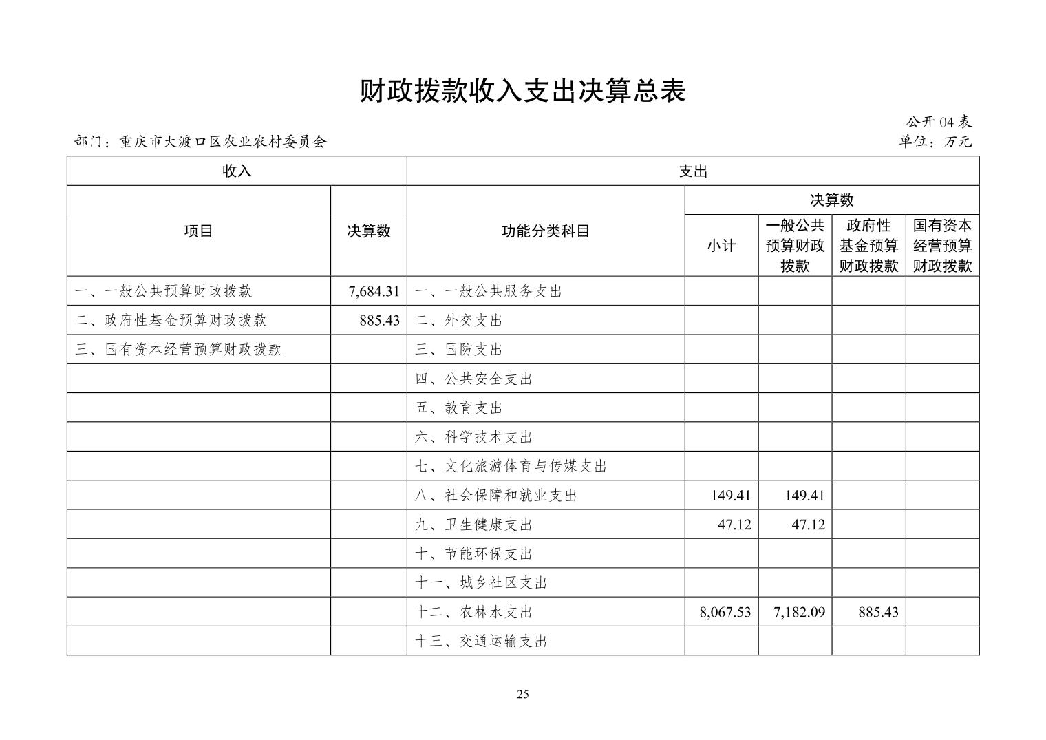 重庆市大渡口区农业农村委员会2024年度决算公开说明