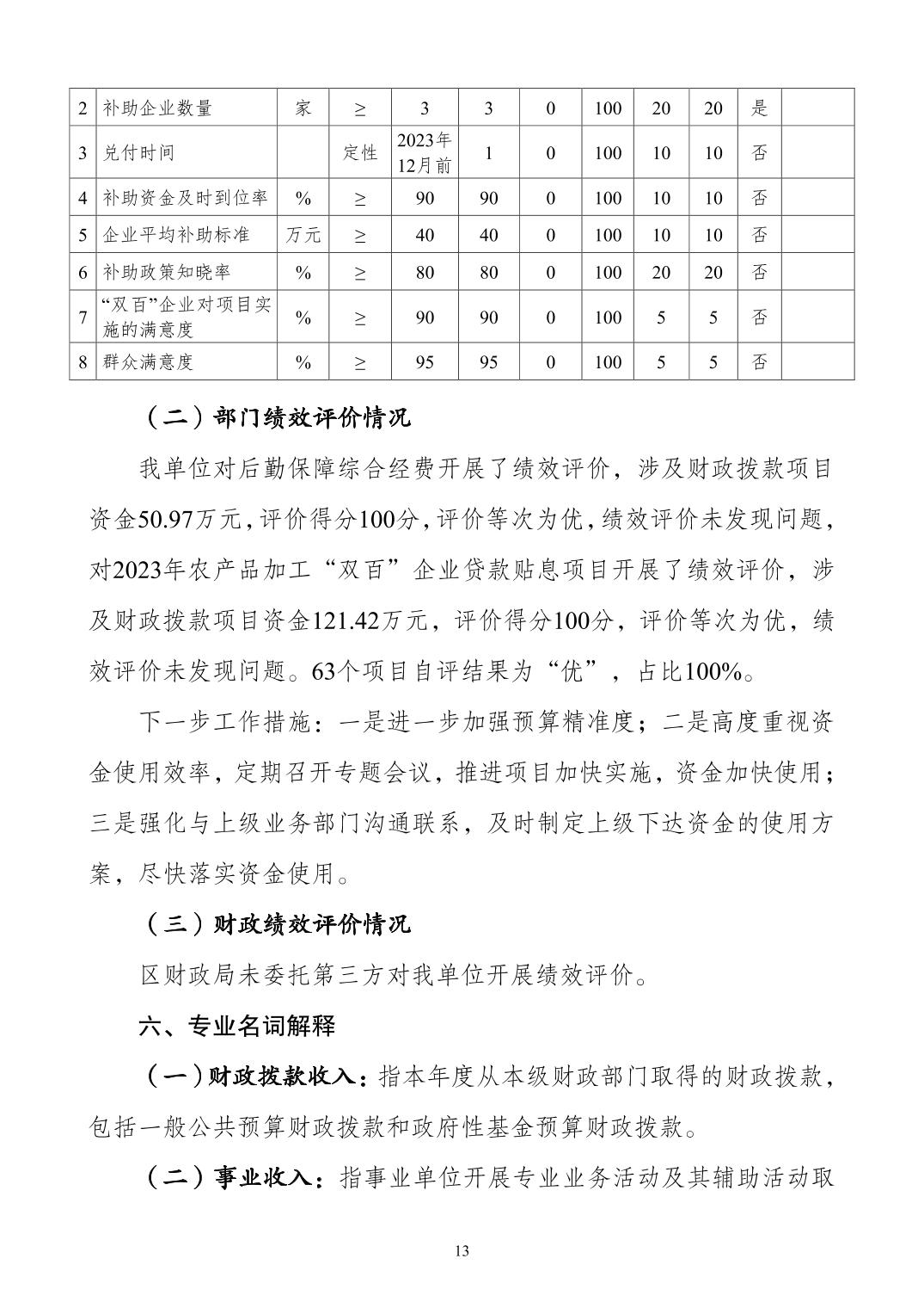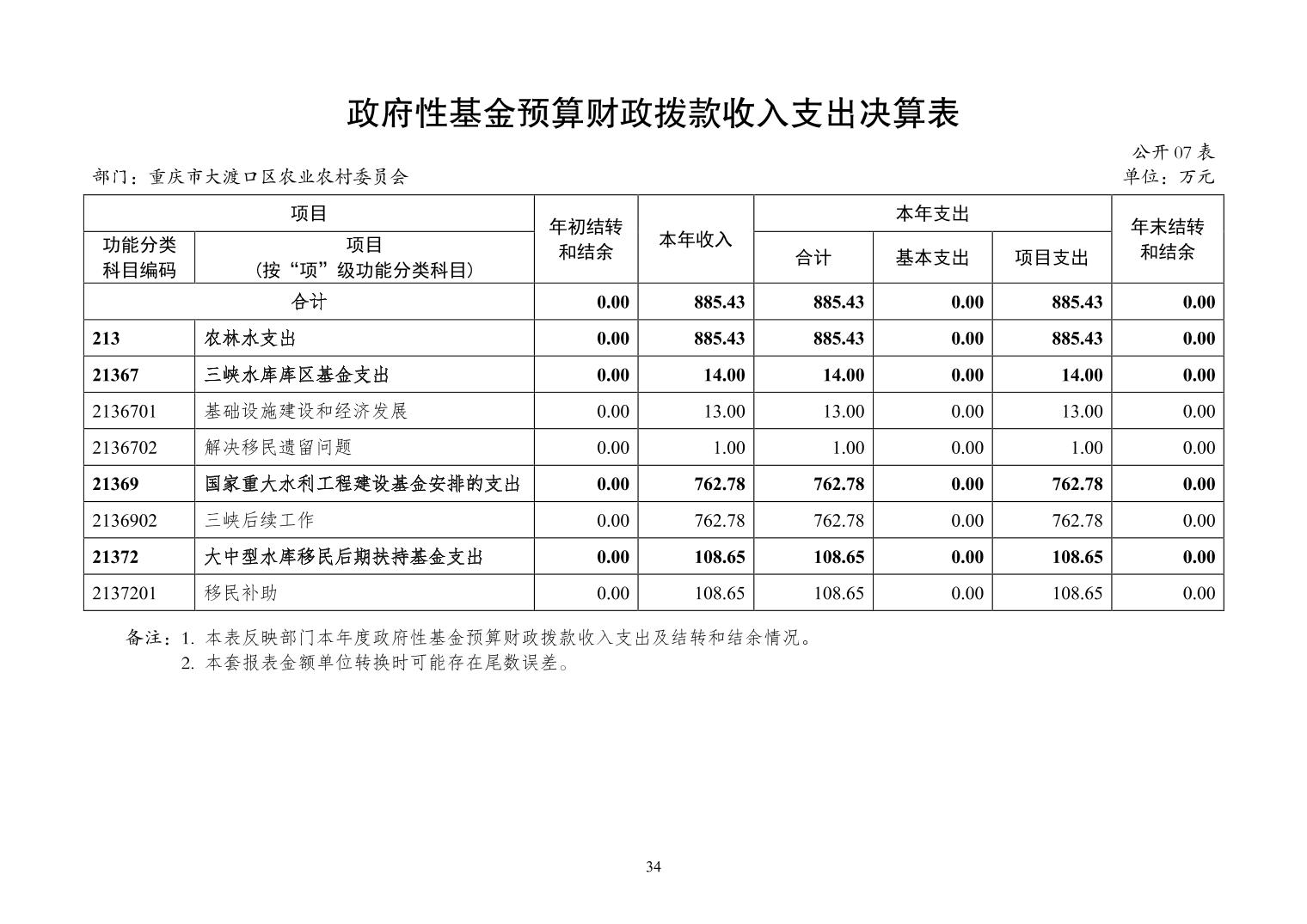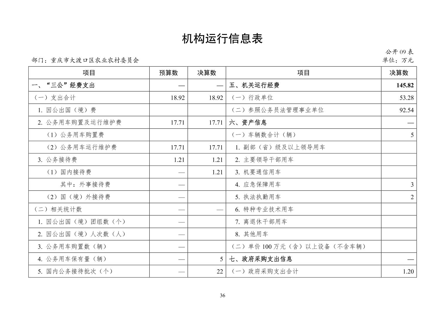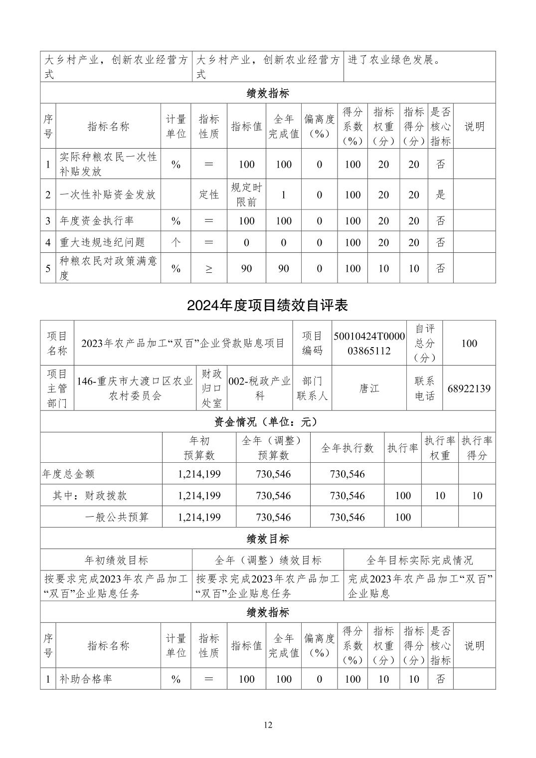重庆市大渡口区农业农村委员会2024年度决算公开说明