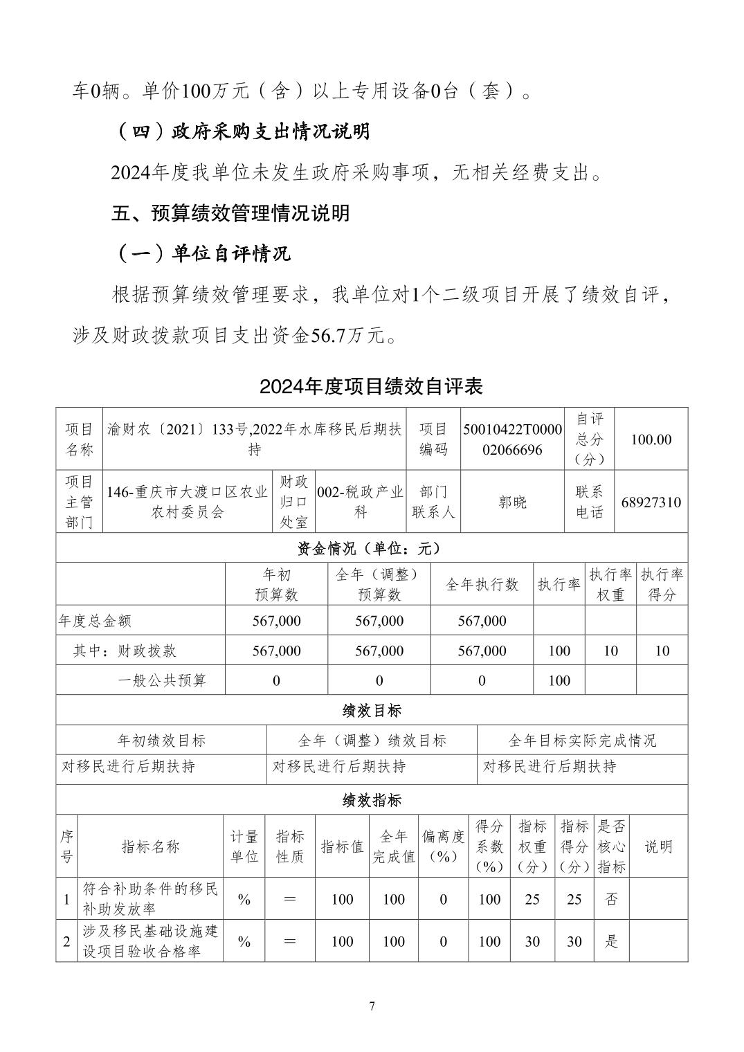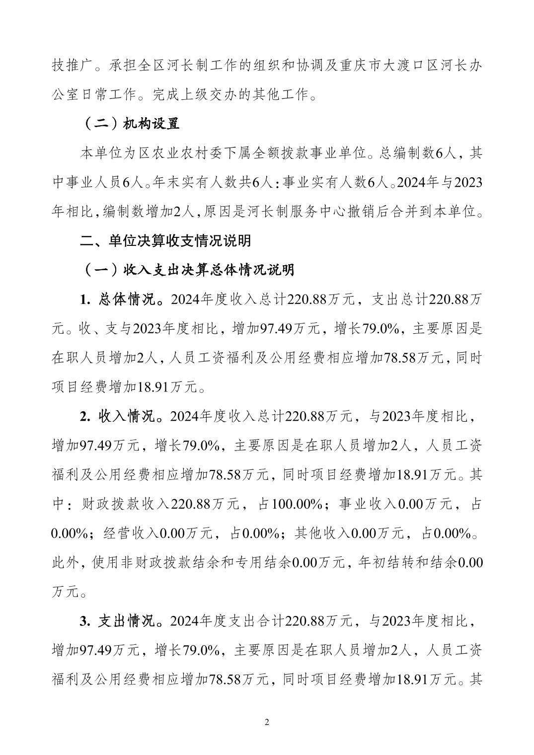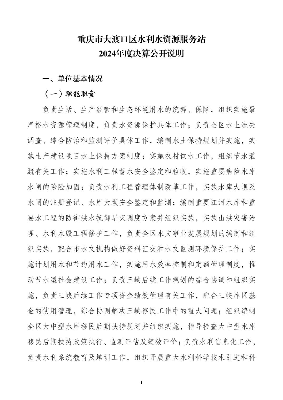 重庆市大渡口区水利水资源服务站2024年度决算公开说明