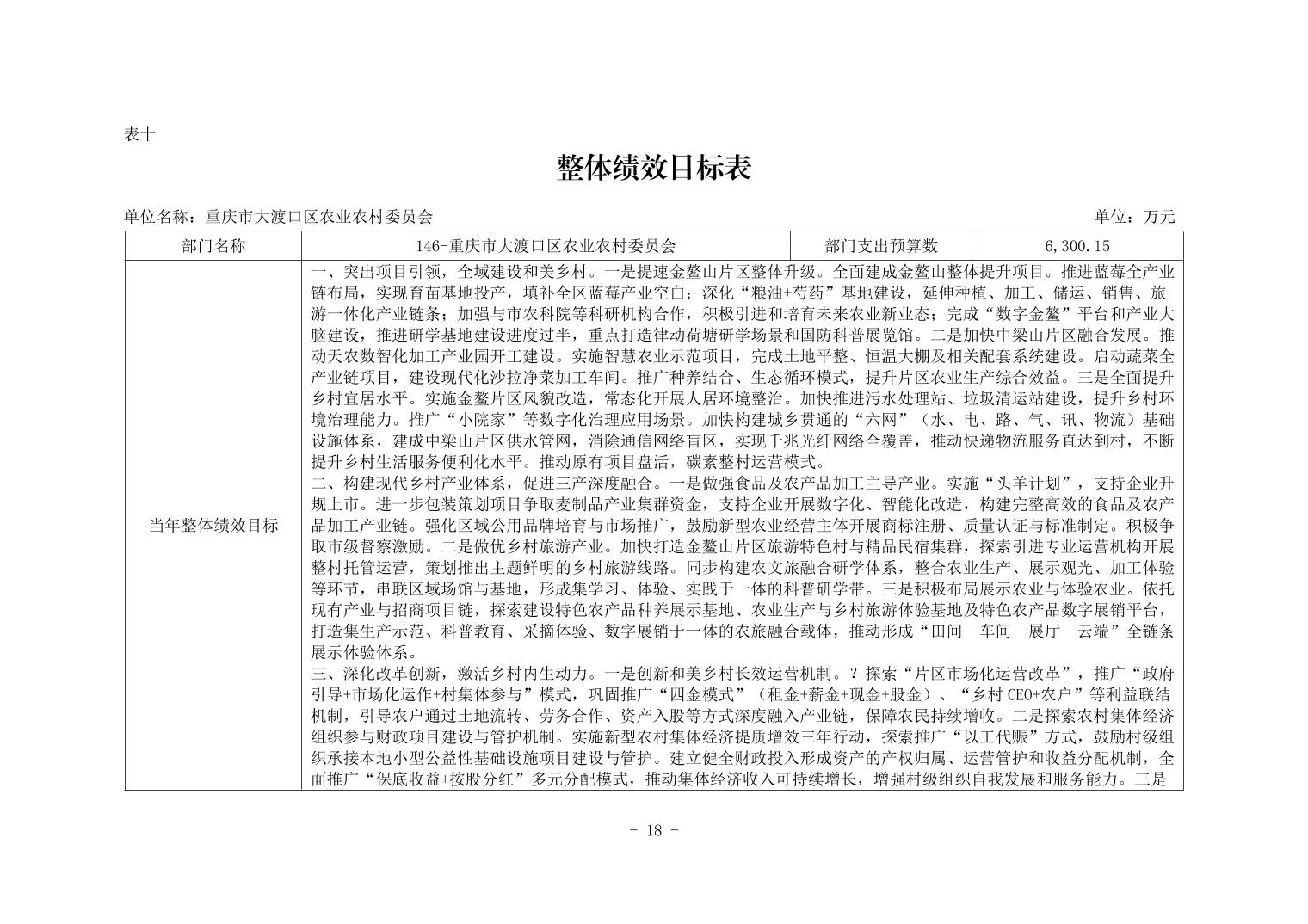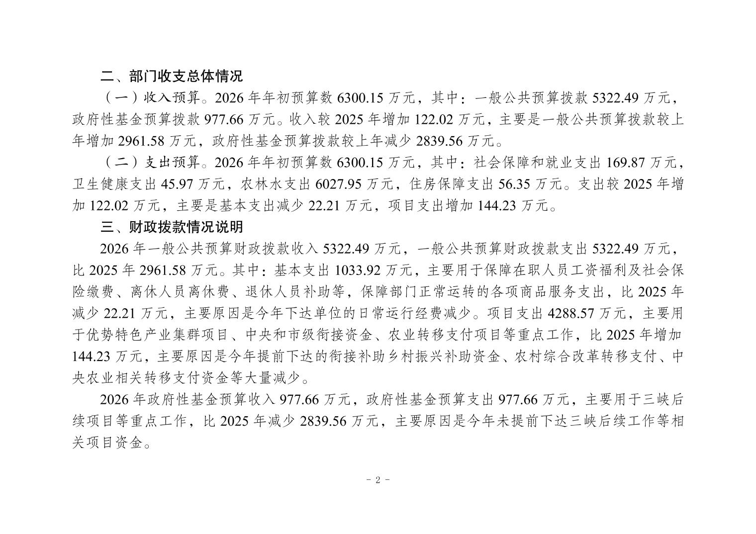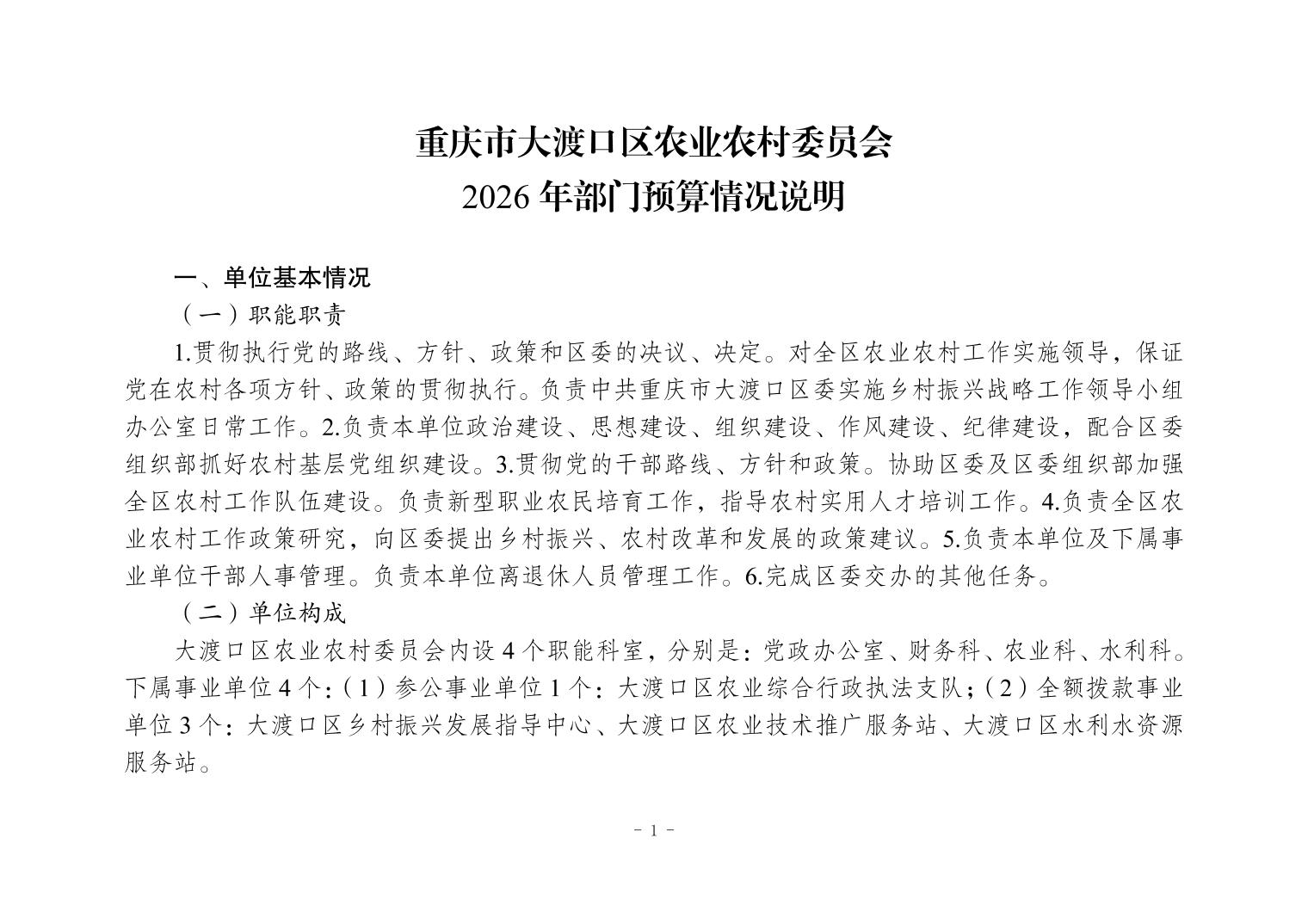 重庆市大渡口区农业农村委员会2026年部门预算情况说明