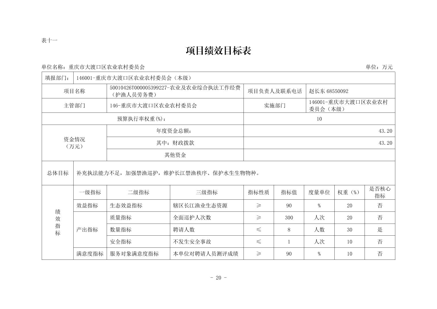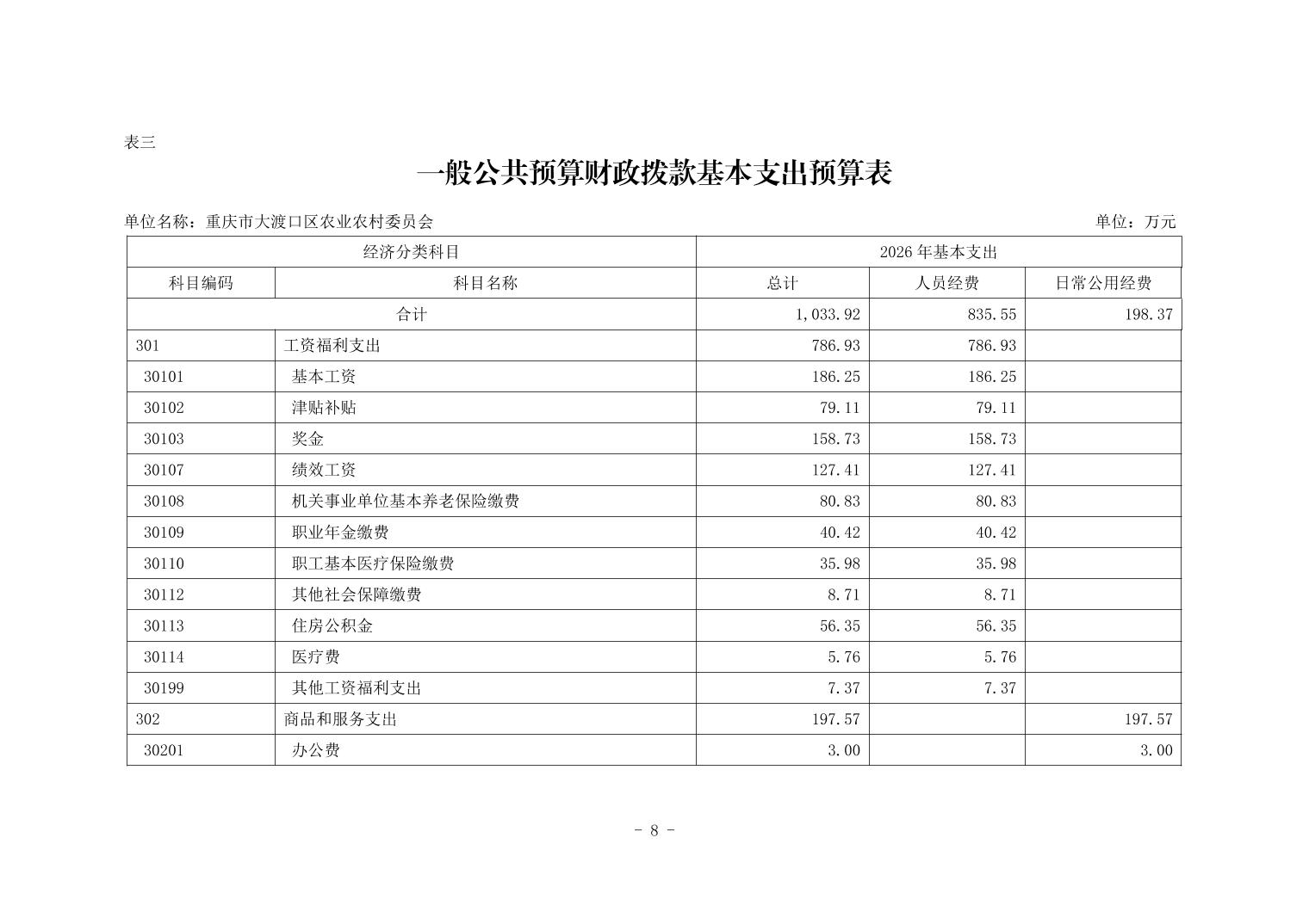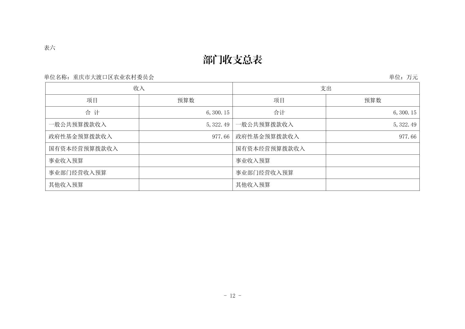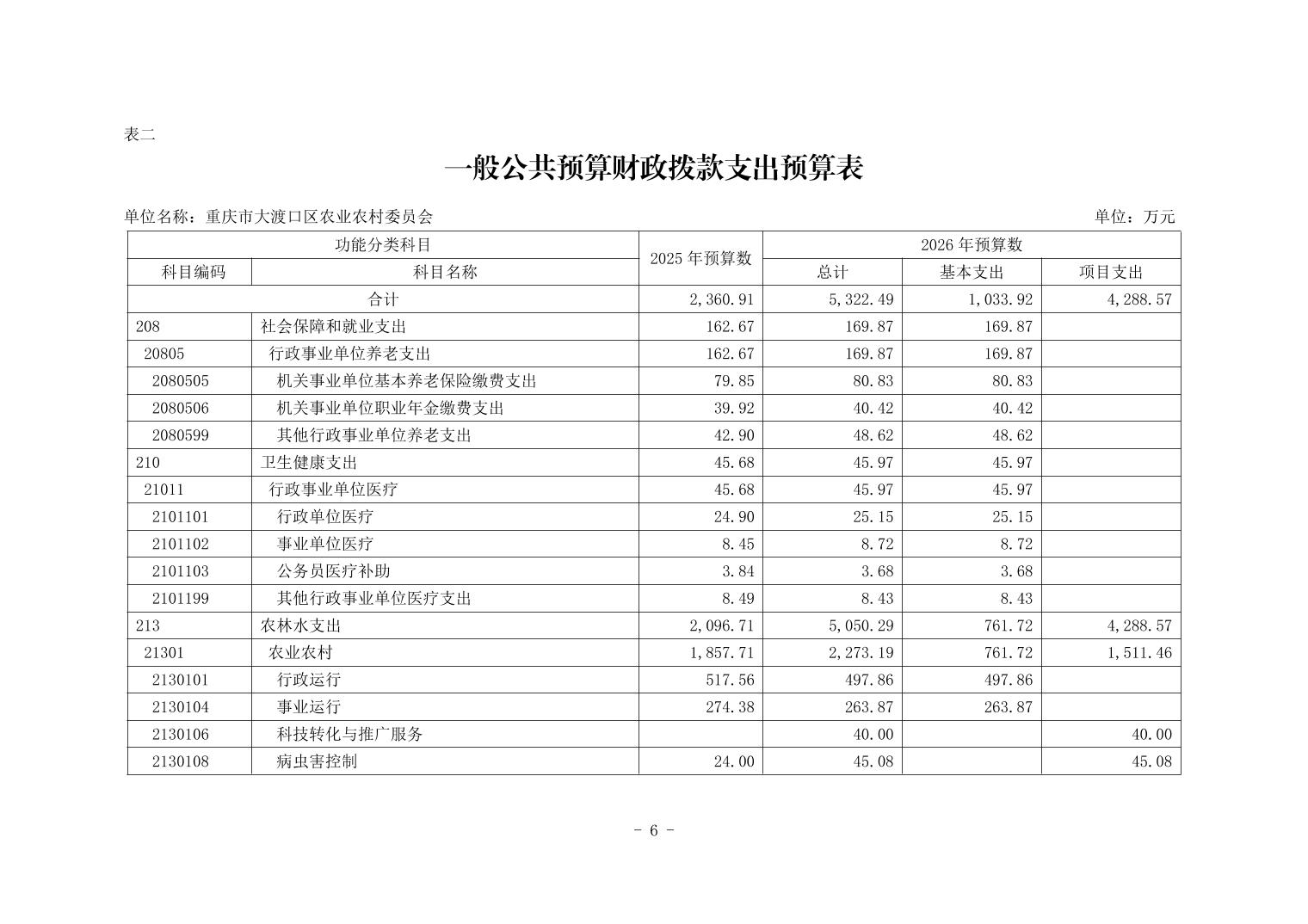 重庆市大渡口区农业农村委员会2026年部门预算情况说明