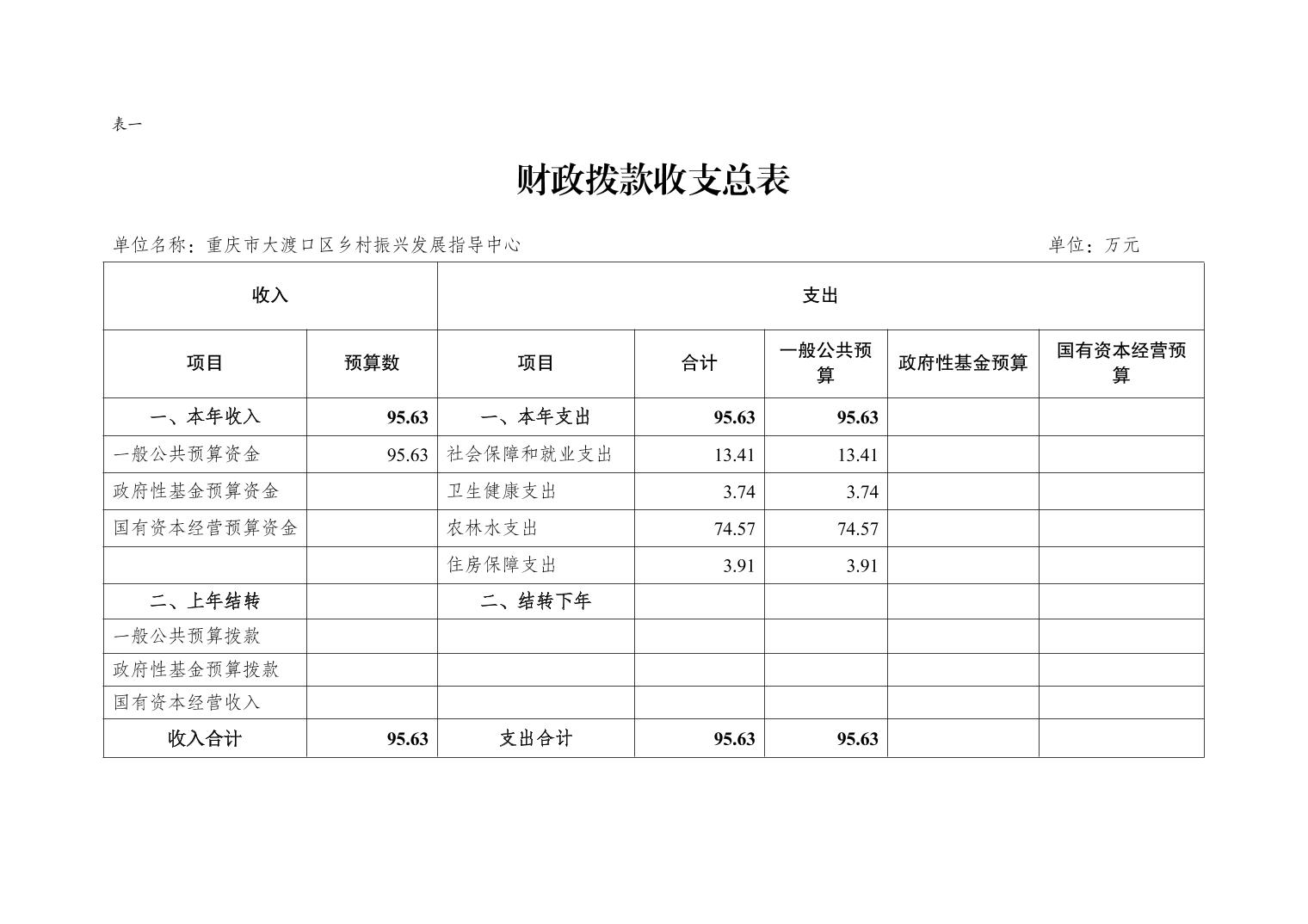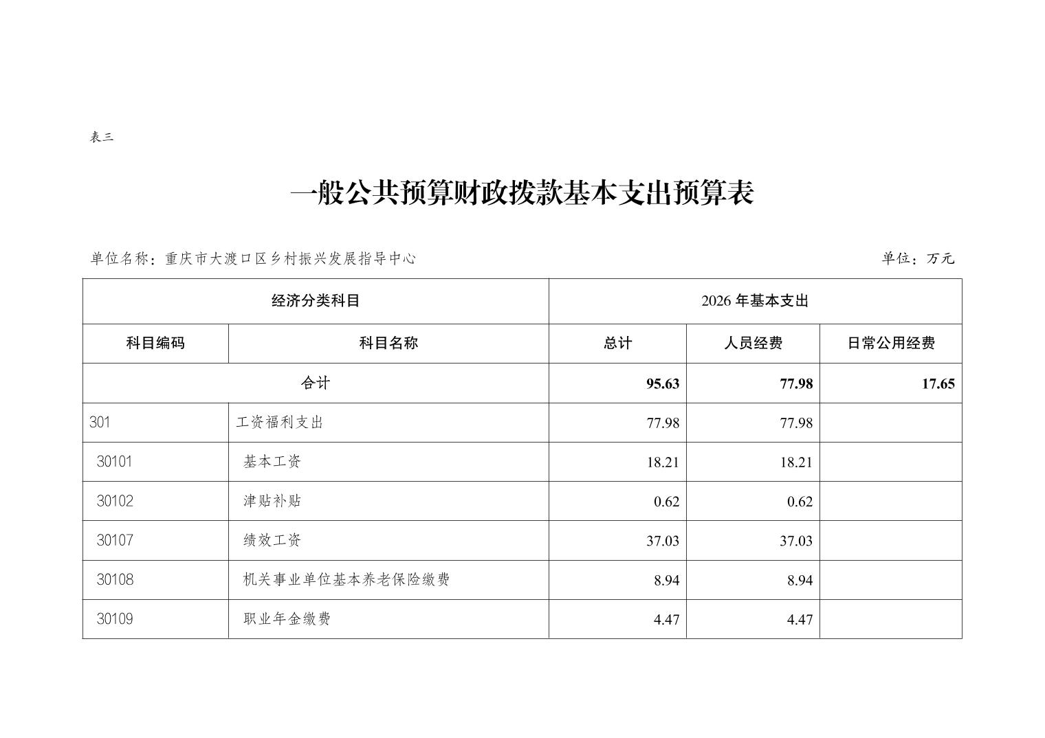 重庆市大渡口区乡村振兴发展指导中心2026年单位预算情况说明