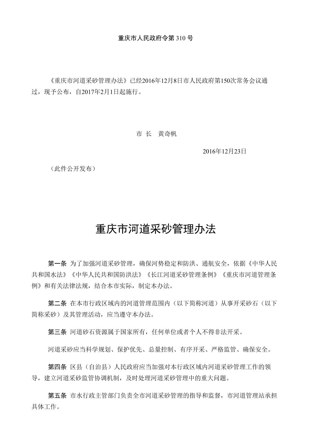 重庆市河道采砂管理办法