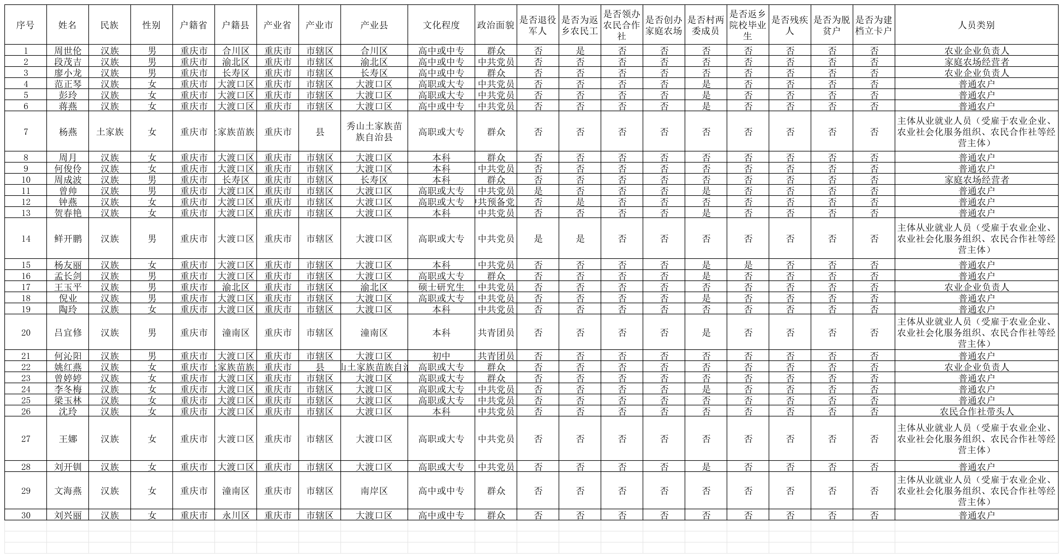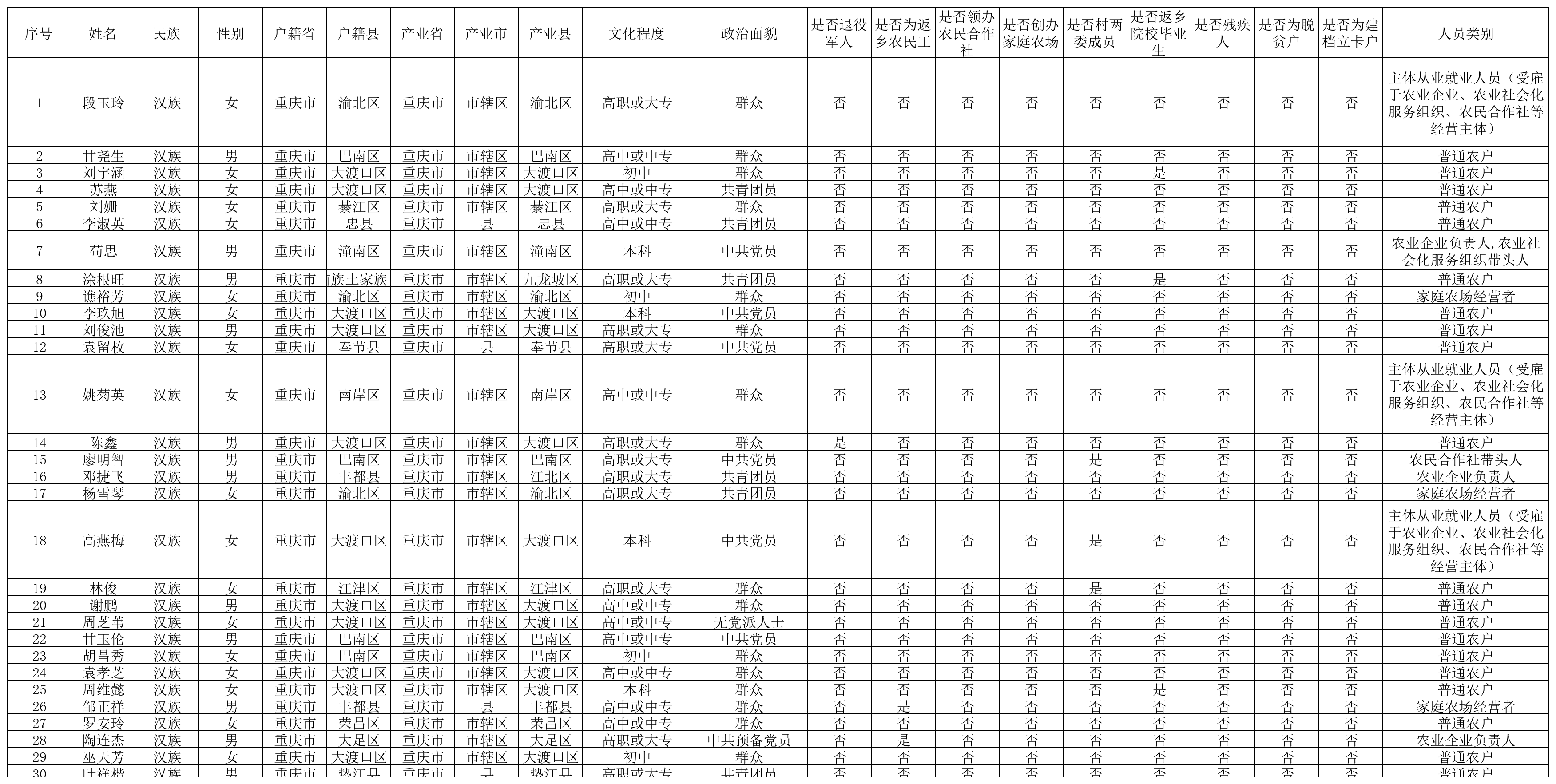 2025年度高素质农民培育名单