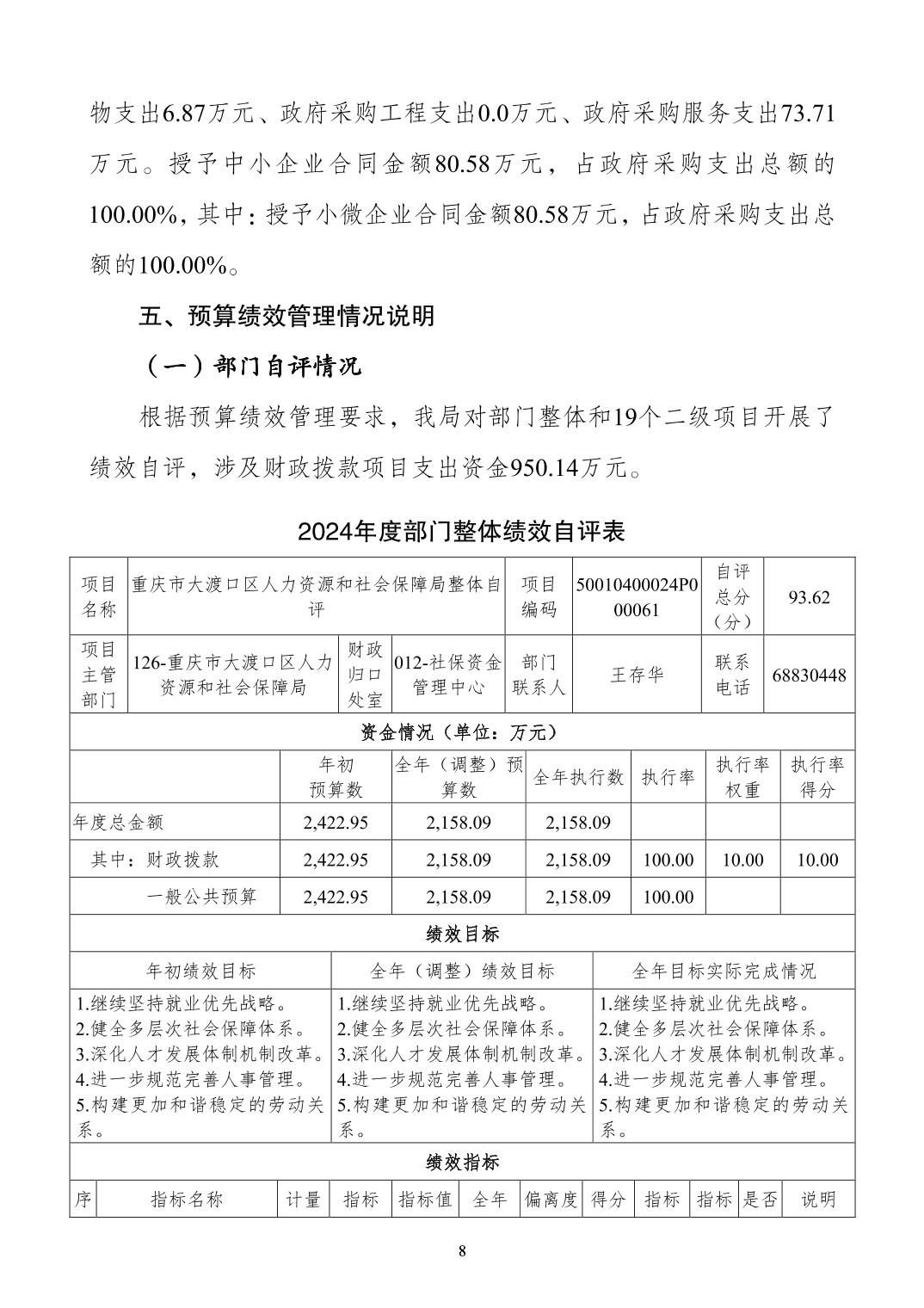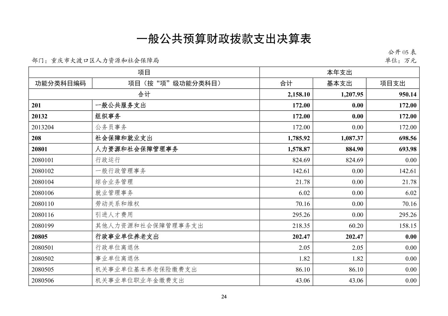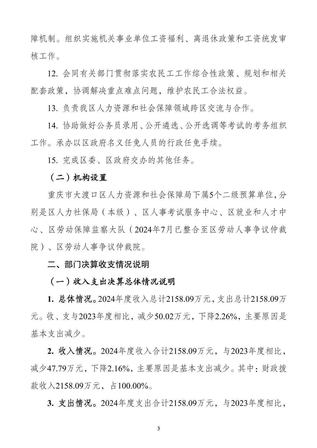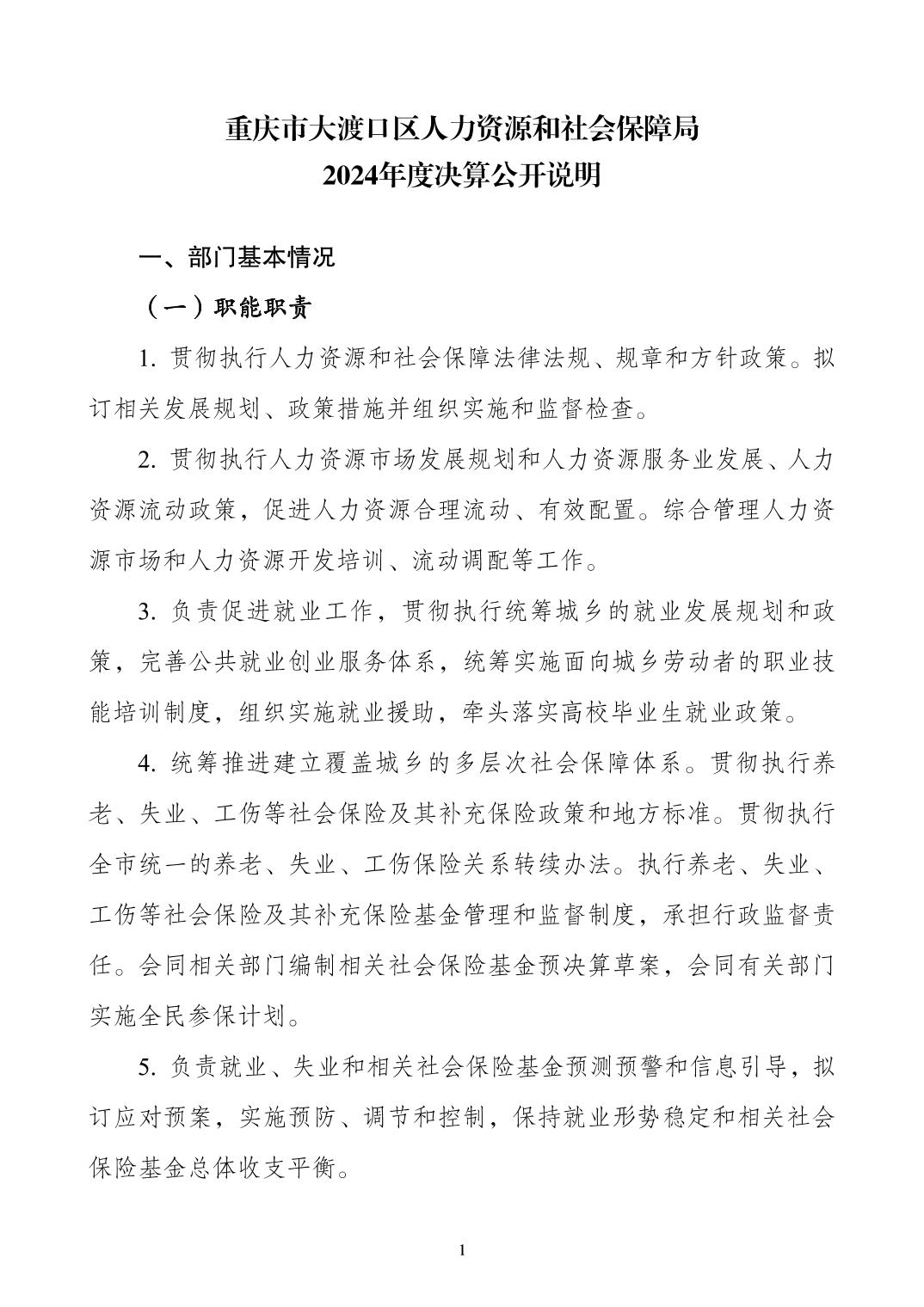 重庆市大渡口区人力资源和社会保障局2024年度决算公开说明