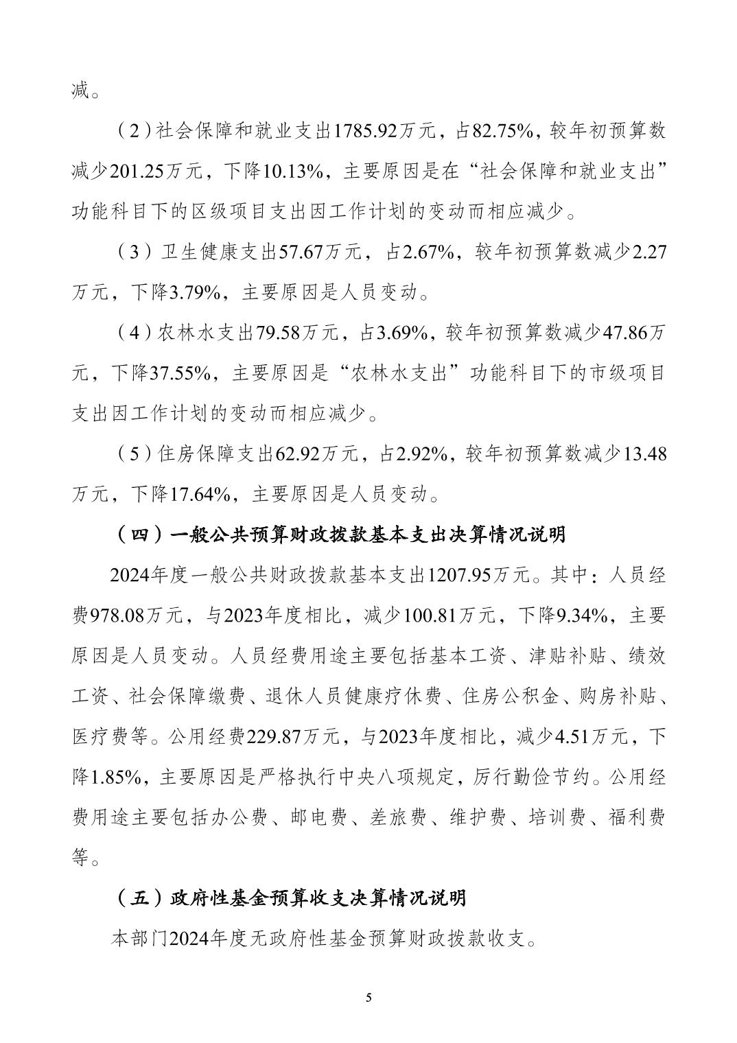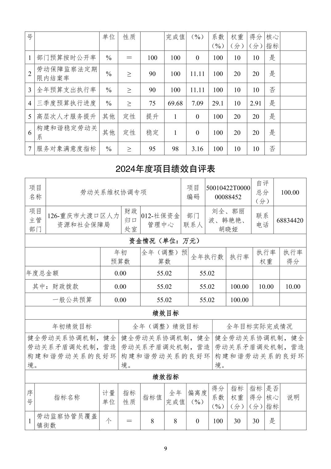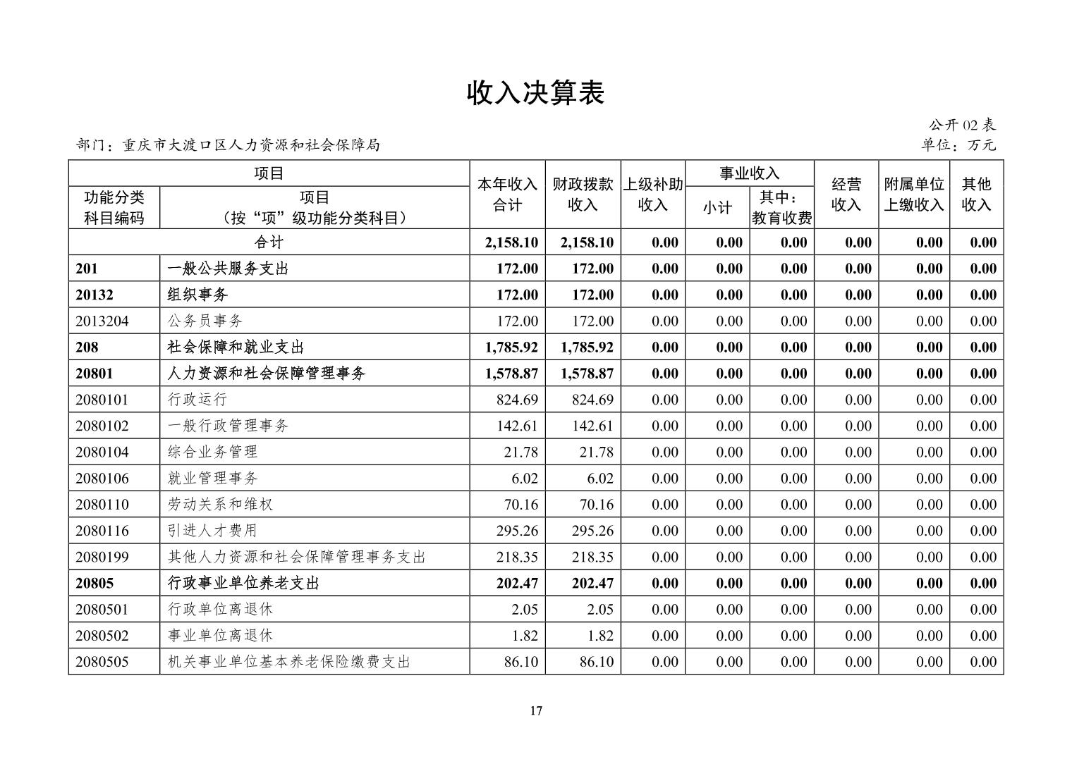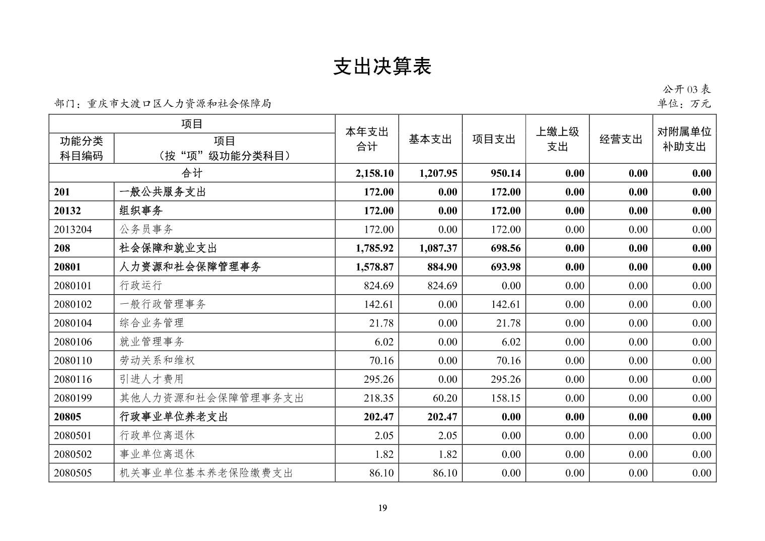 重庆市大渡口区人力资源和社会保障局2024年度决算公开说明