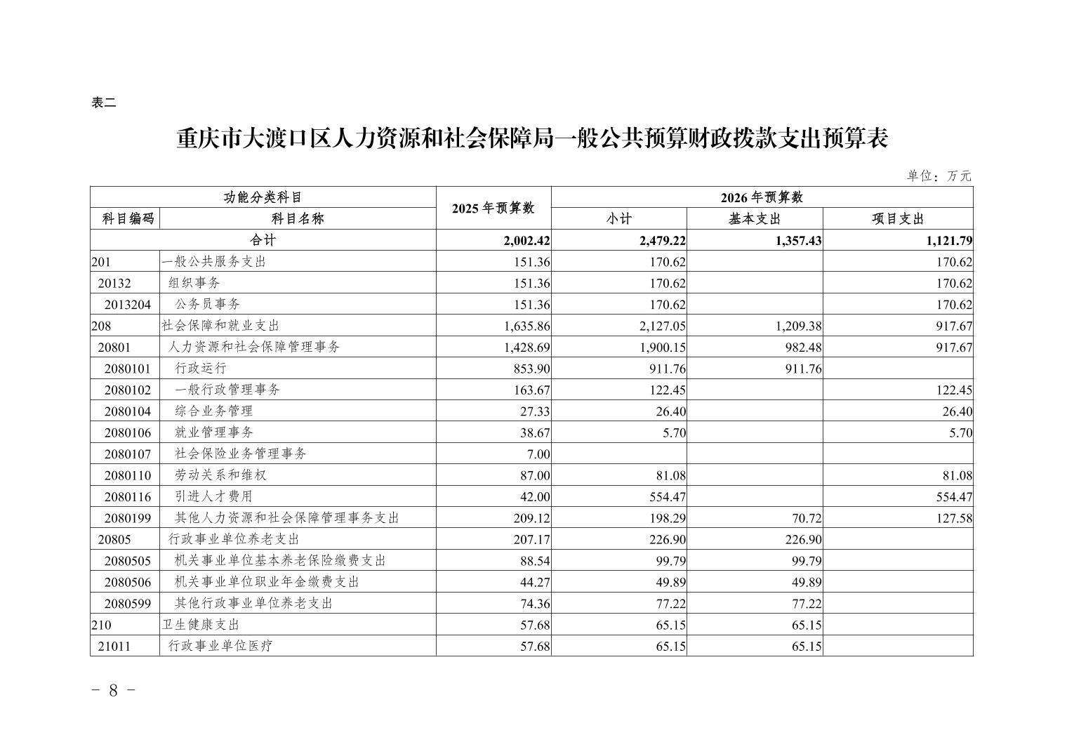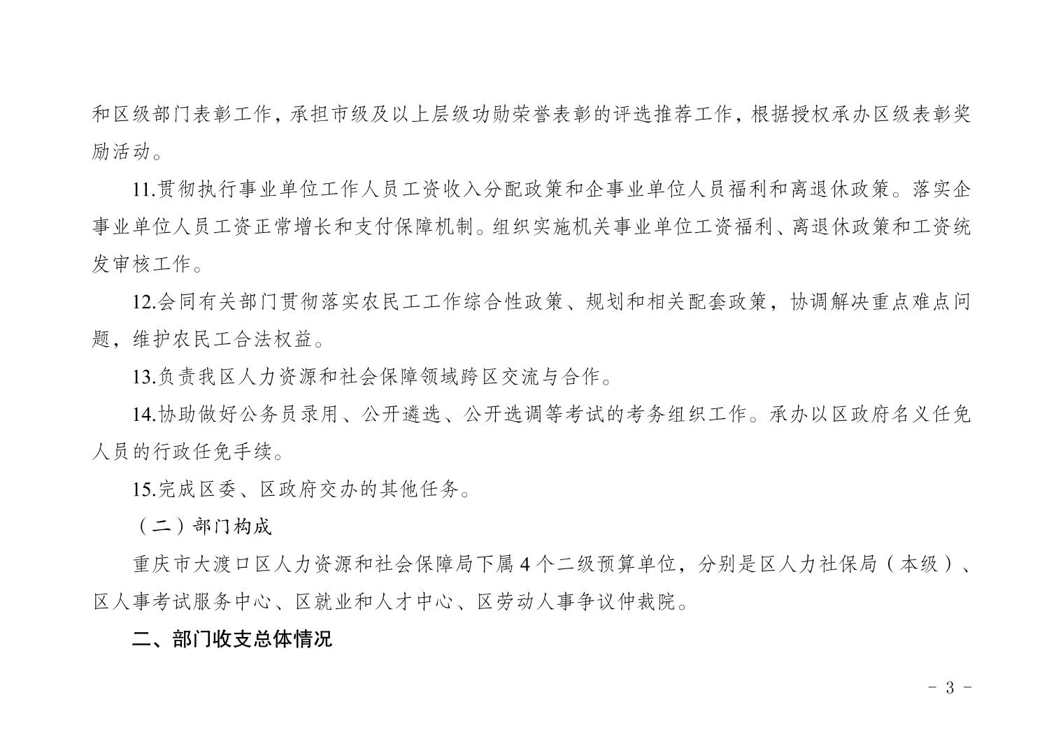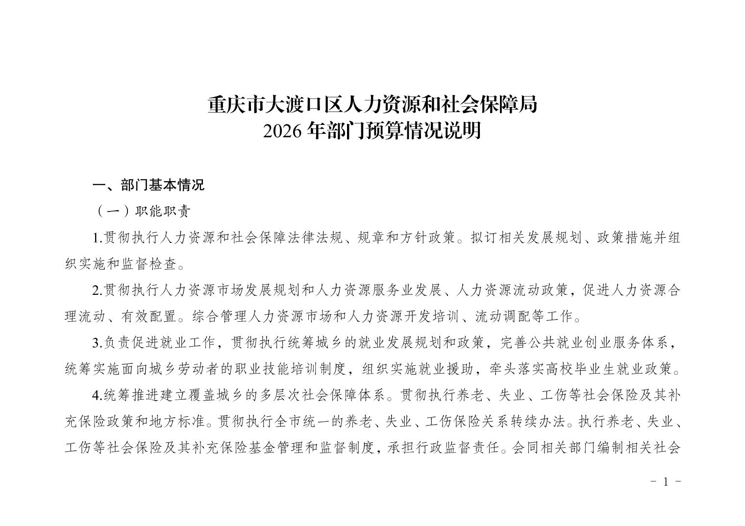 重庆市大渡口区人力资源和社会保障局2026年部门预算情况说明