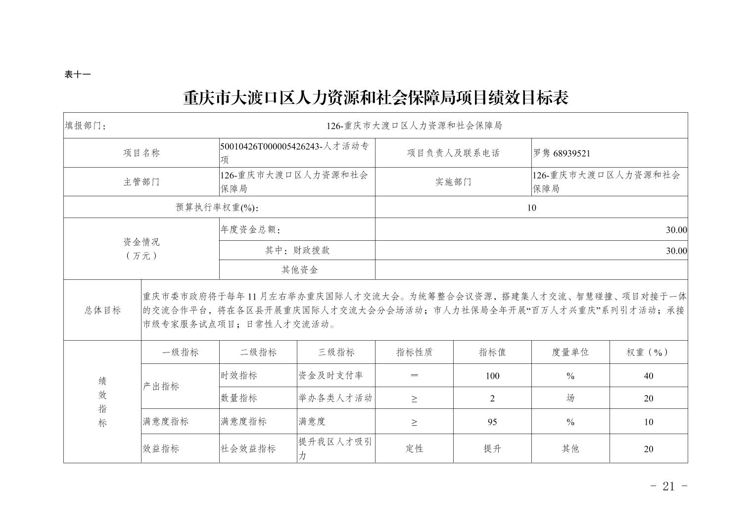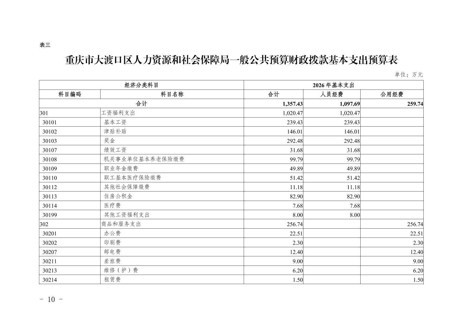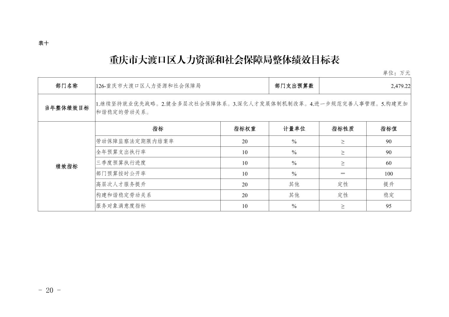 重庆市大渡口区人力资源和社会保障局2026年部门预算情况说明