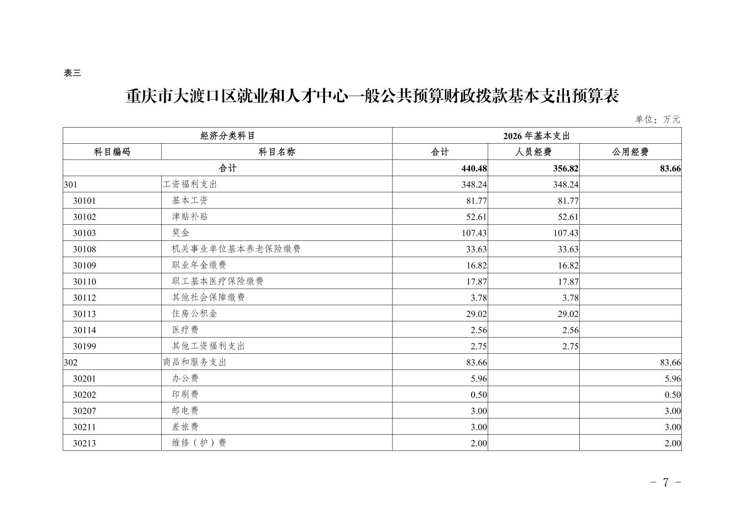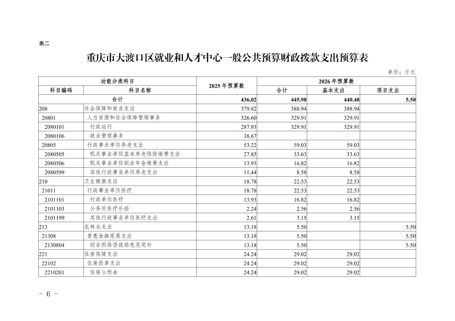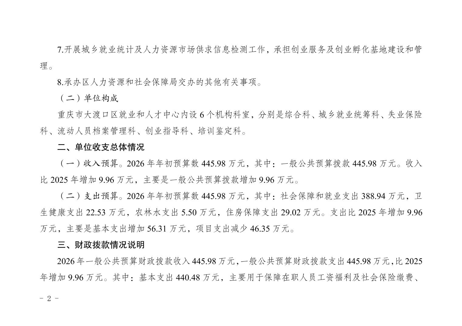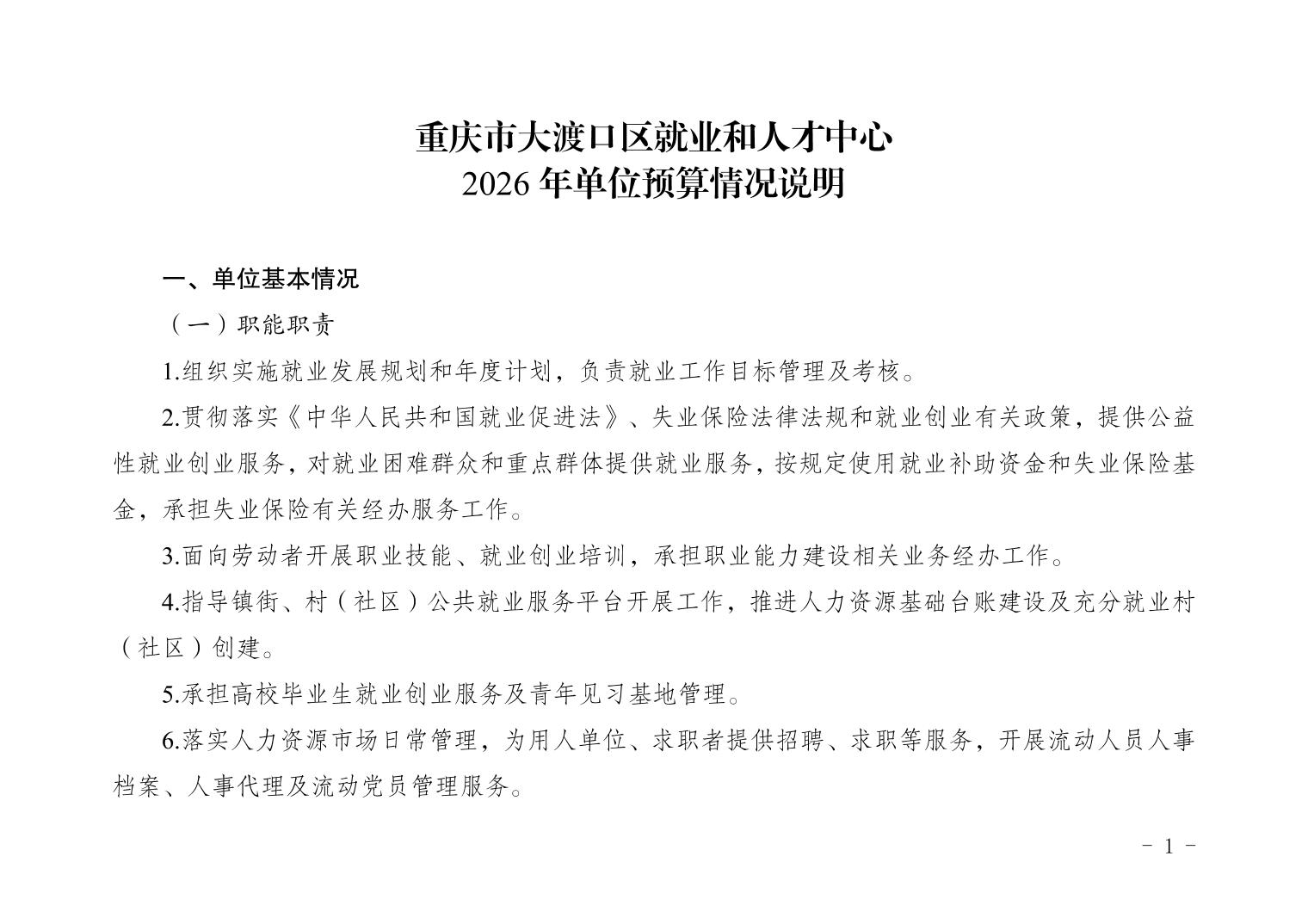 重庆市大渡口区就业和人才中心2026年单位预算情况说明