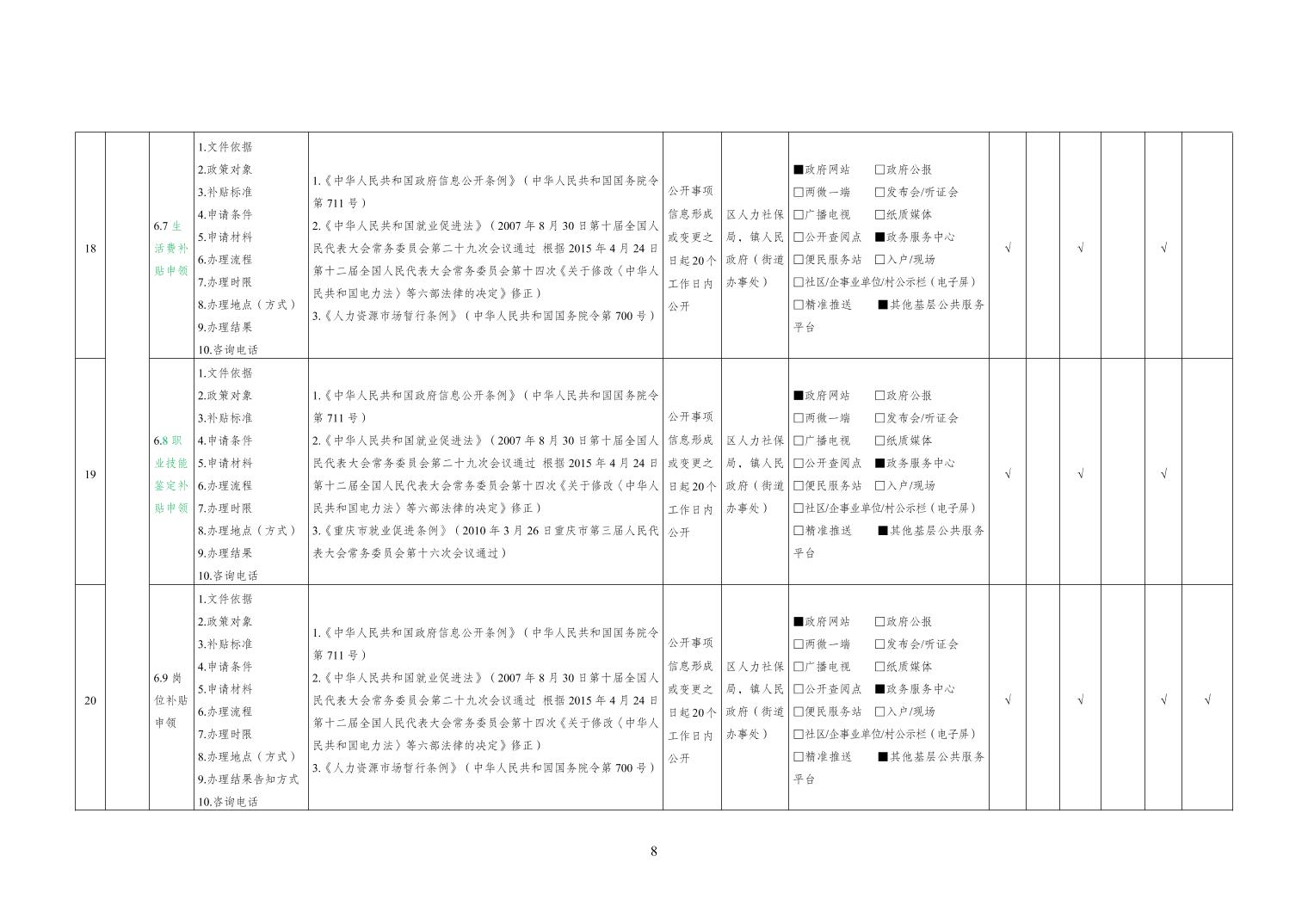 重庆市大渡口区就业创业领域政务公开标准目录(2025年版)