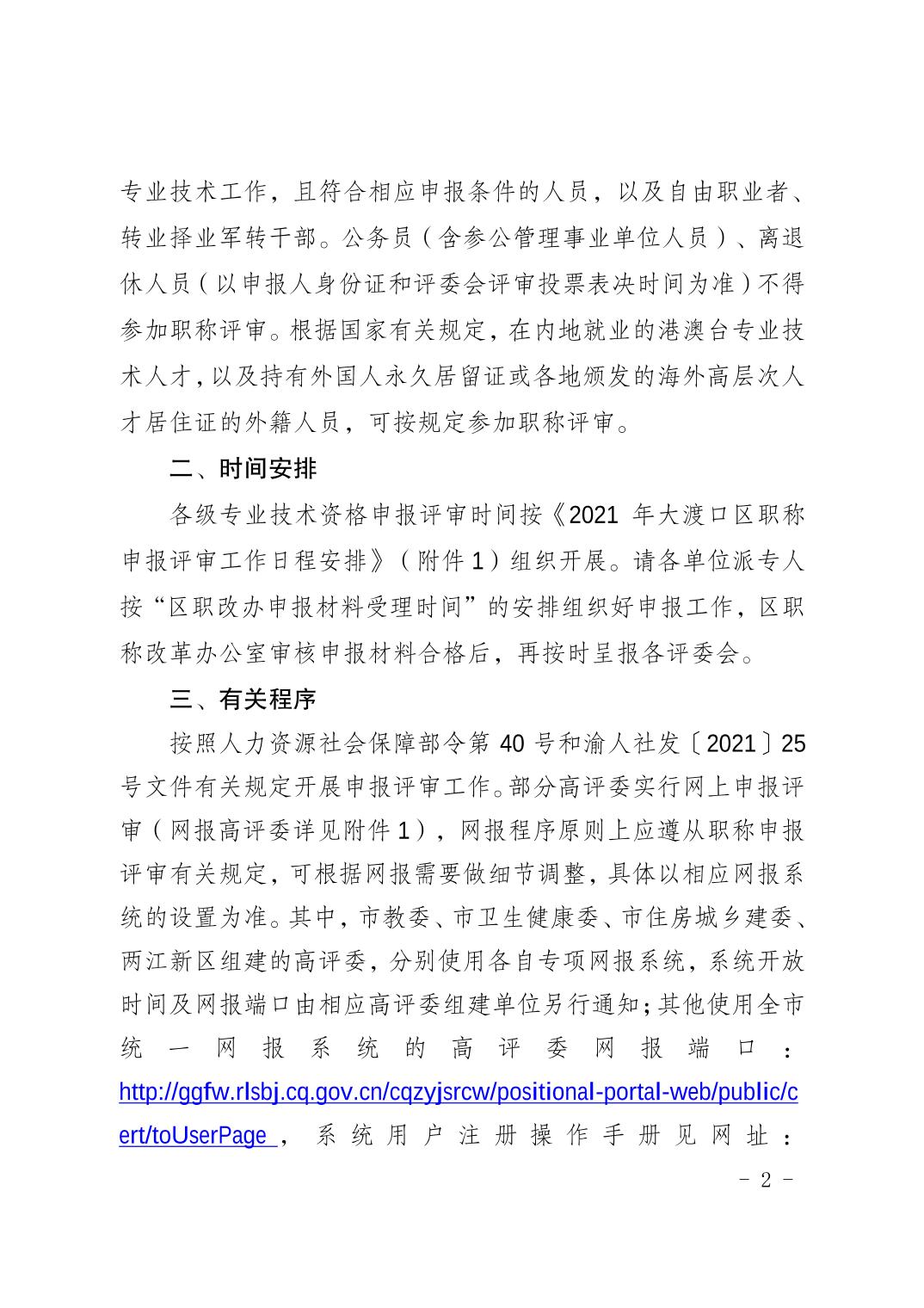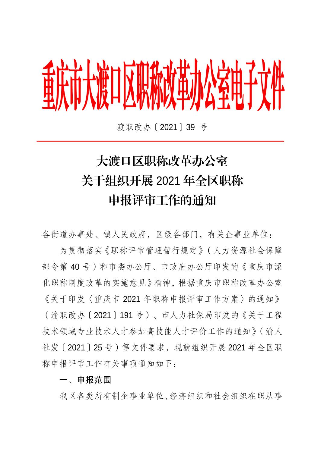 大渡口区职称改革办公室关于组织开展2021年全区职称申报评审工作的通知.pdf