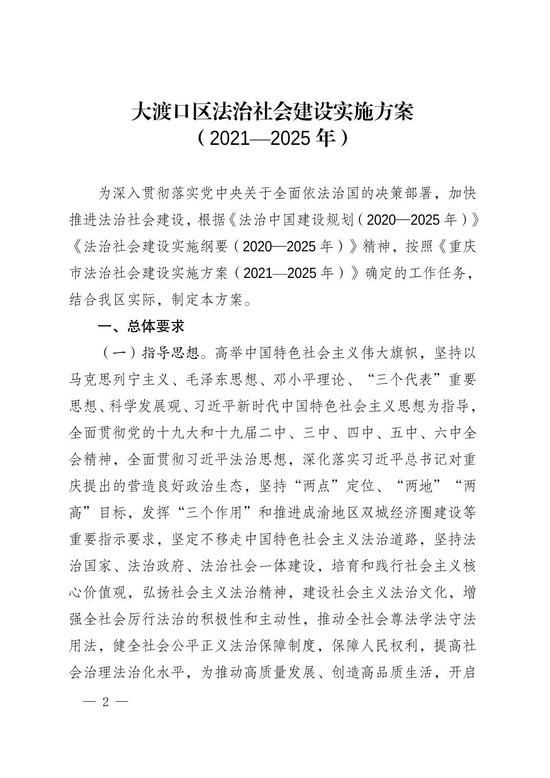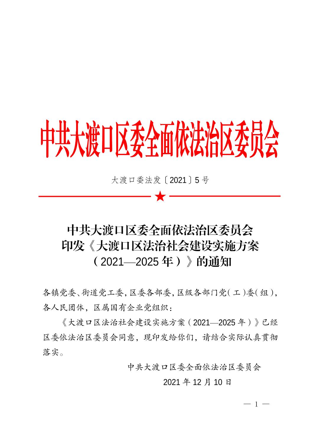 印发《大渡口区法治社会建设实施方案(2021—2025年)》的通知