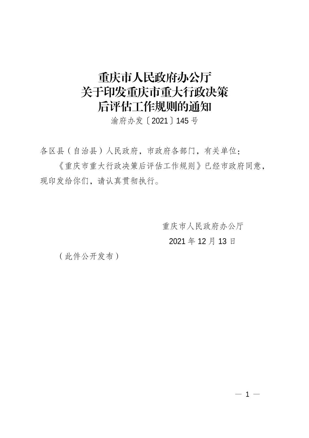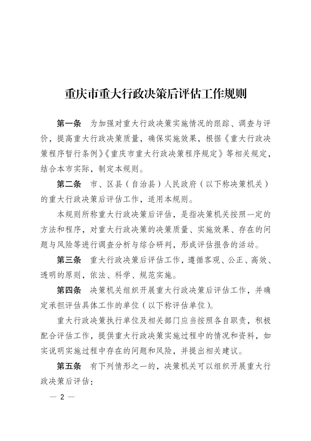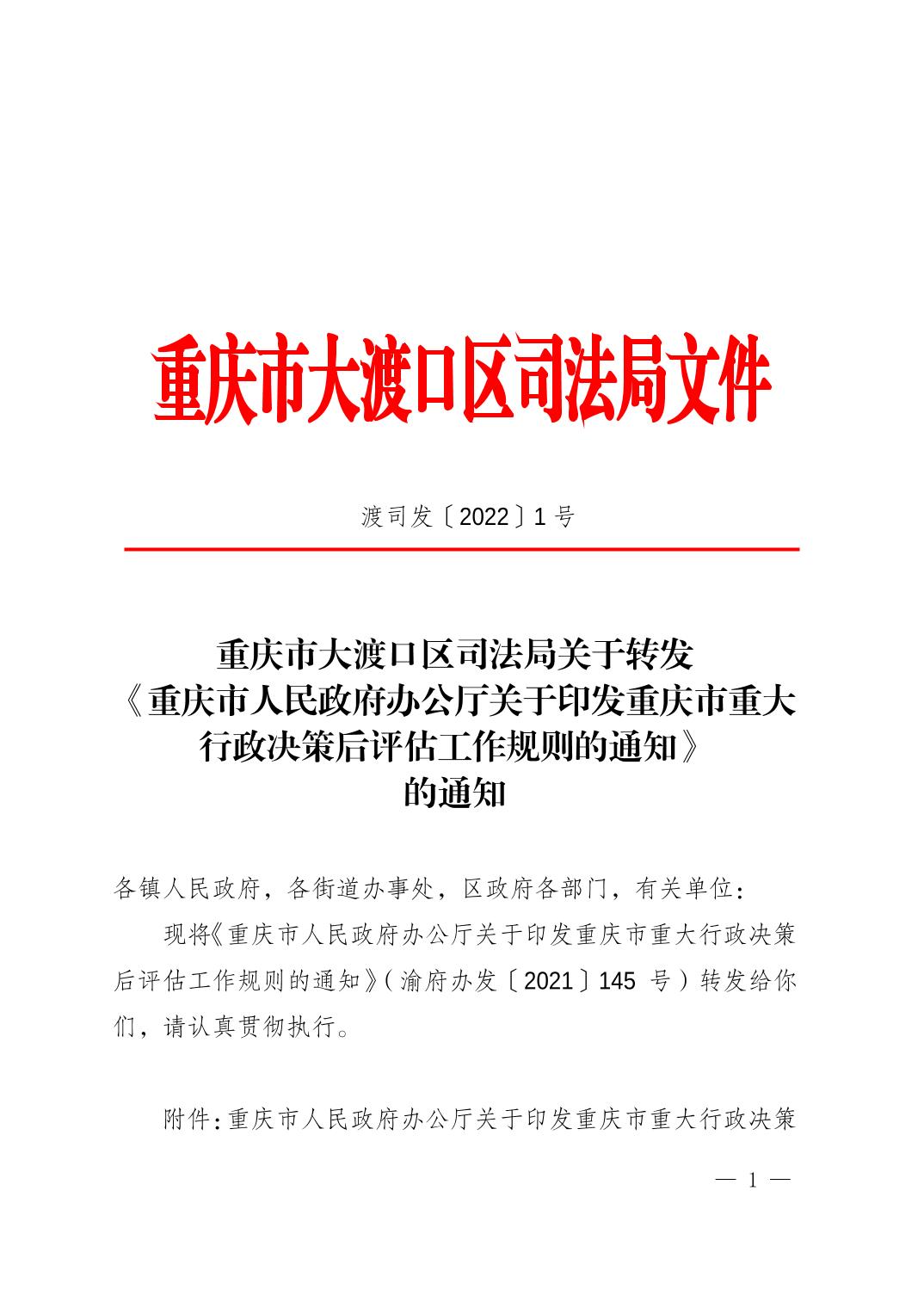 关于转发《重庆市人民政府办公厅关于印发重庆市重大行政决策后评估工作规则的通知》的通知