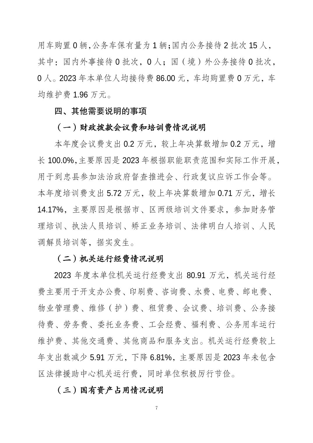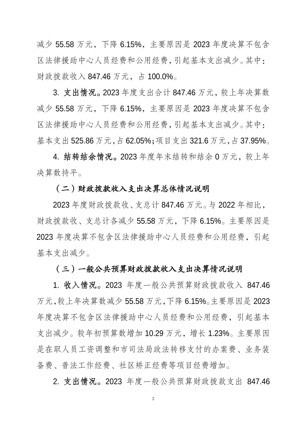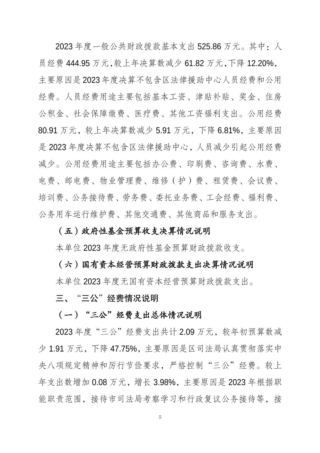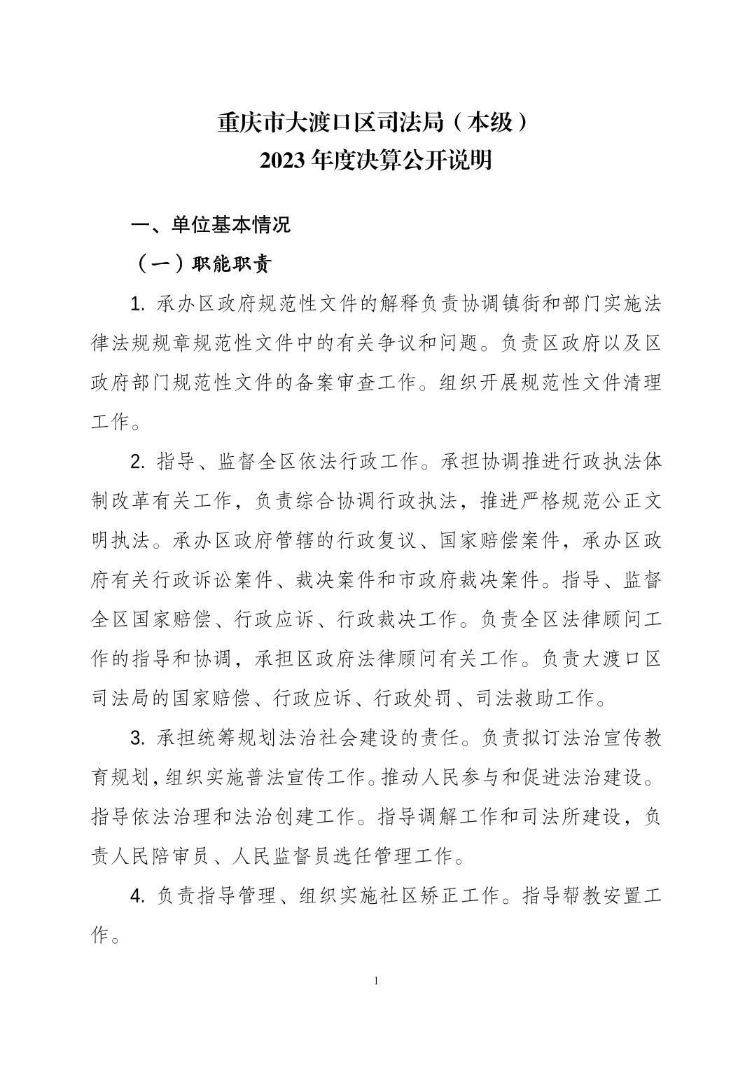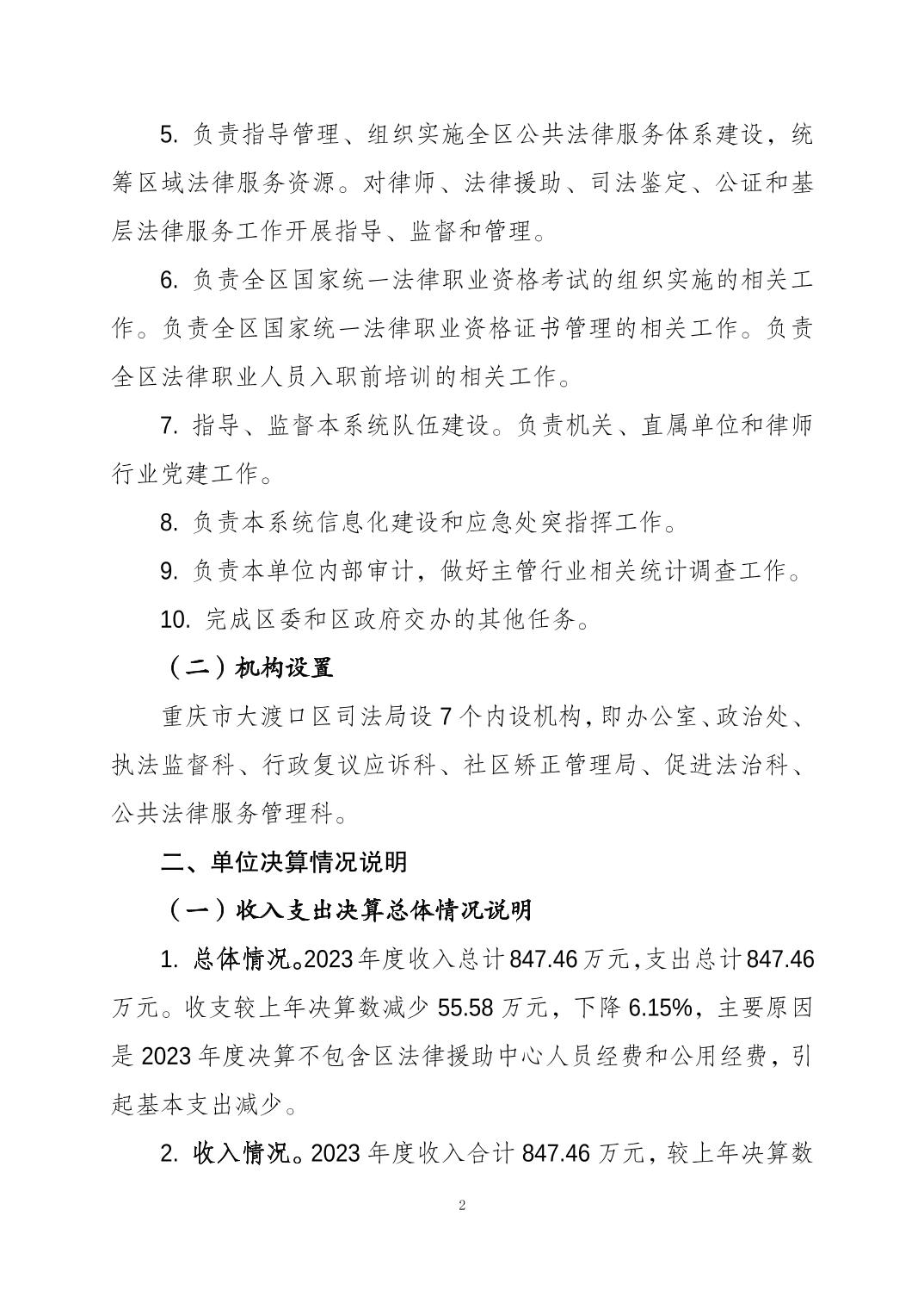 重庆市大渡口区司法局(本级)2023年度决算公开说明