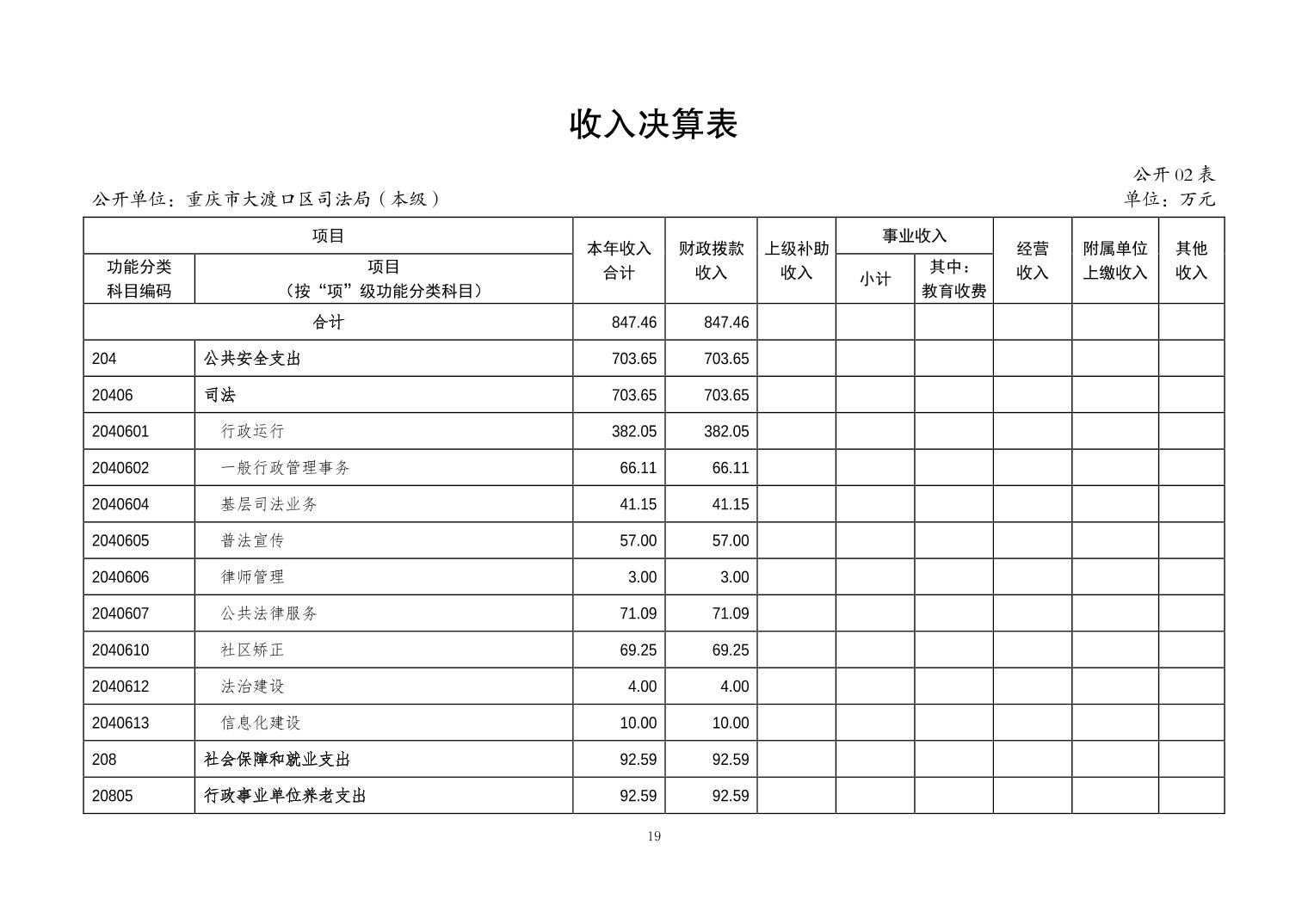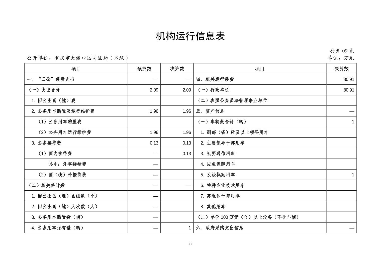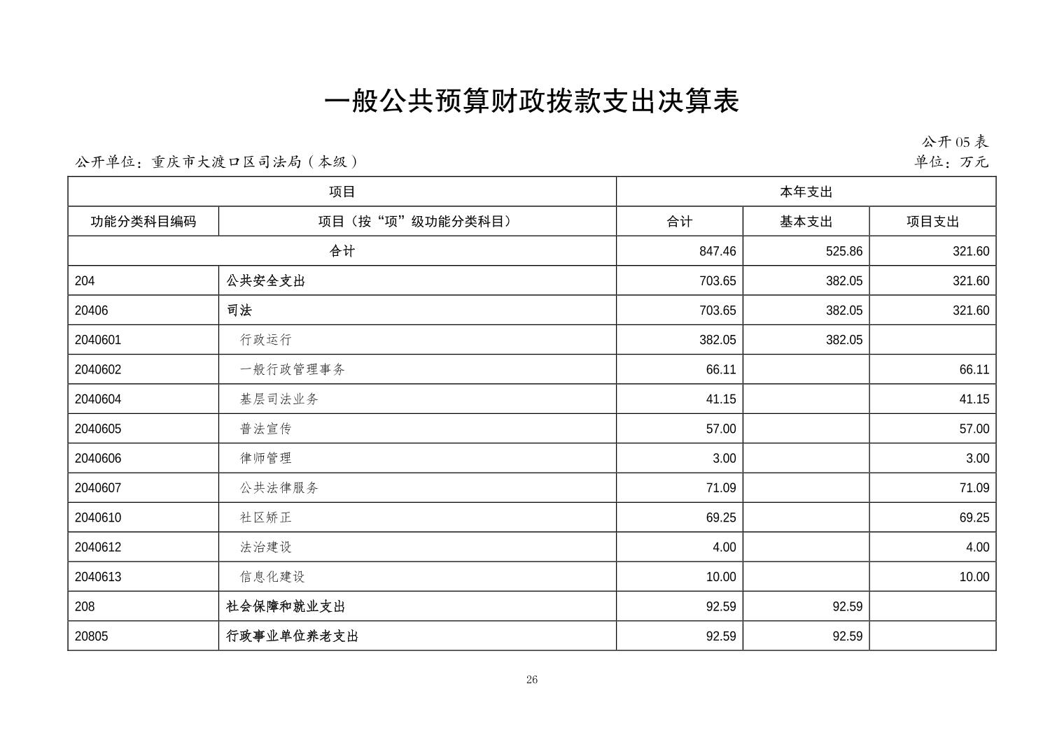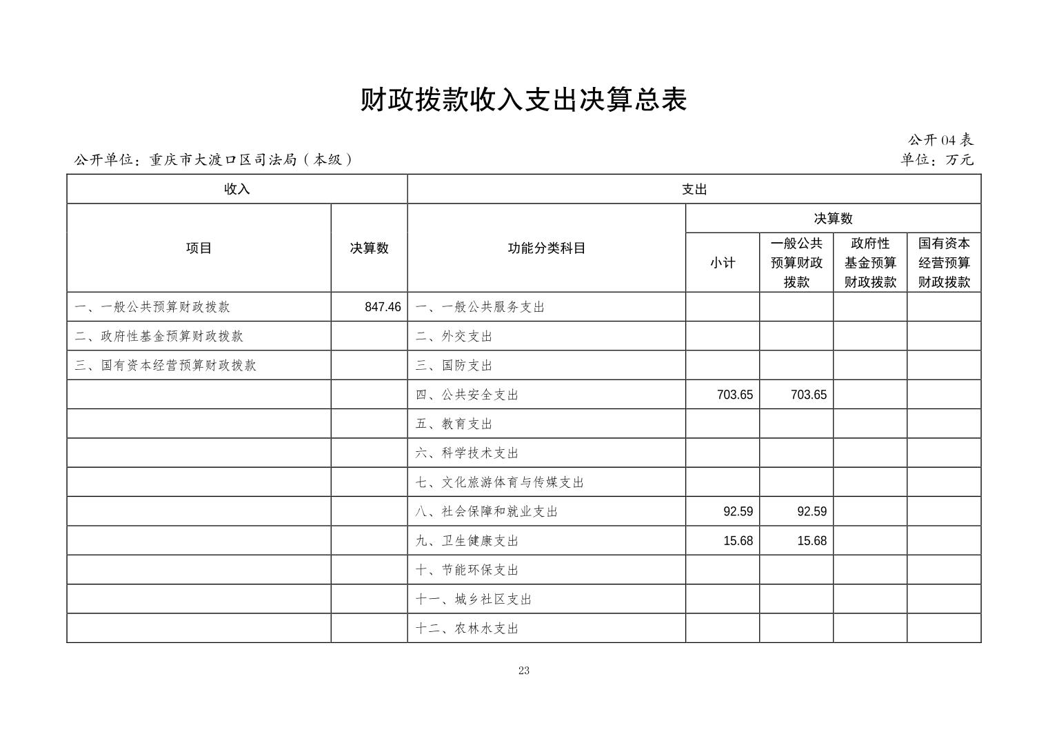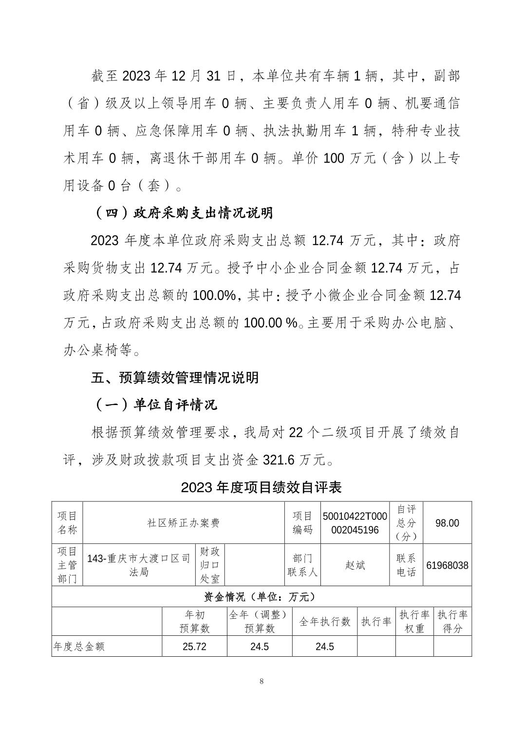 重庆市大渡口区司法局(本级)2023年度决算公开说明