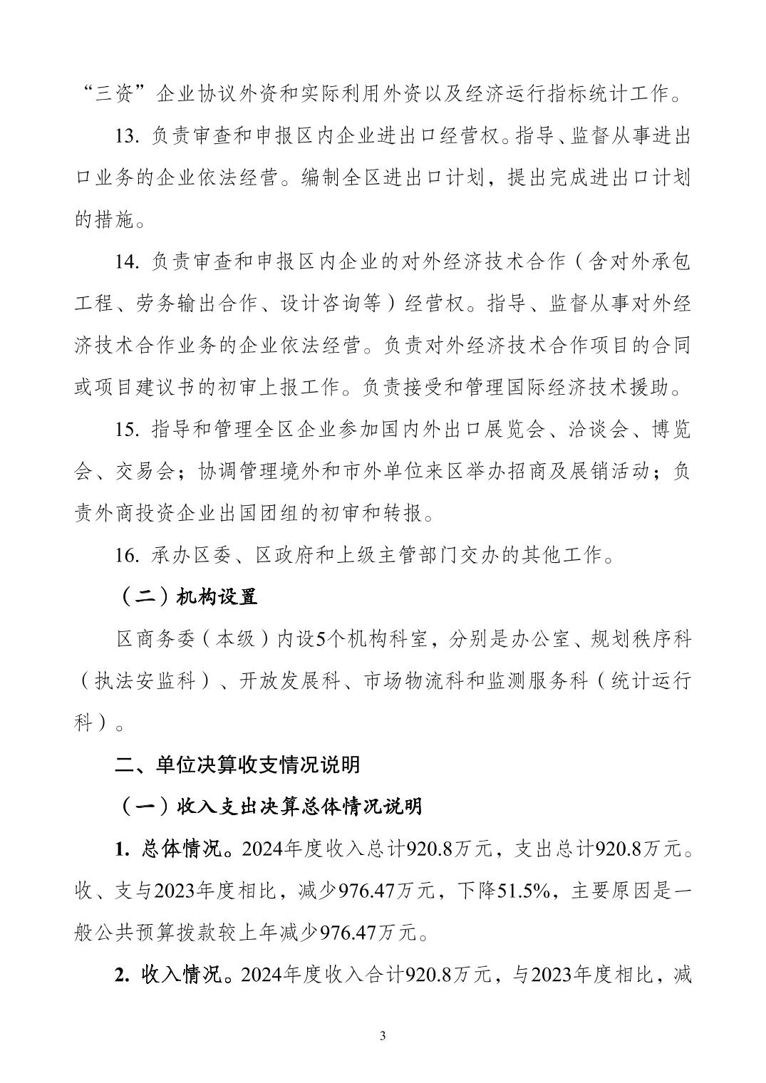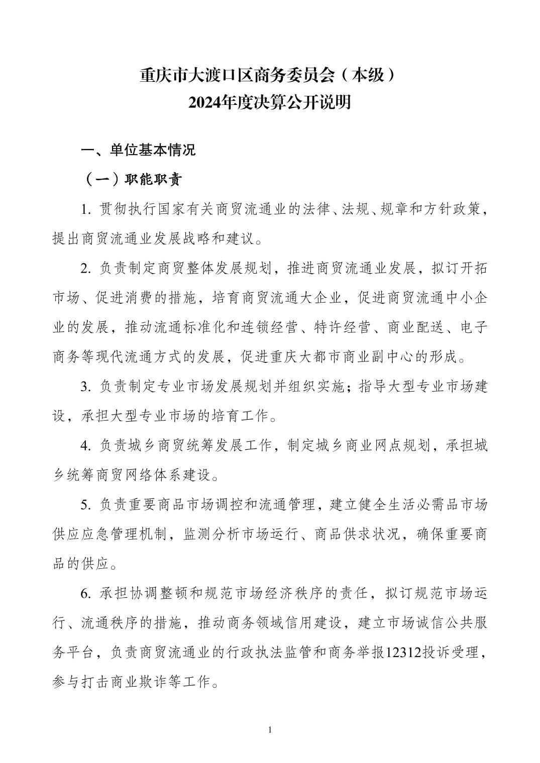 重庆市大渡口区商务委员会(本级)2024年度决算公开说明