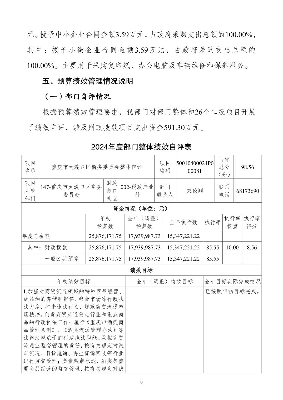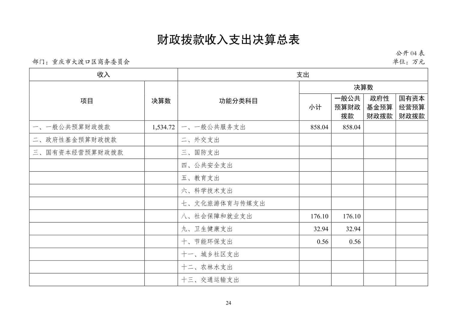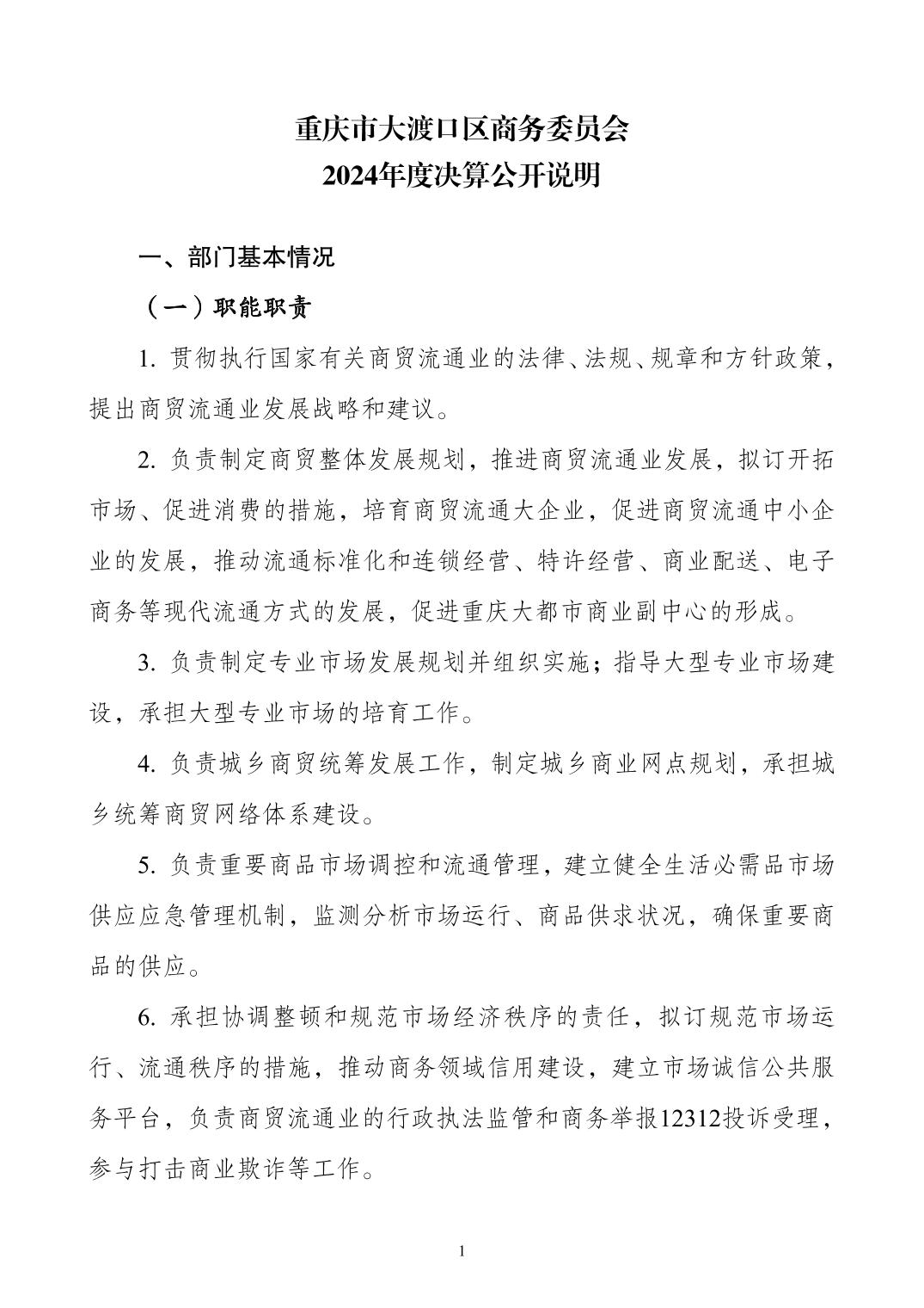 重庆市大渡口区商务委员会2024年度决算公开说明