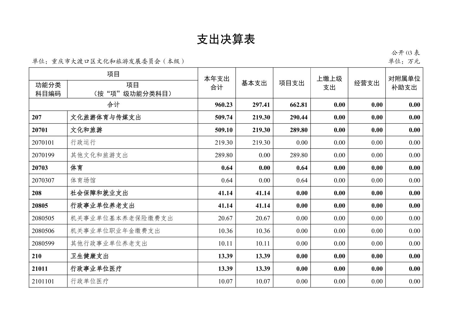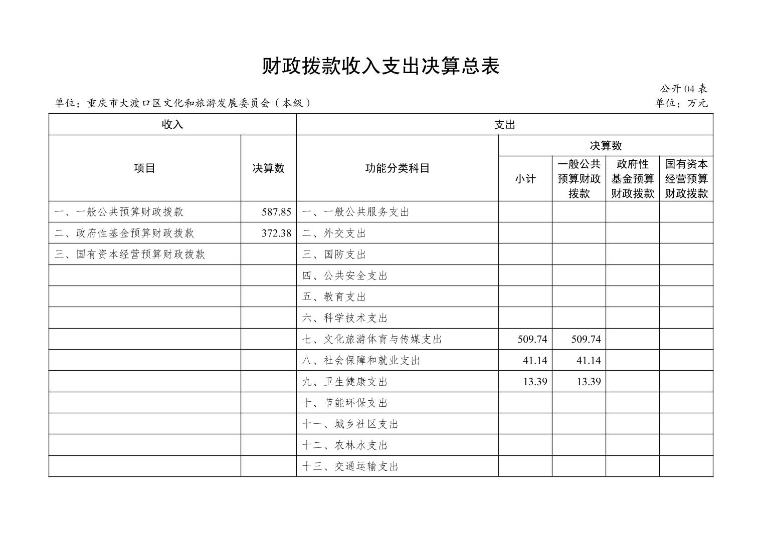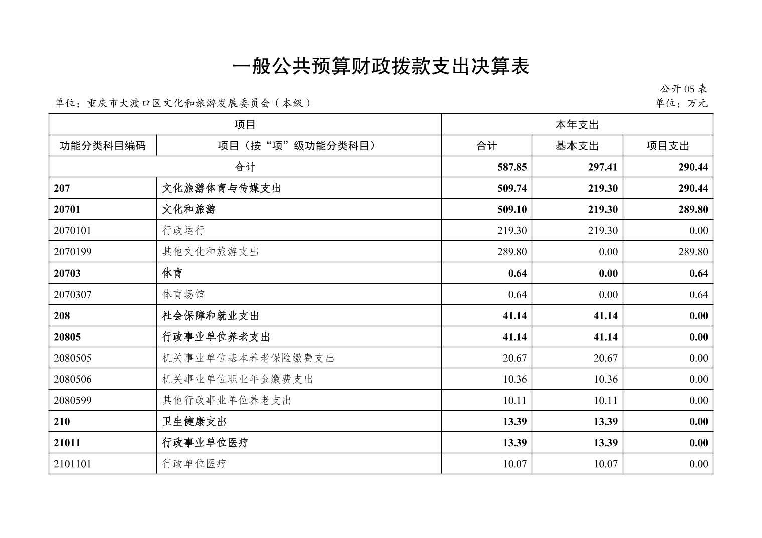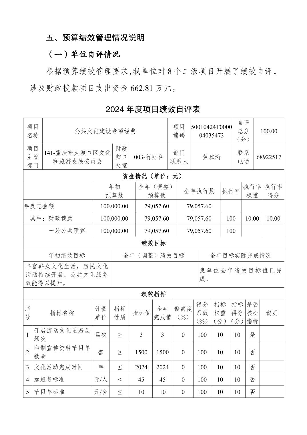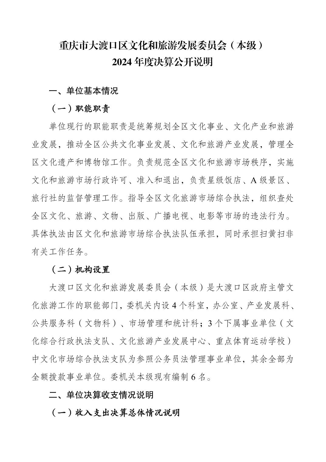 重庆市大渡口区文化和旅游发展委员会(本级)2024 年度决算公开说明