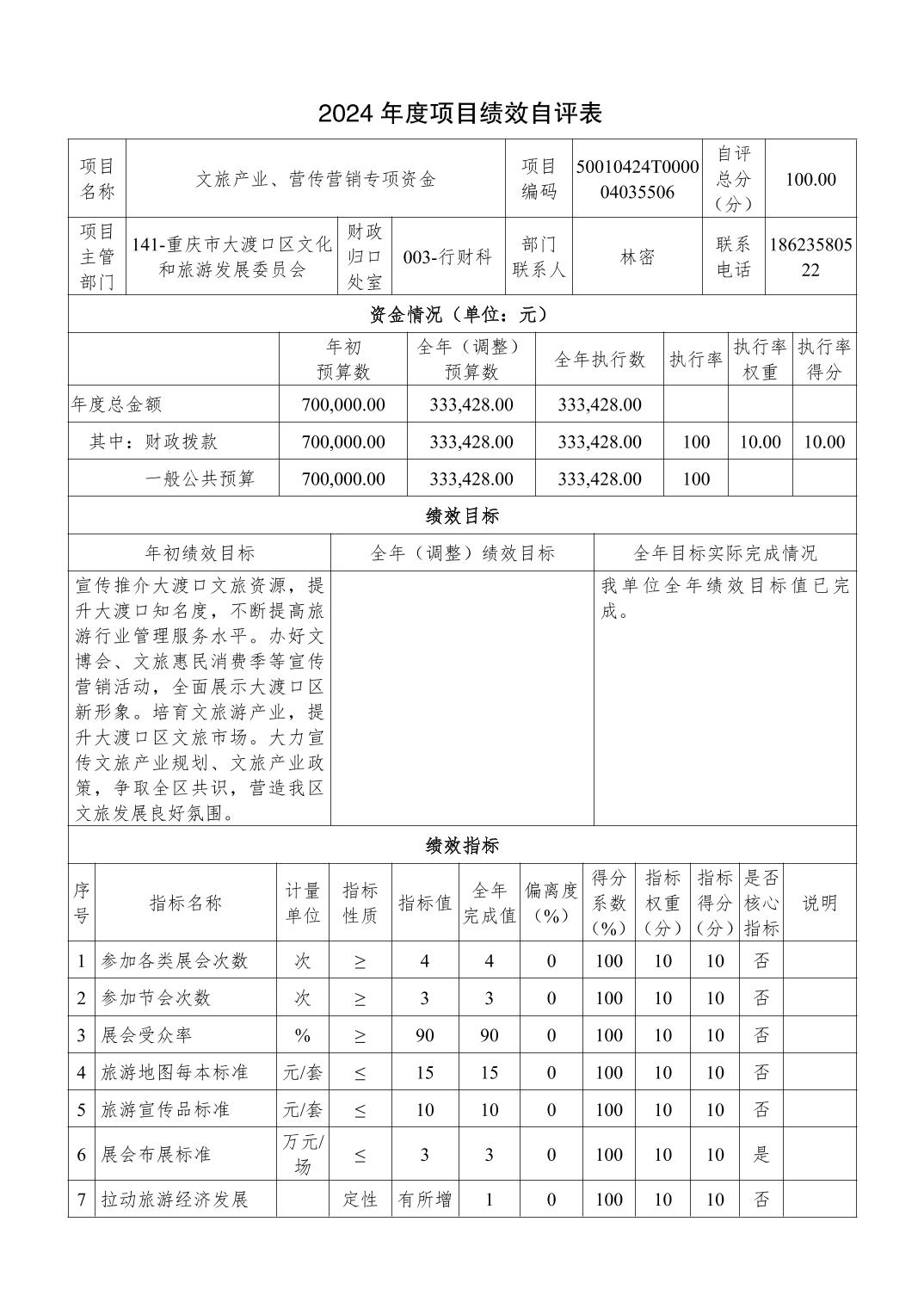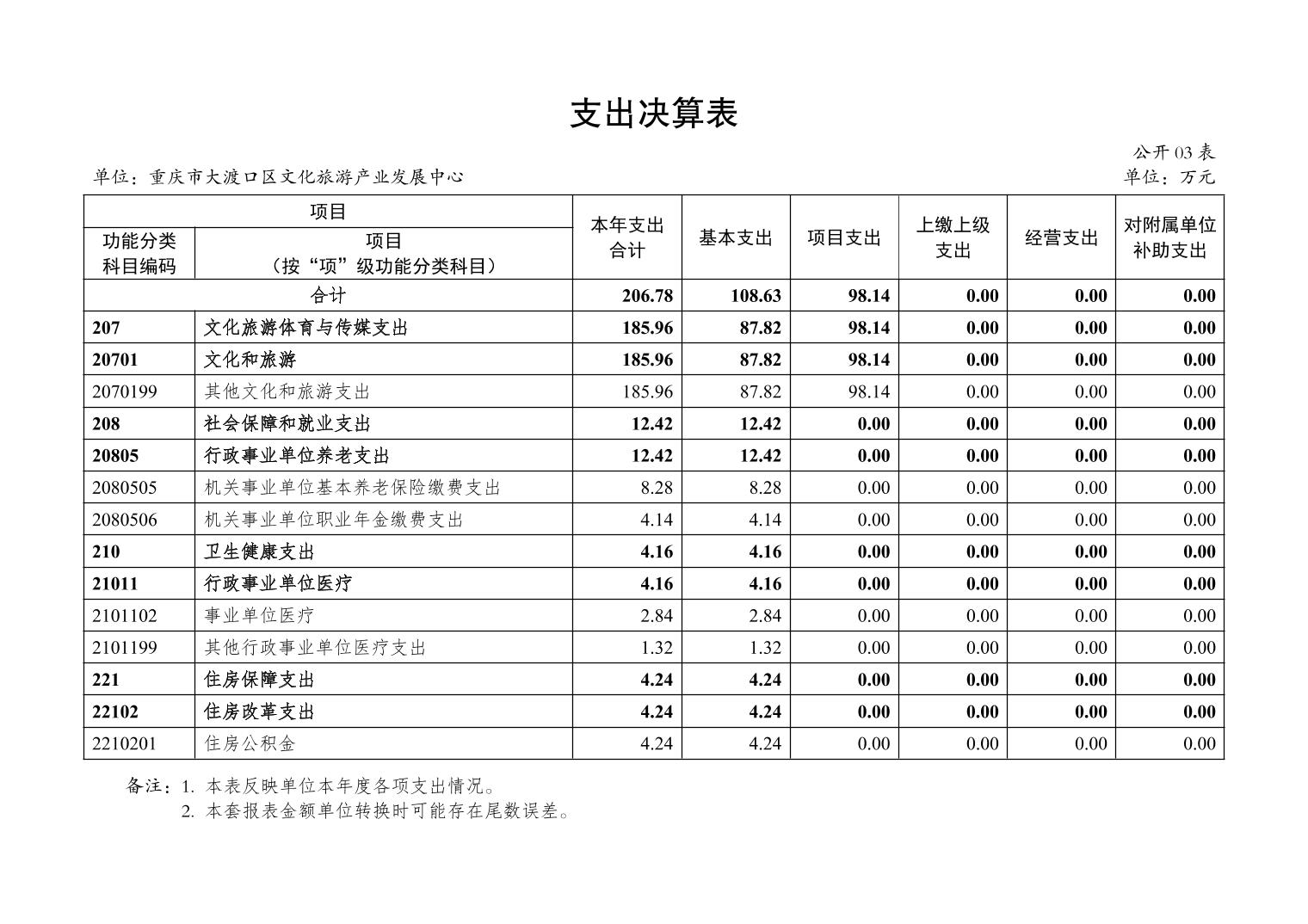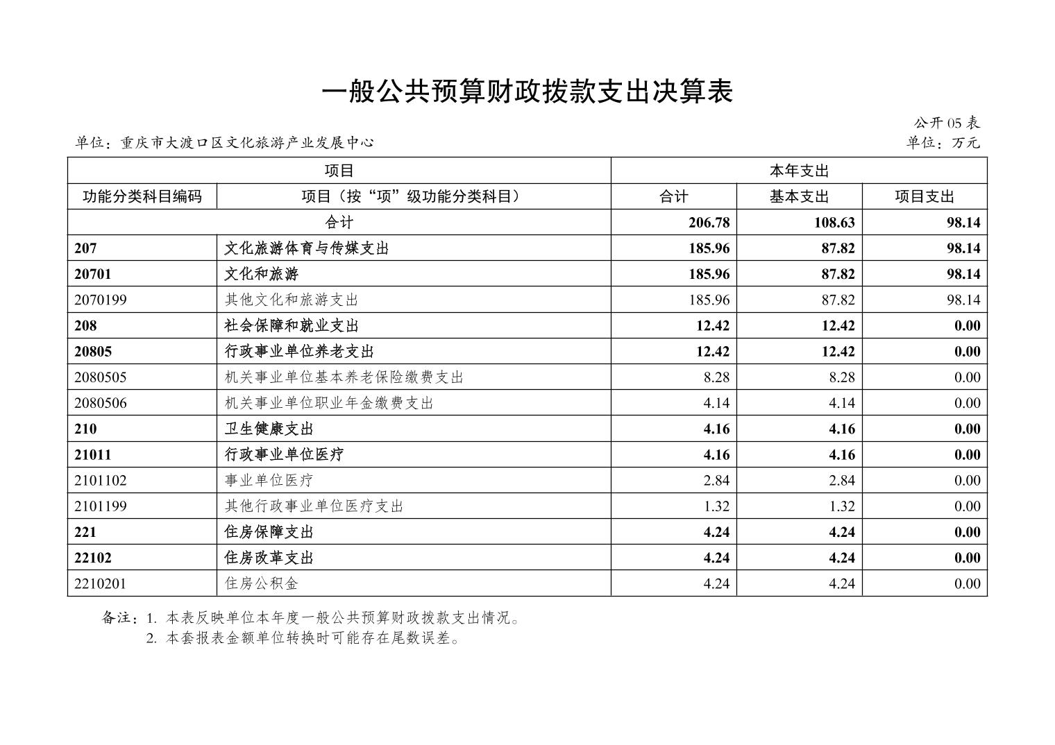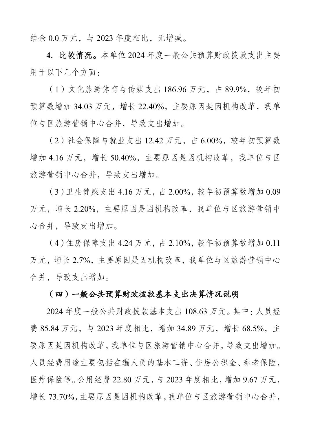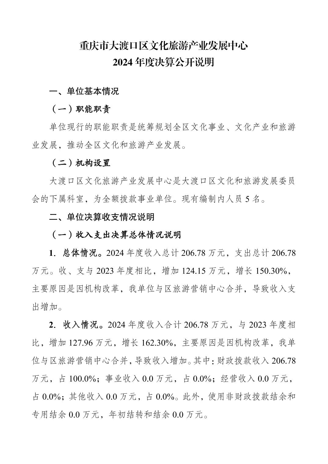 重庆市大渡口区文化旅游产业发展中心2024 年度决算公开说明