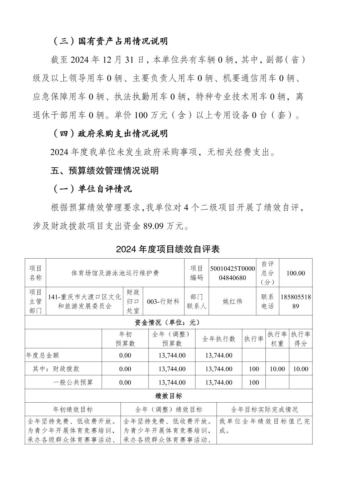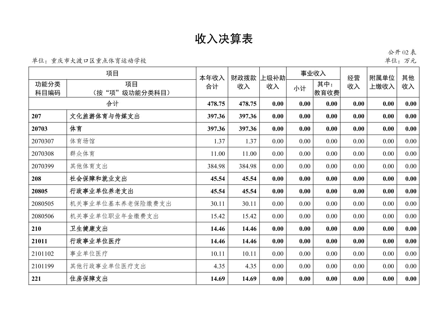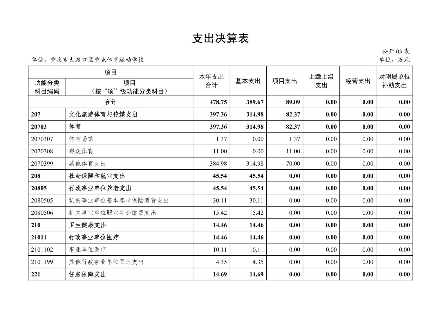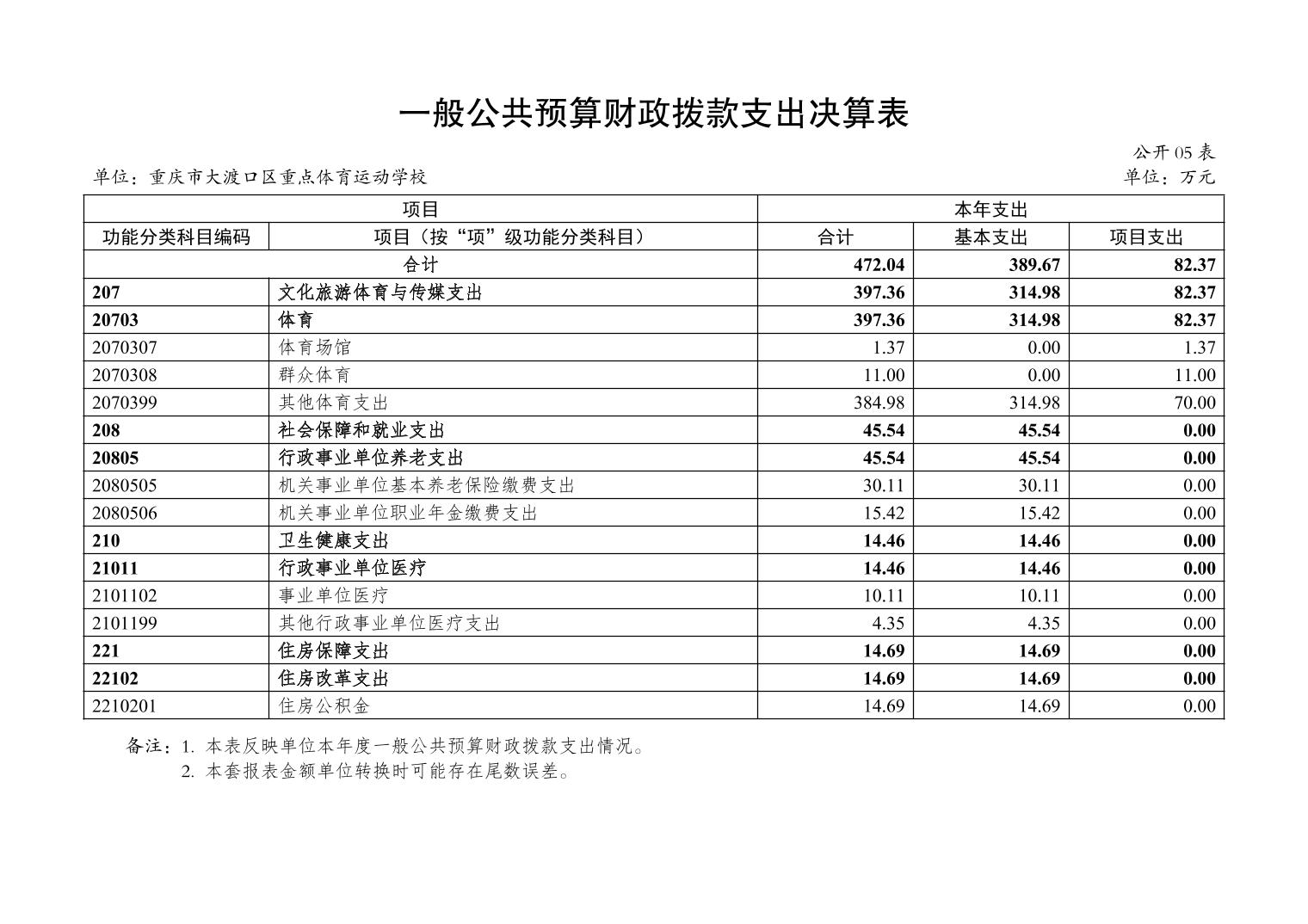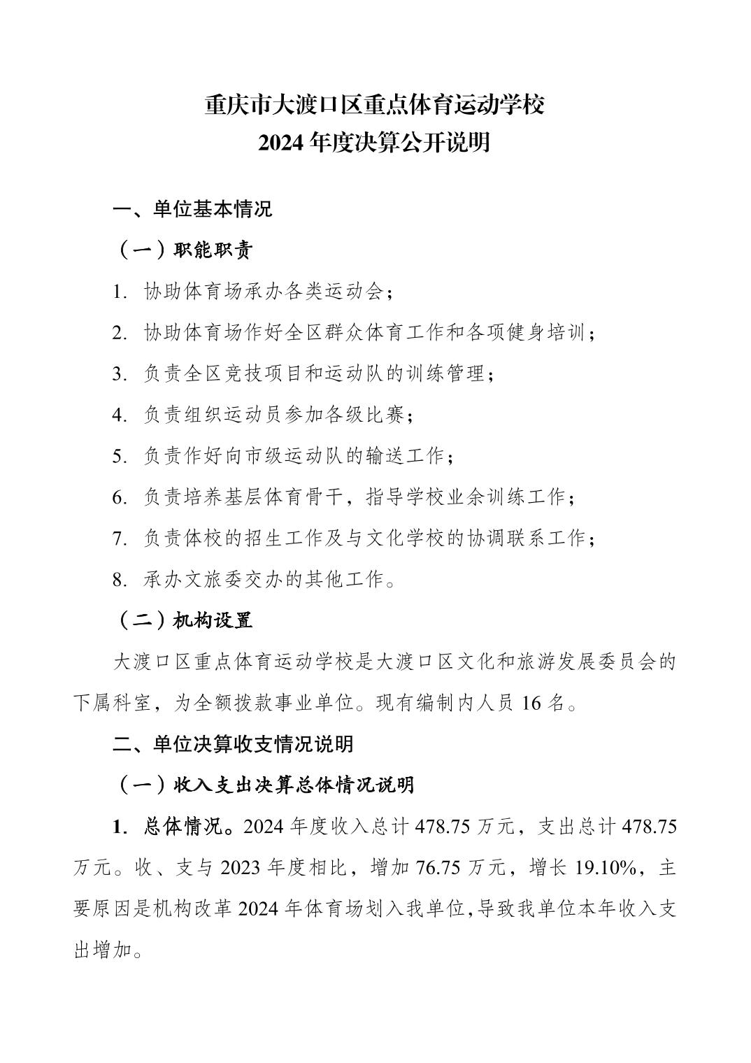 重庆市大渡口区重点体育运动学校2024年度决算公开说明