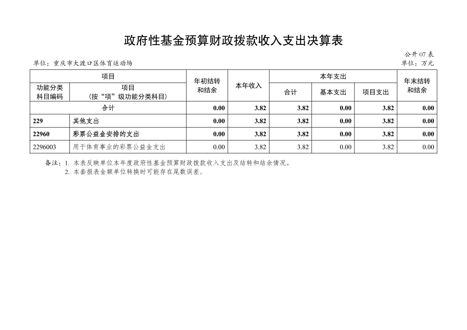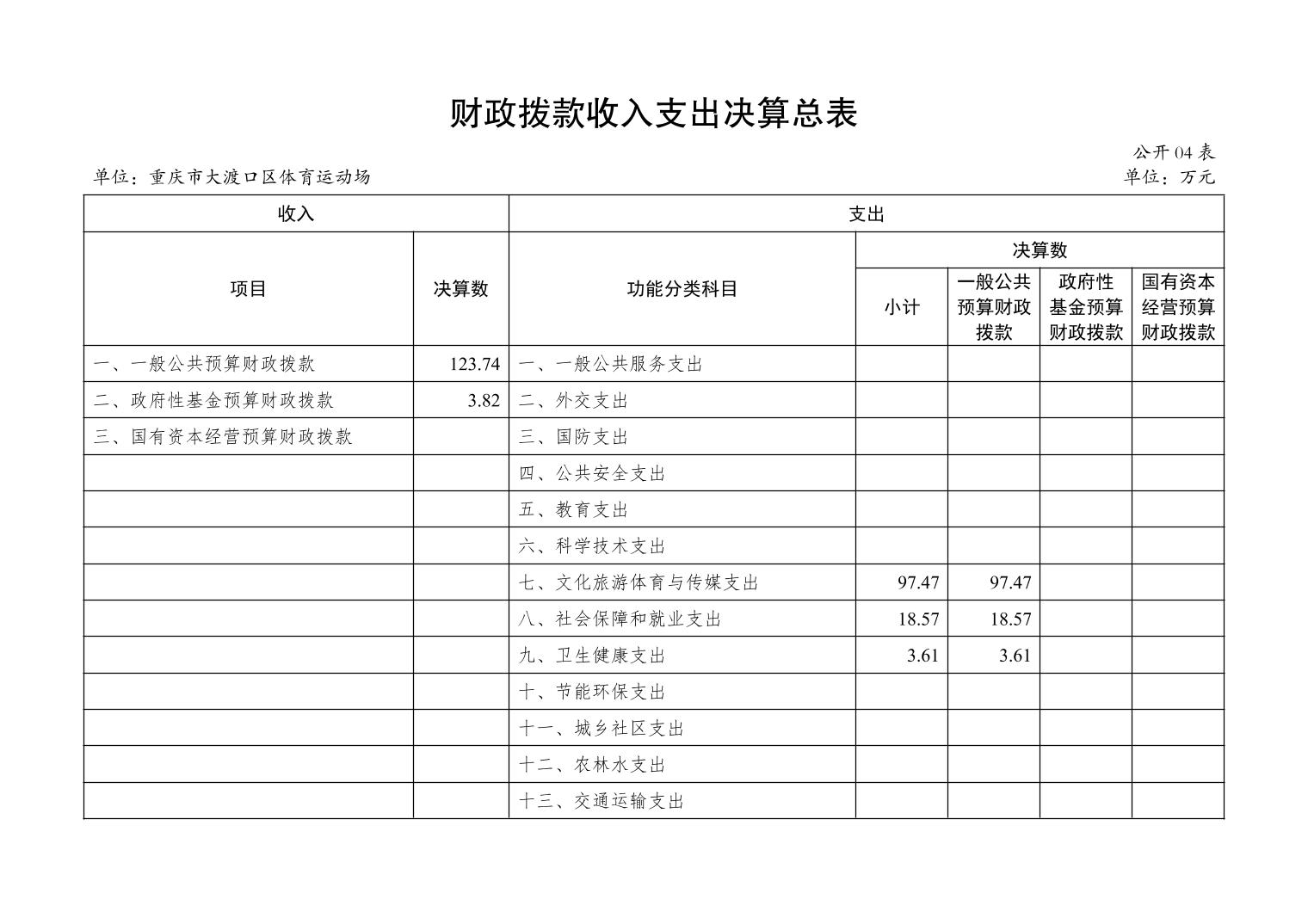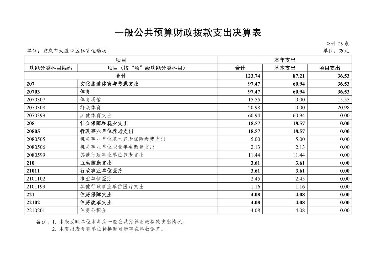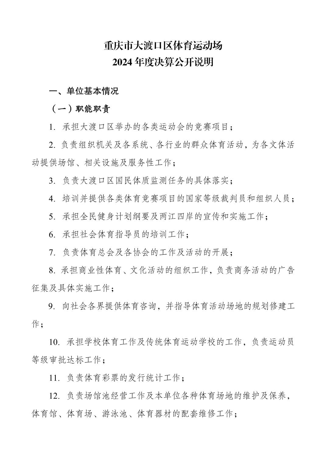 重庆市大渡口区体育运动场2024年度决算公开说明