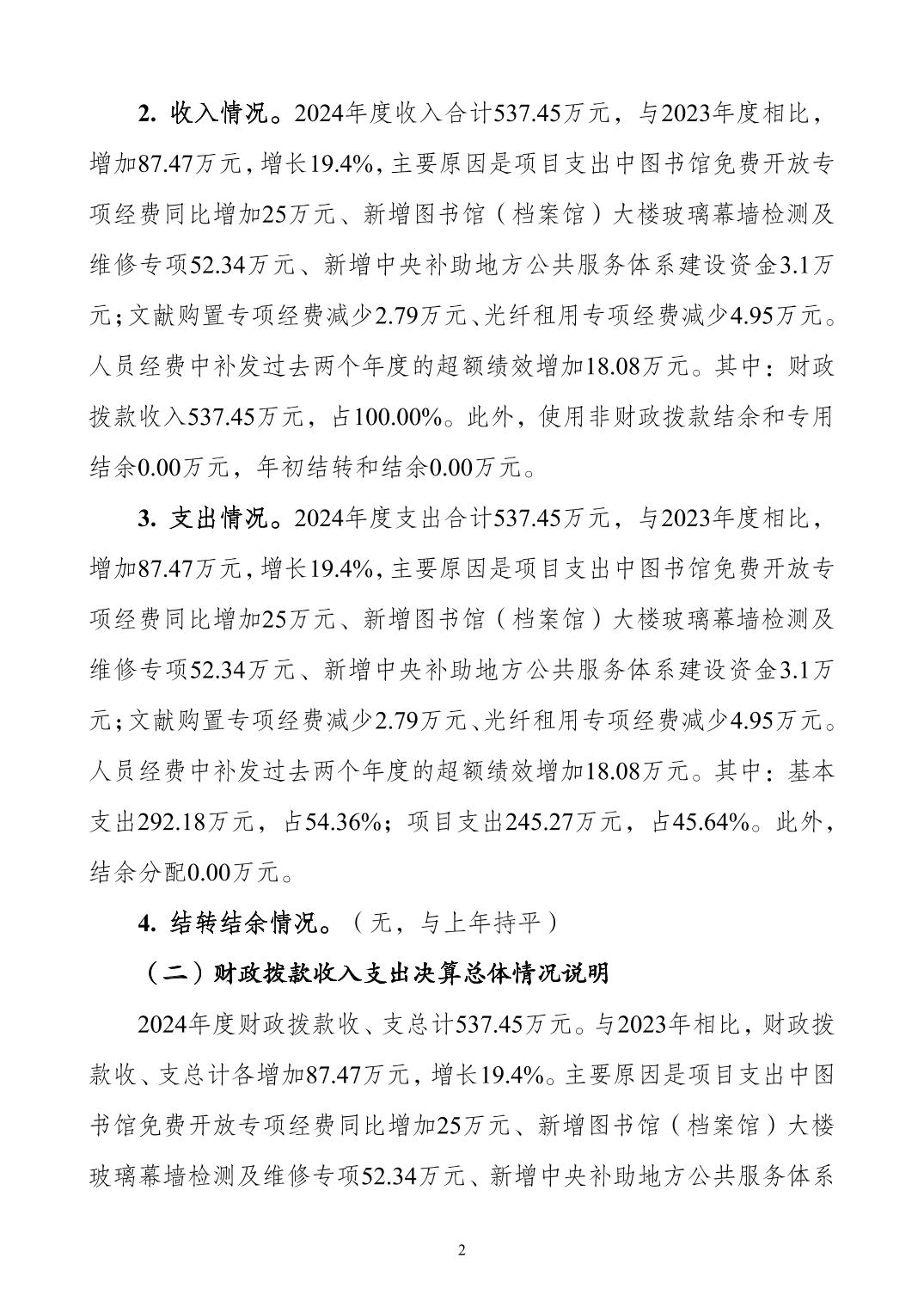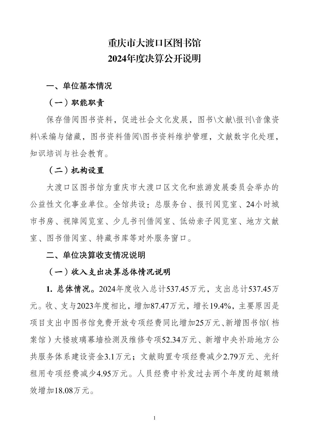重庆市大渡口区图书馆2024年度决算公开说明