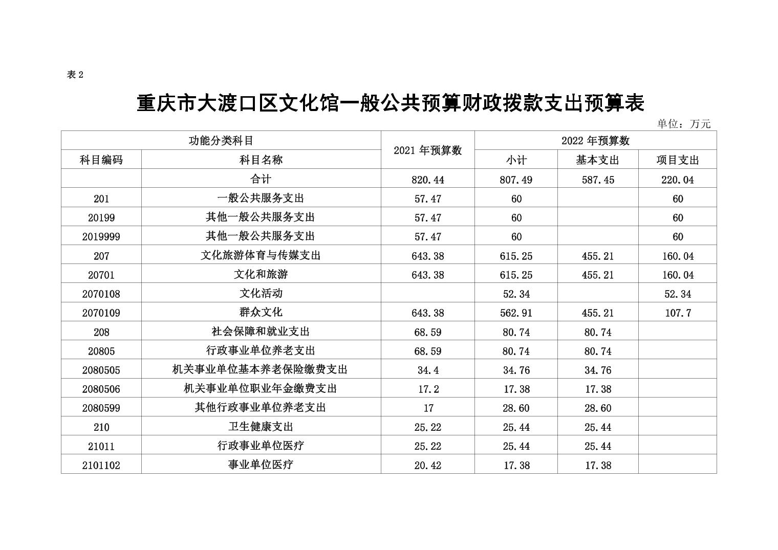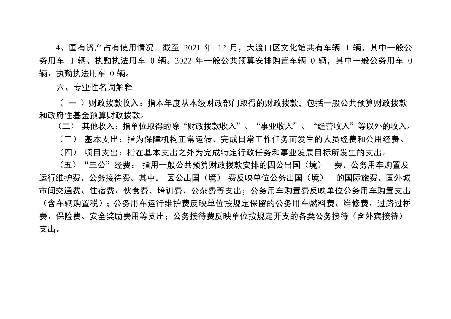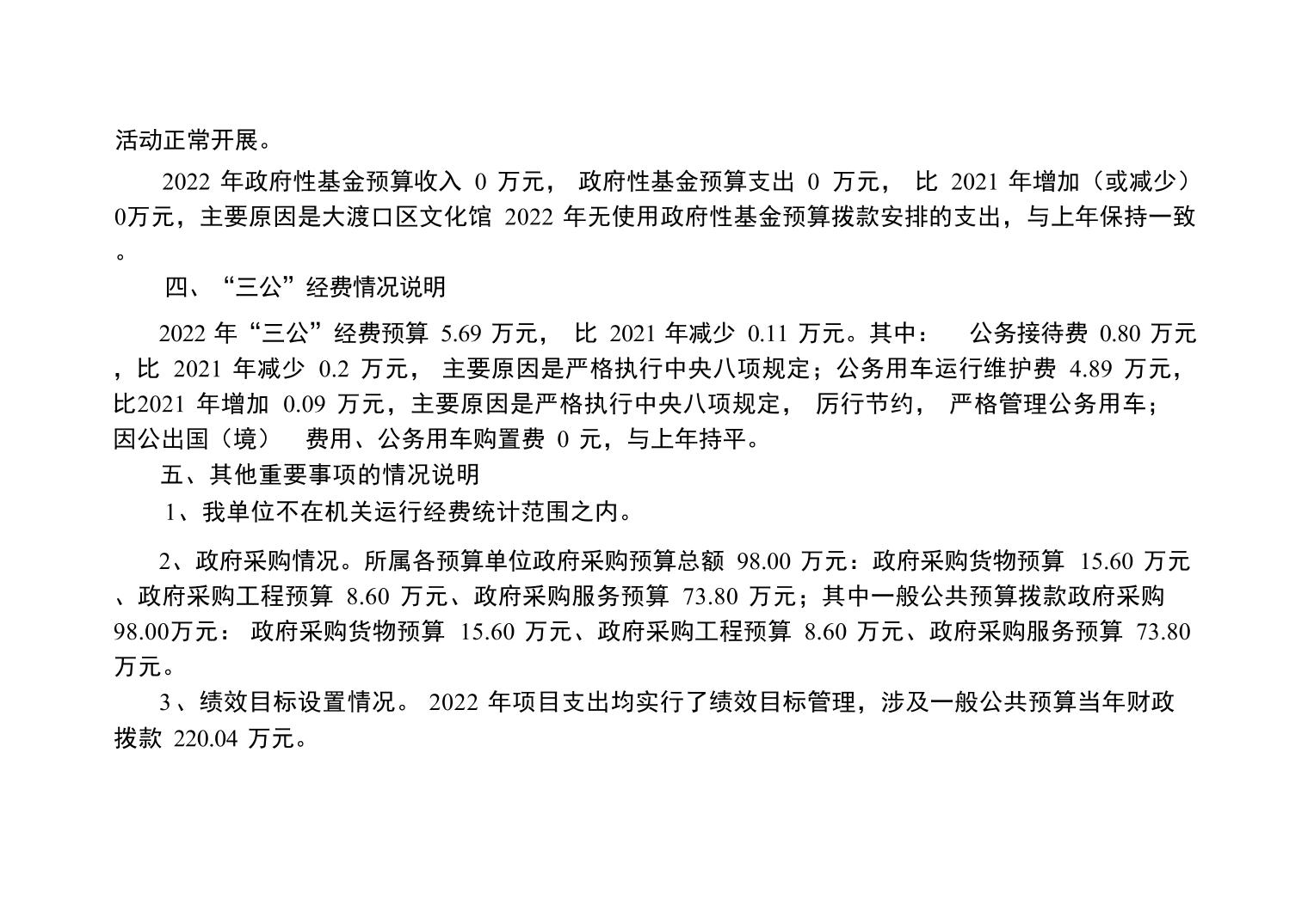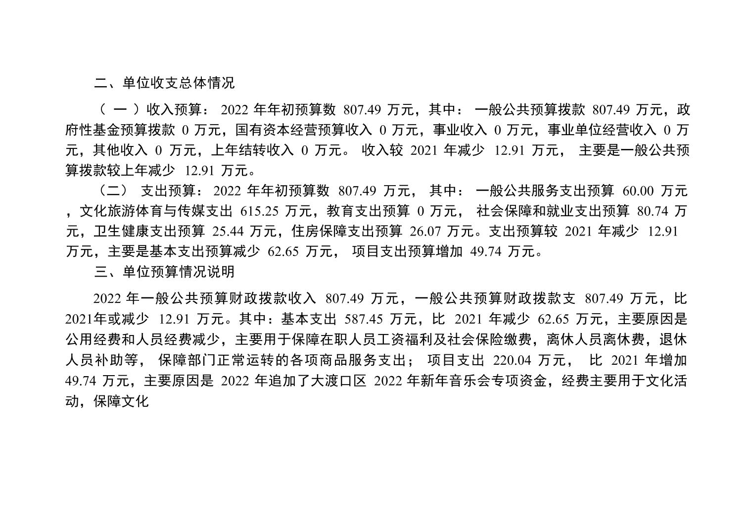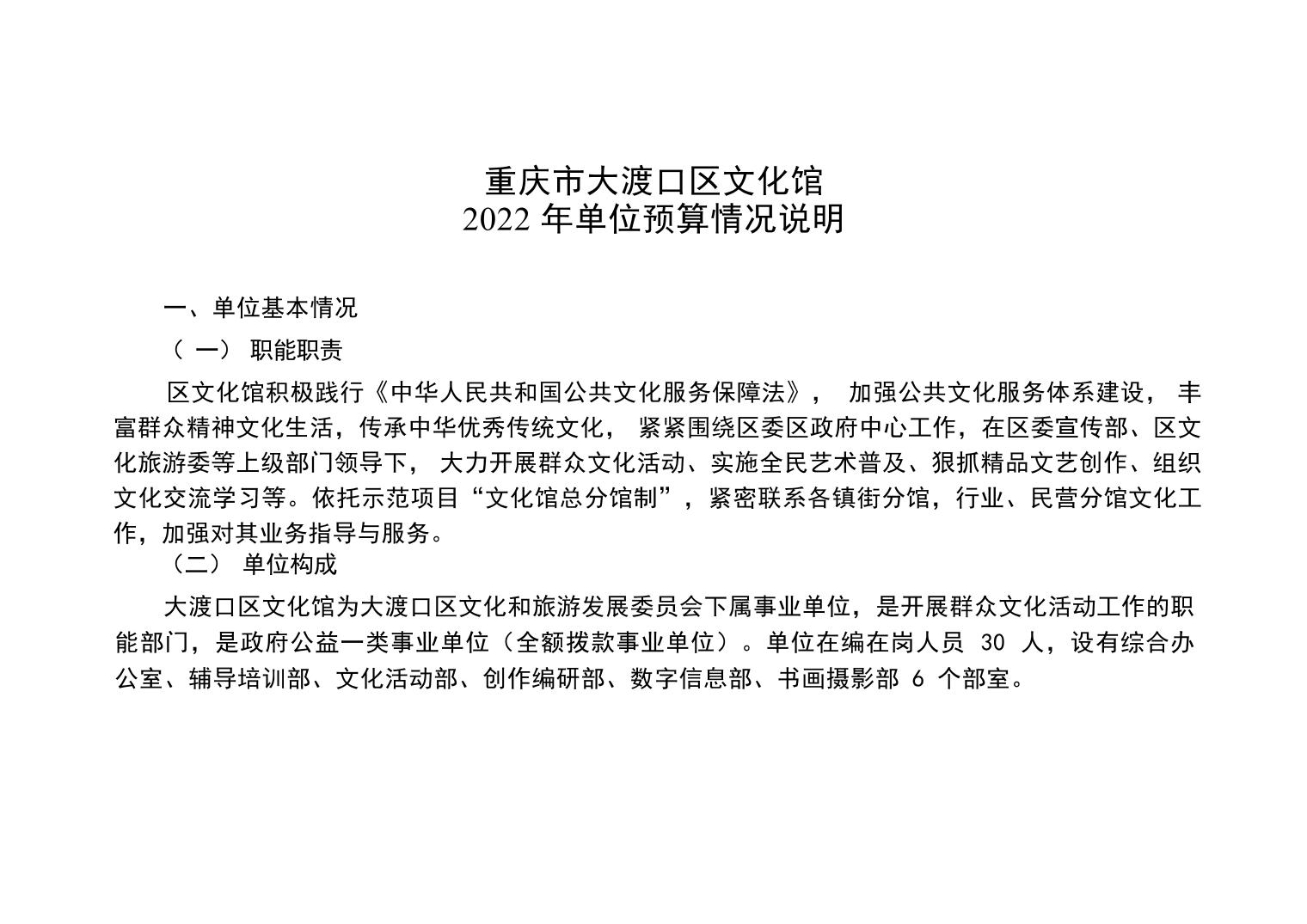 重庆市大渡口区文化馆2022年单位预算情况说明