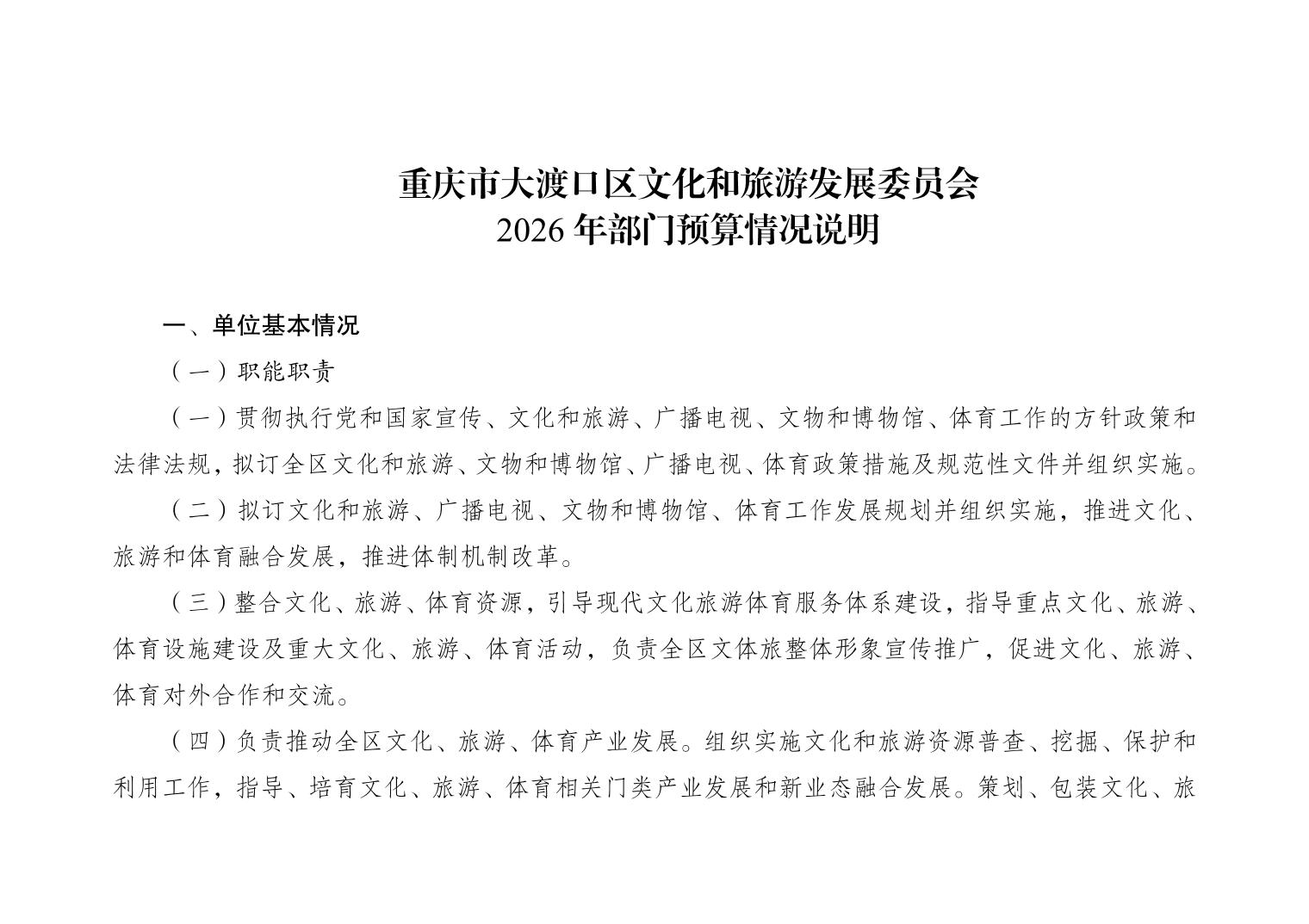 重庆市大渡口区文化和旅游发展委员会2026年部门预算情况说明