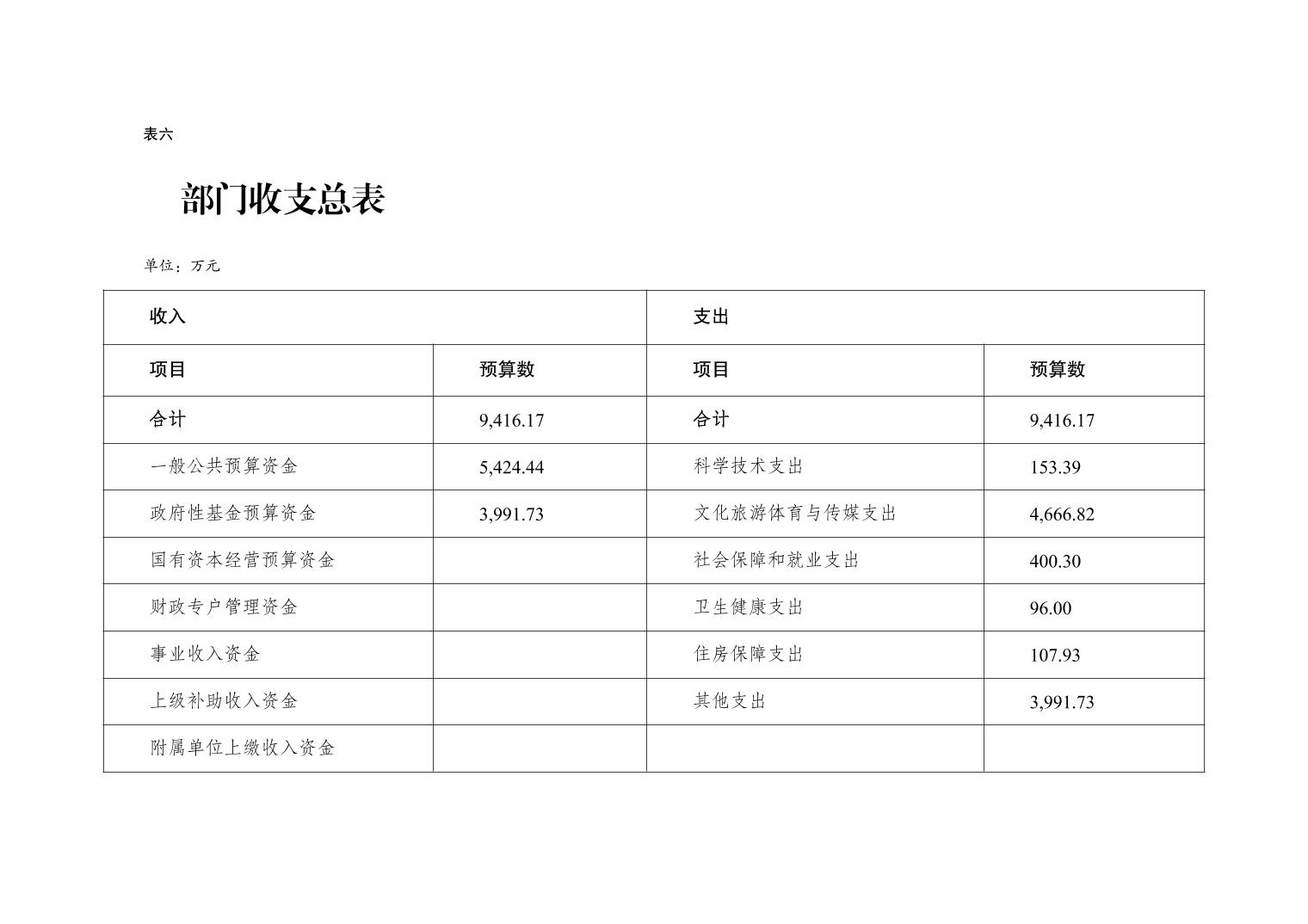 | [ 主题分类 ] | 文化、体育、广电、出版 | [ 体裁分类 ] | 财政预算、决算 |